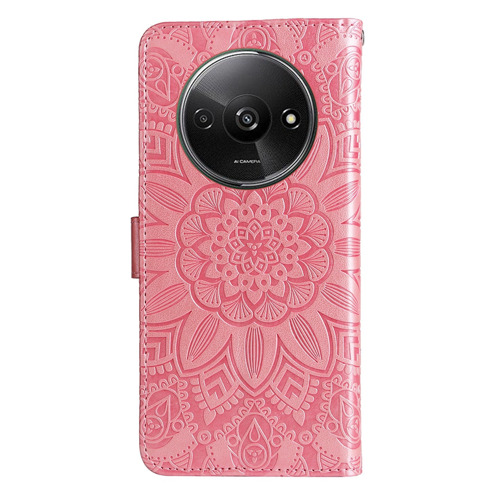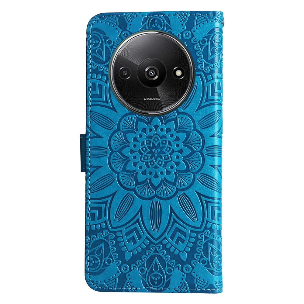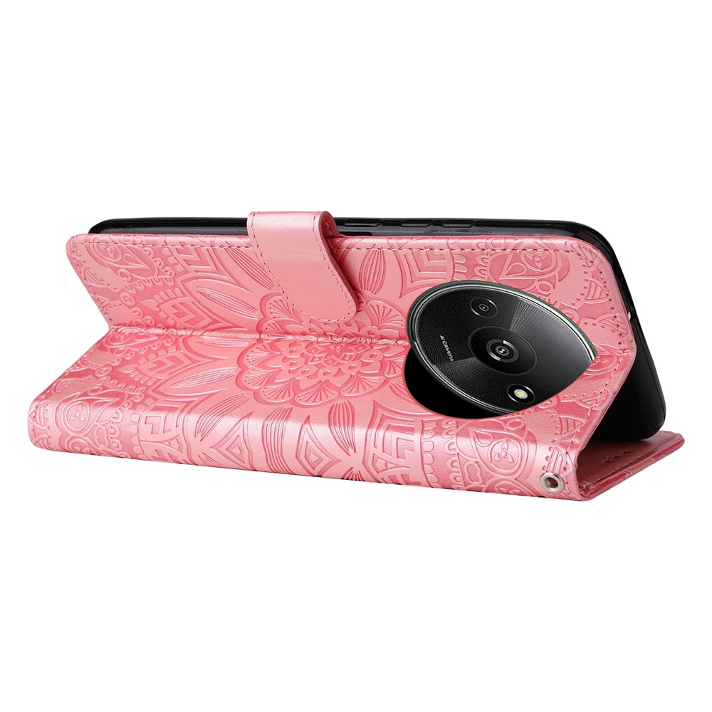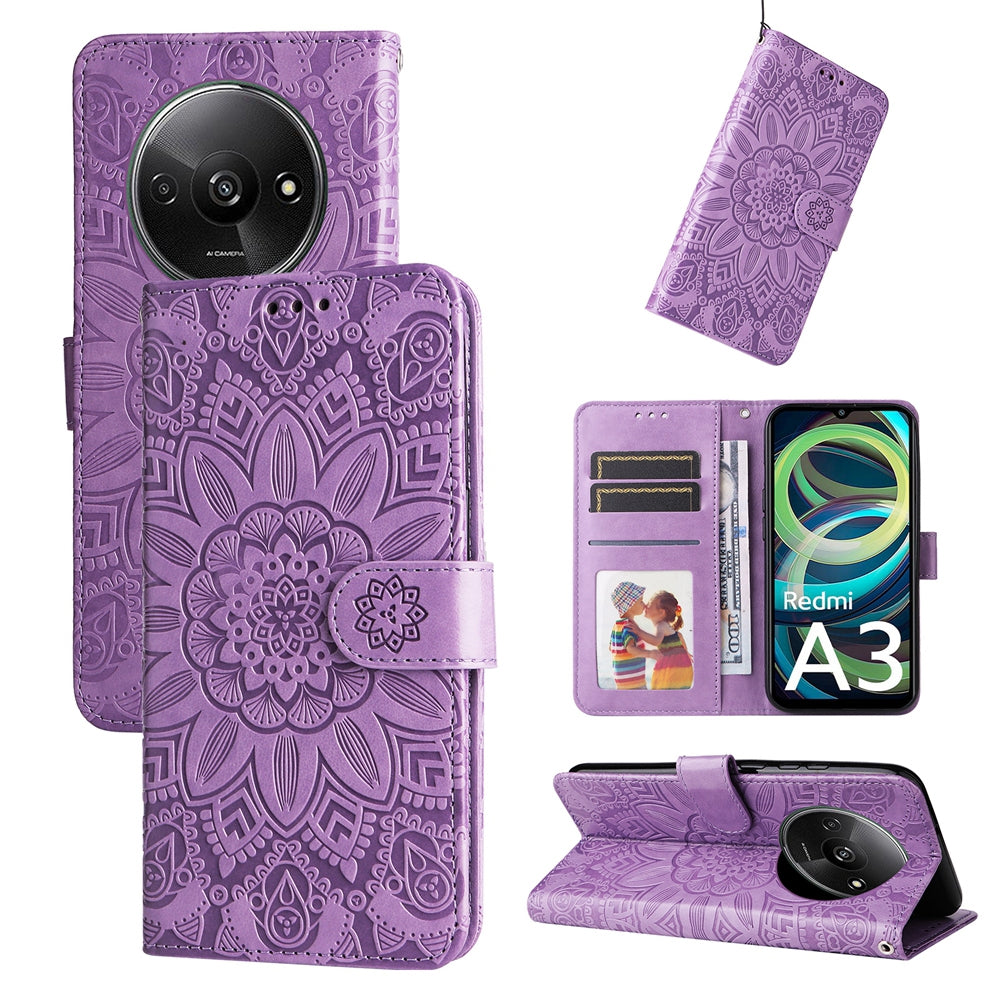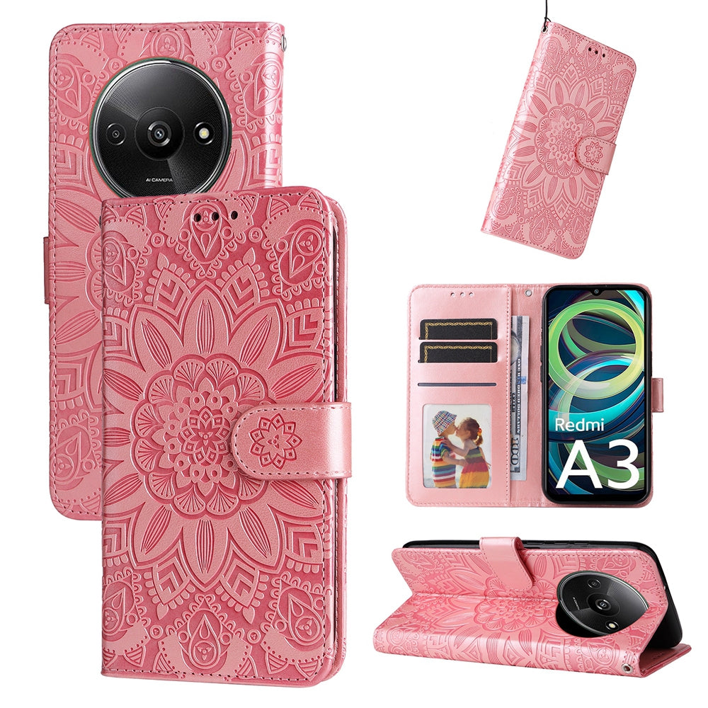 Xiaomi Redmi A3 Sunflower Embossed Leather Wallet Phone Case with Kickstand and Card Holder