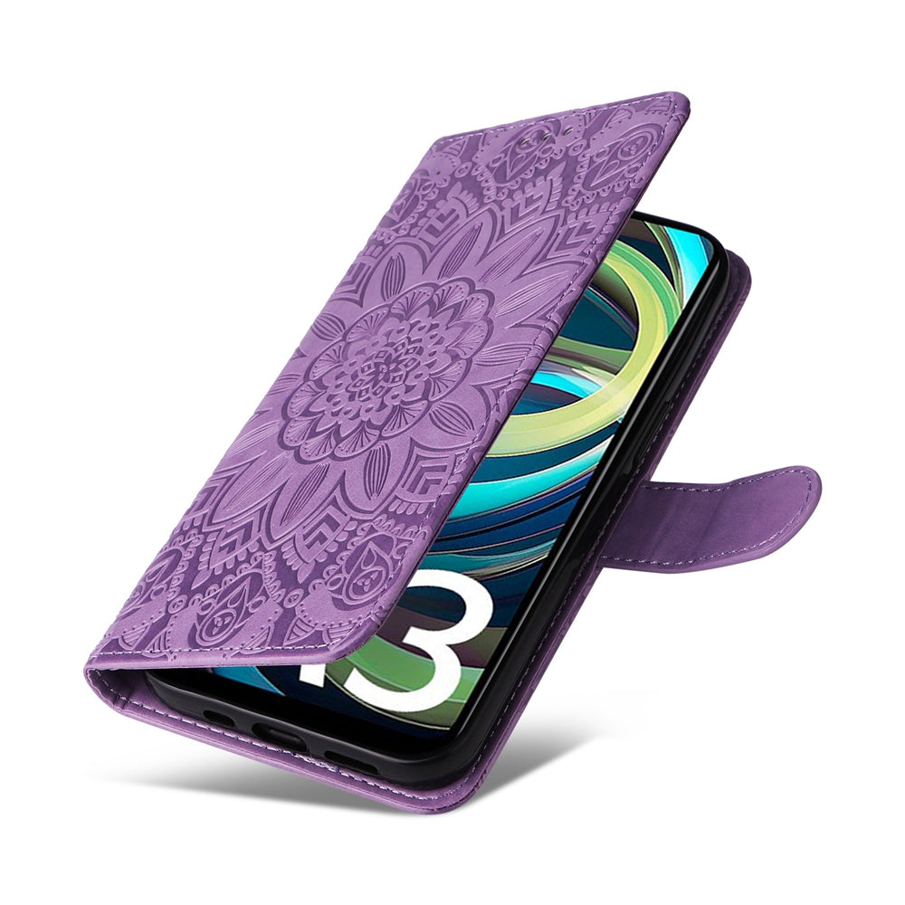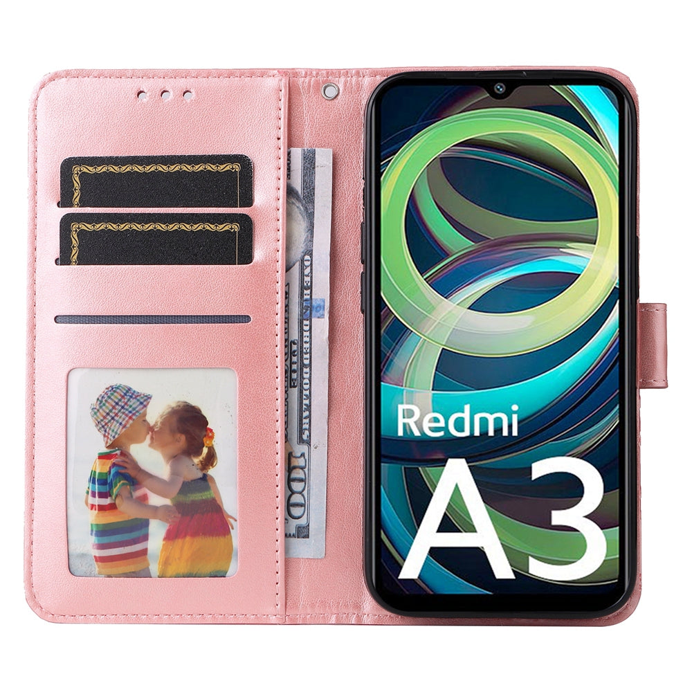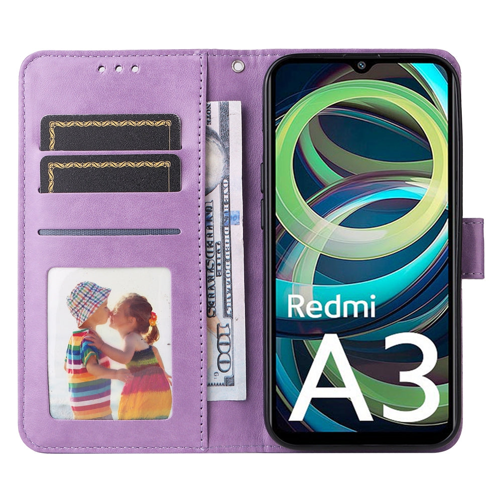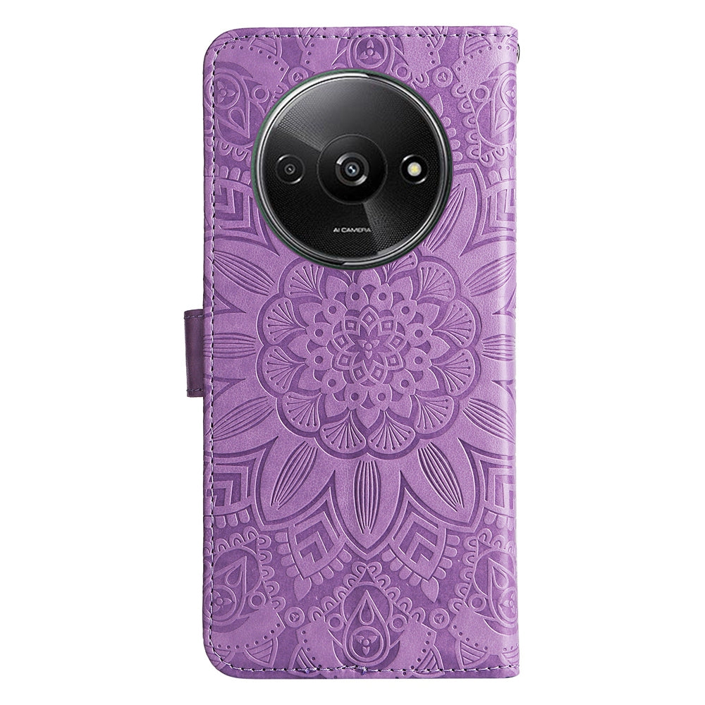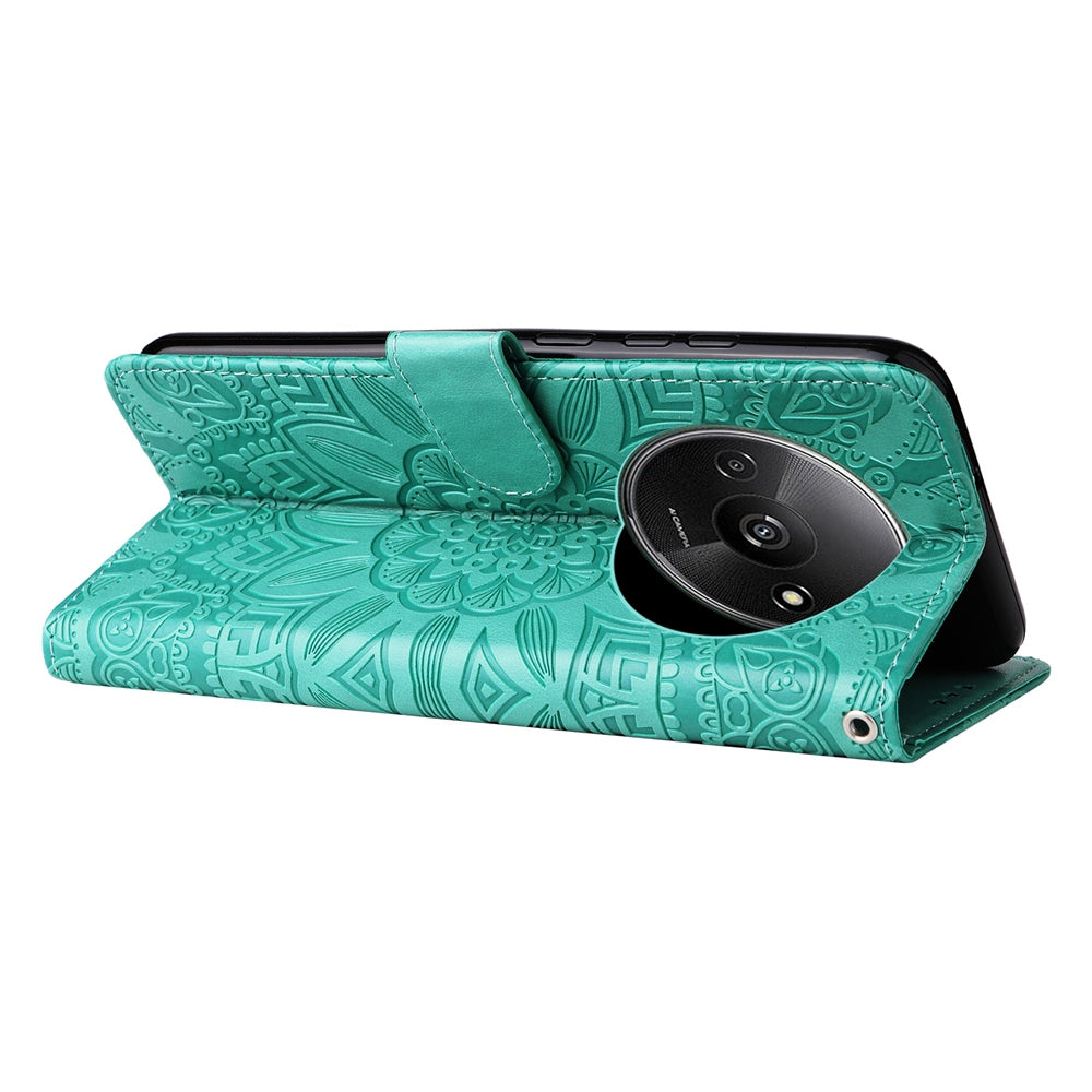 Xiaomi Redmi A3 Sunflower Embossed Leather Wallet Phone Case with Kickstand and Card Holder