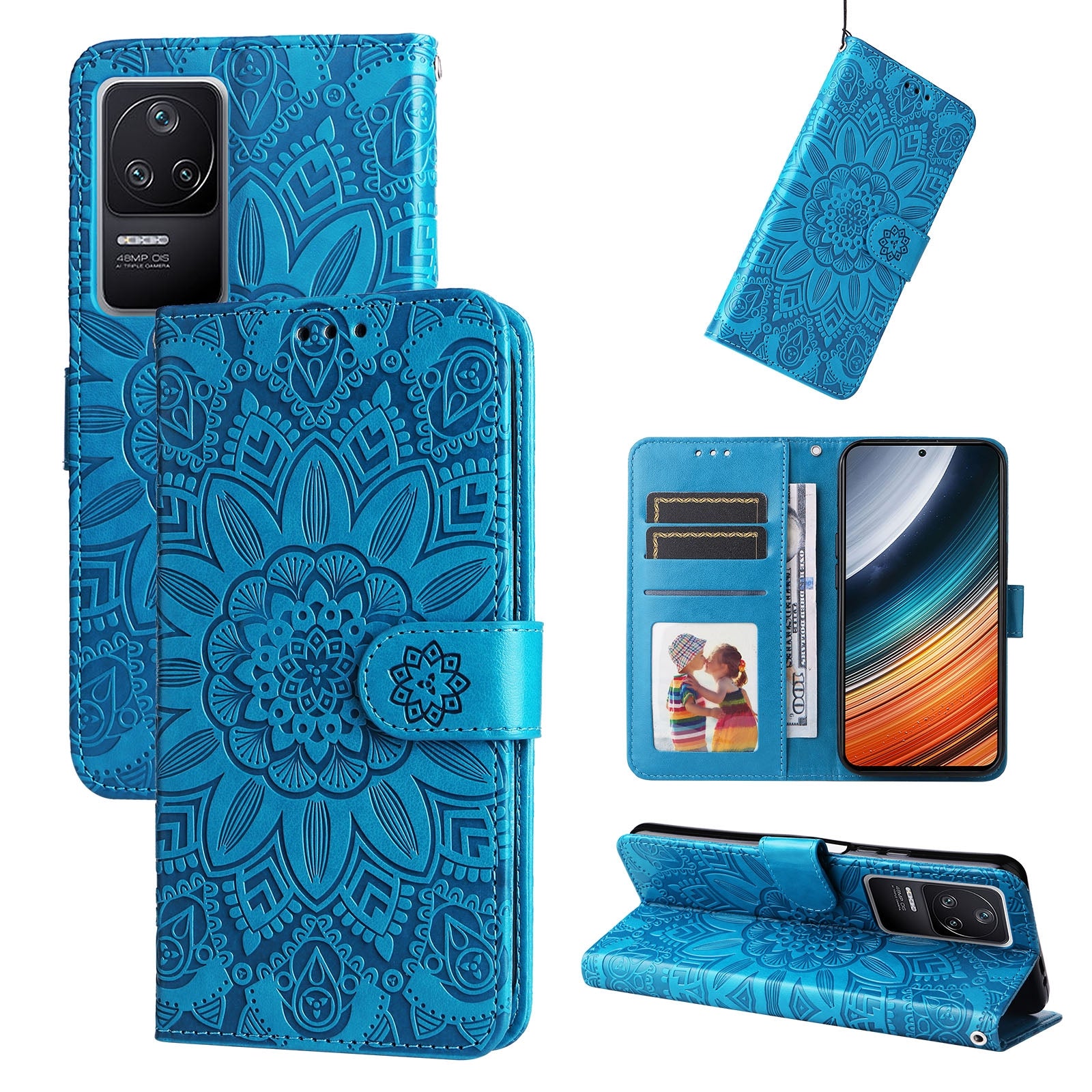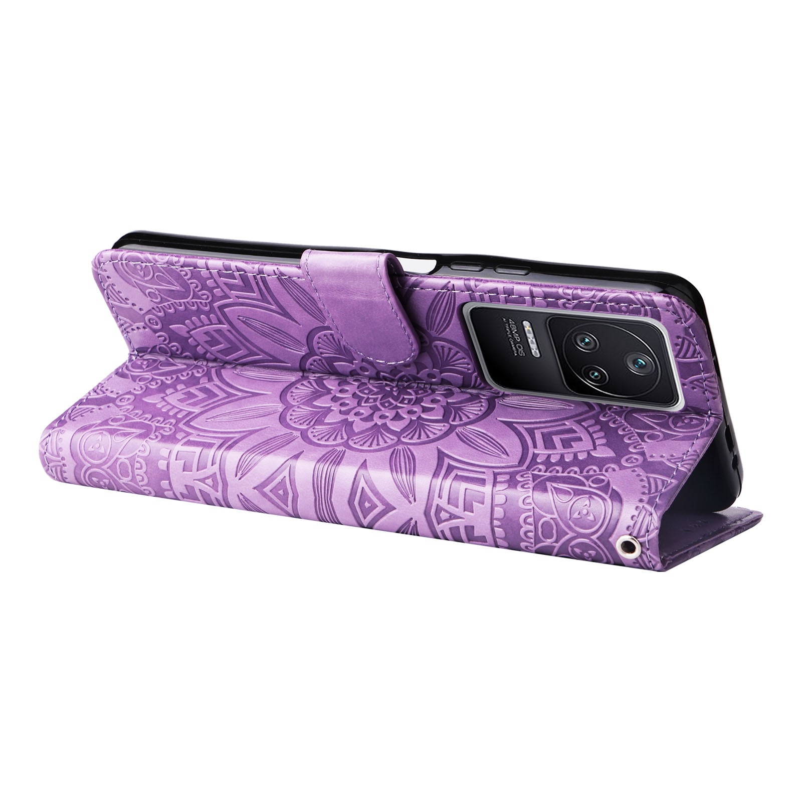 Xiaomi Redmi K40S Sunflower Embossed Leather Wallet Phone Case with Kickstand and Card Holder