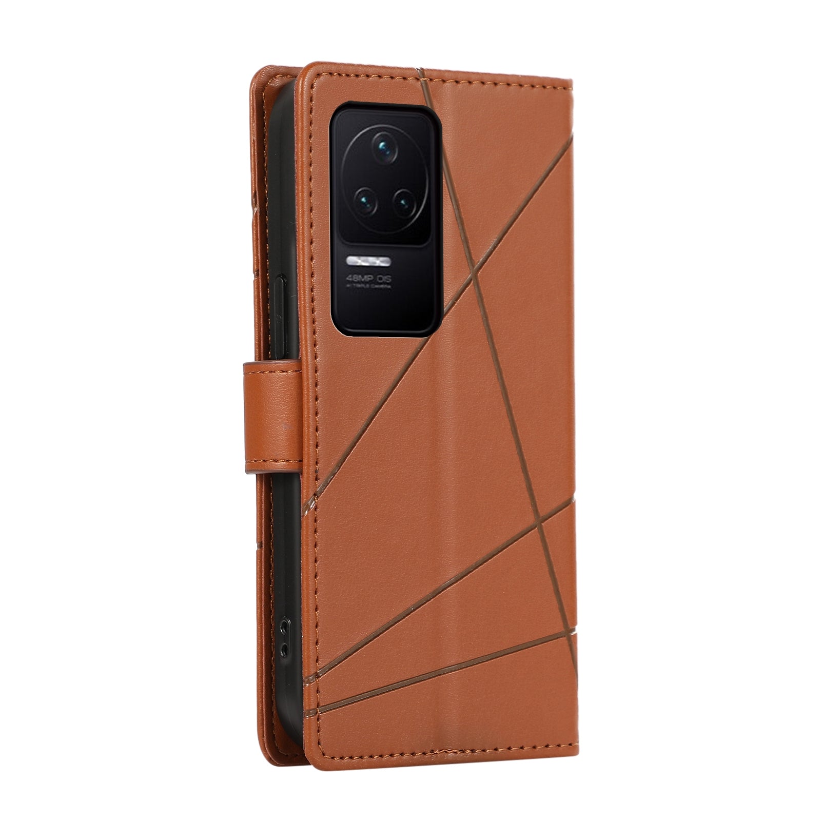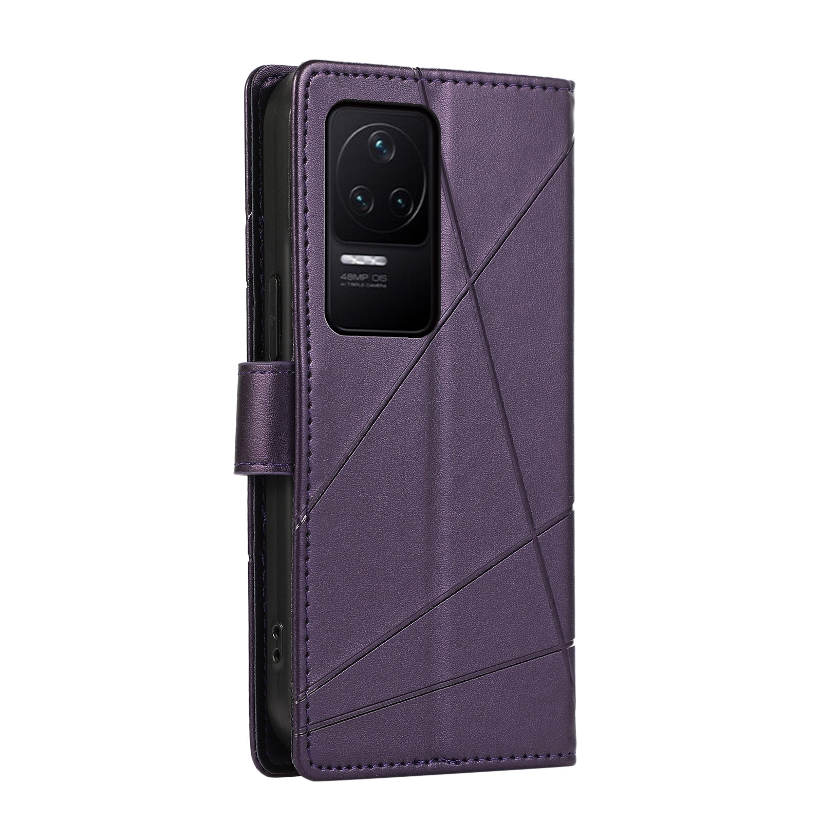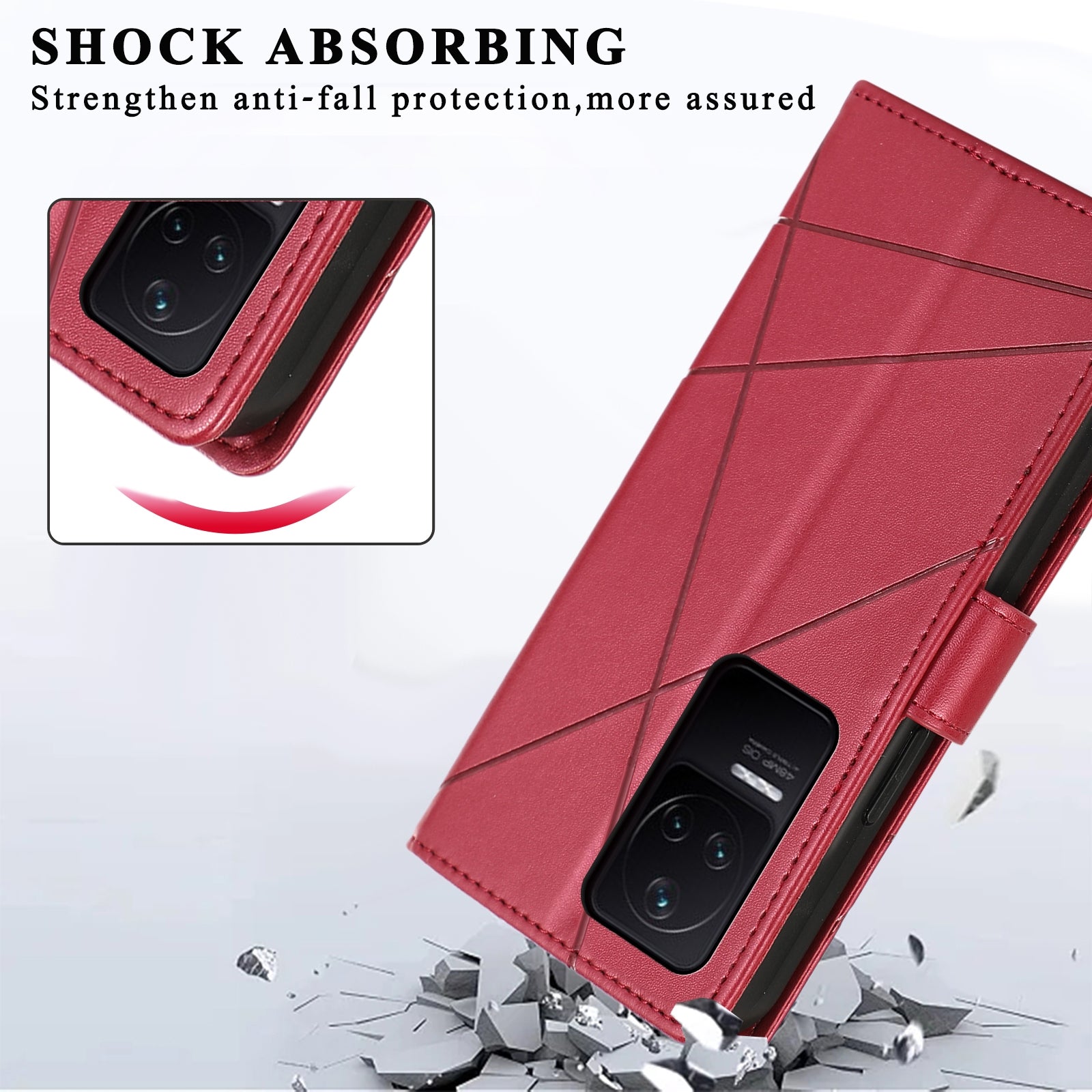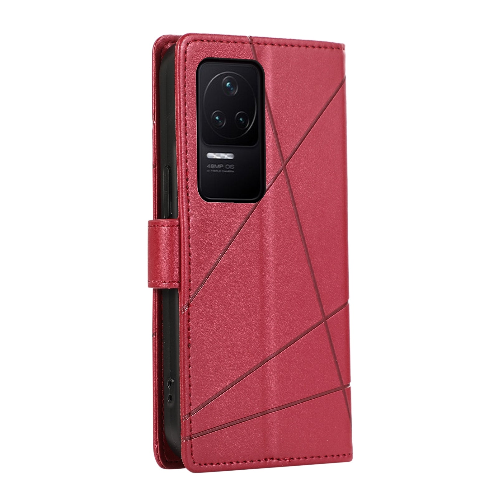 Xiaomi Redmi K50 Genuine Leather Texture Embossed Line Phone Case with Card Wallet & Kickstand
