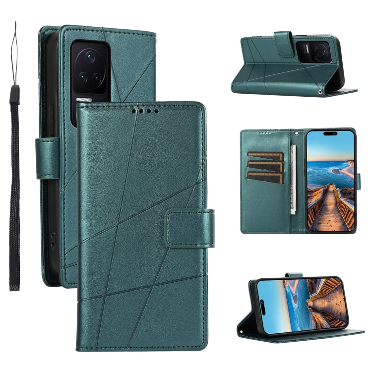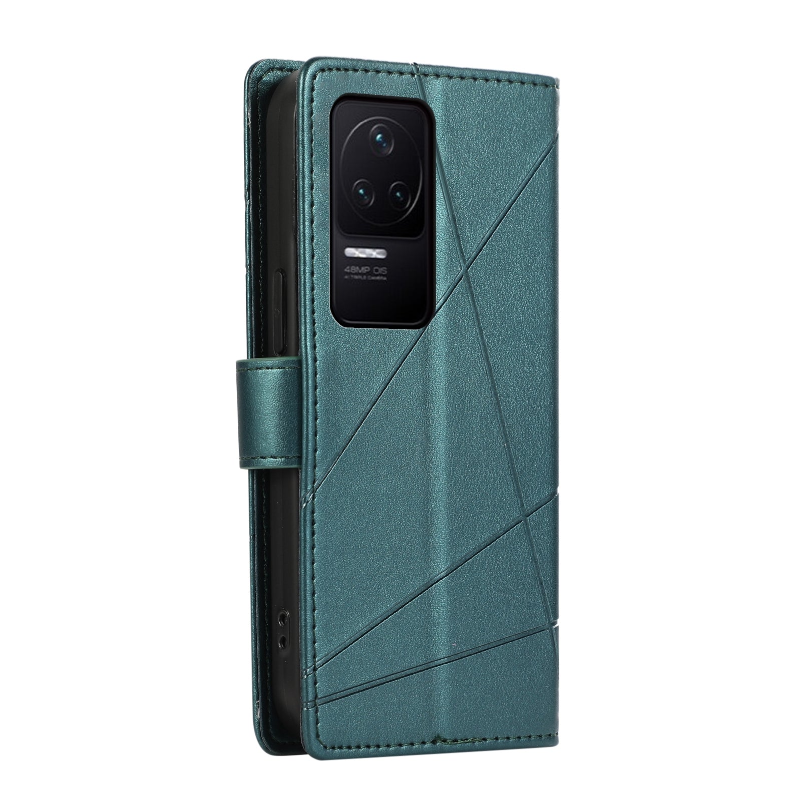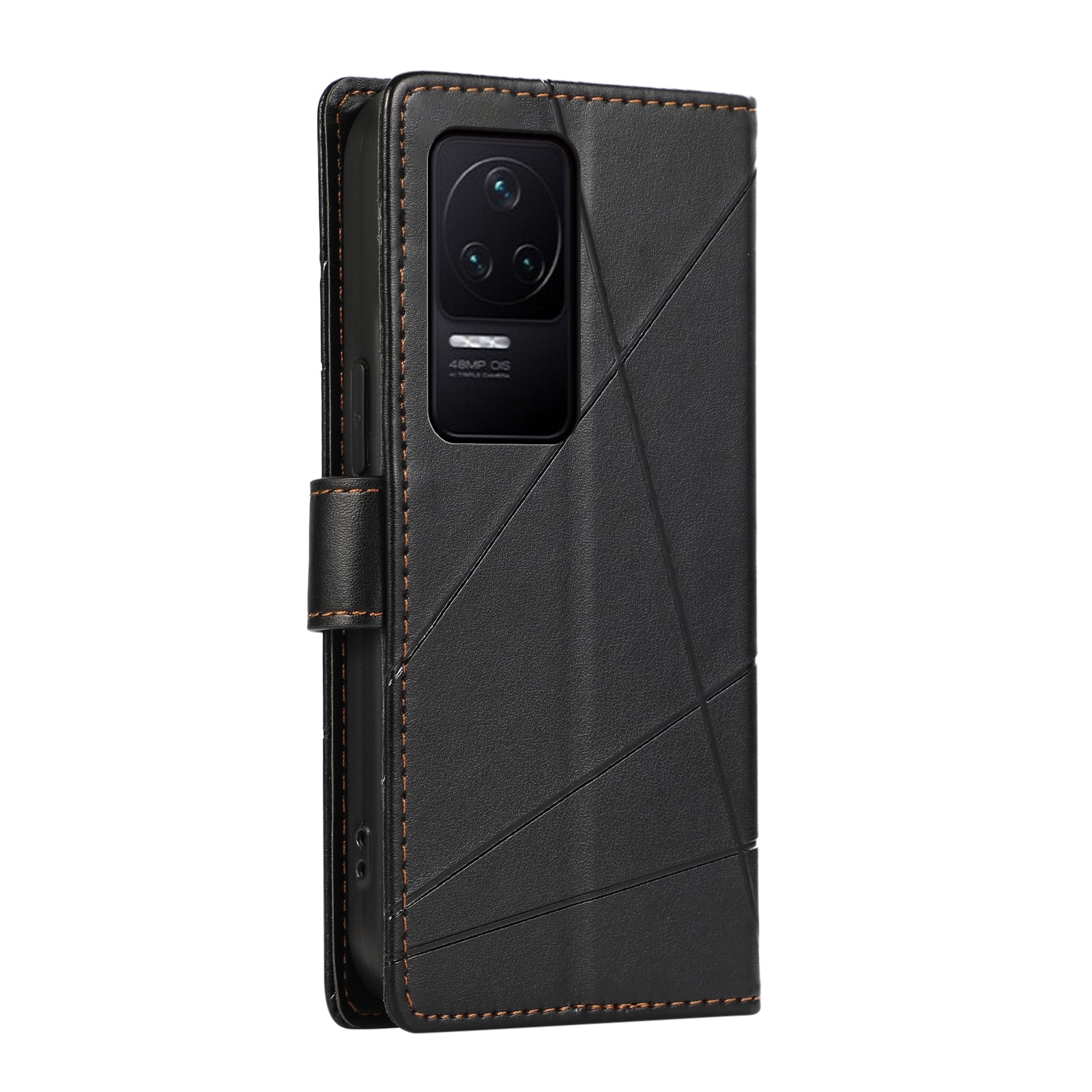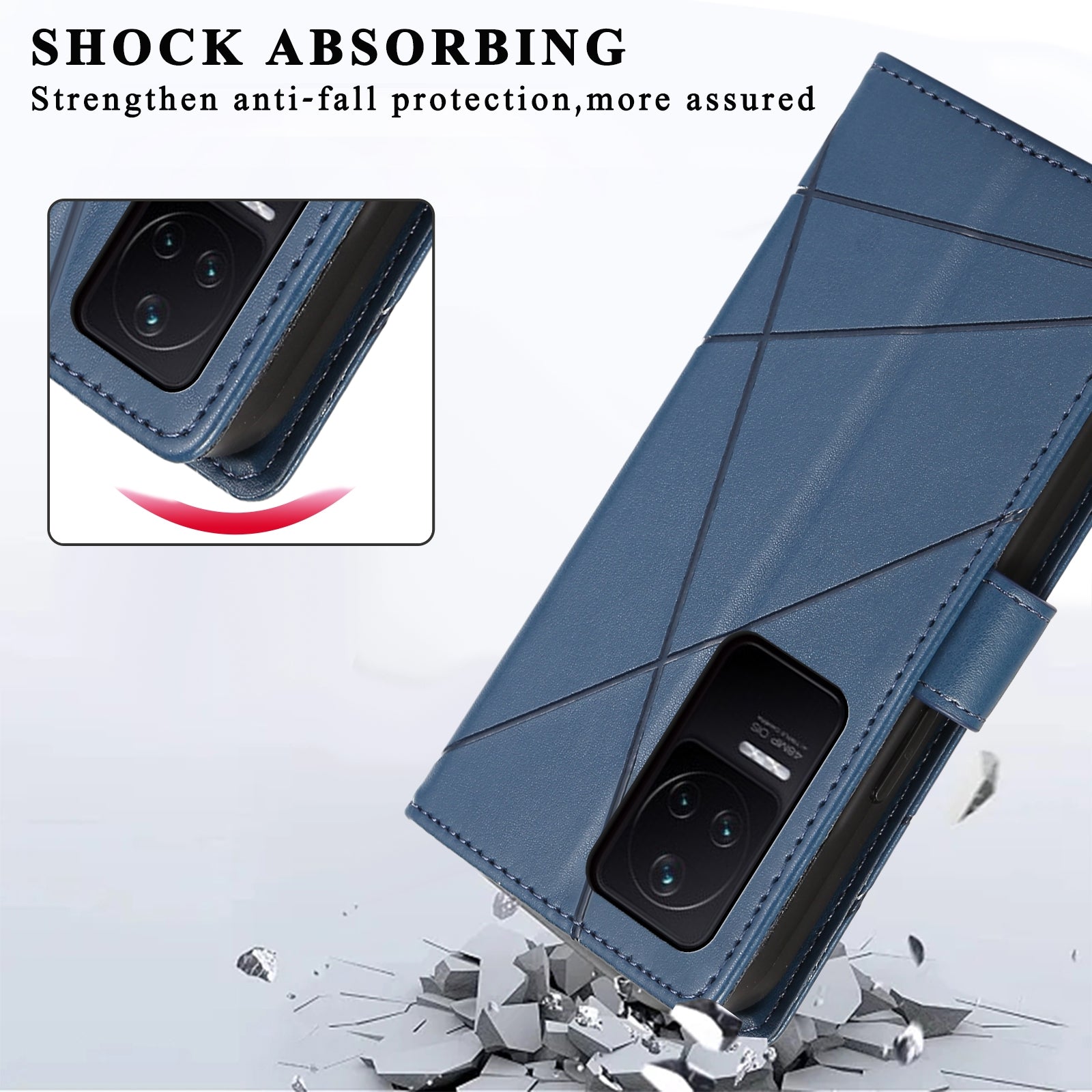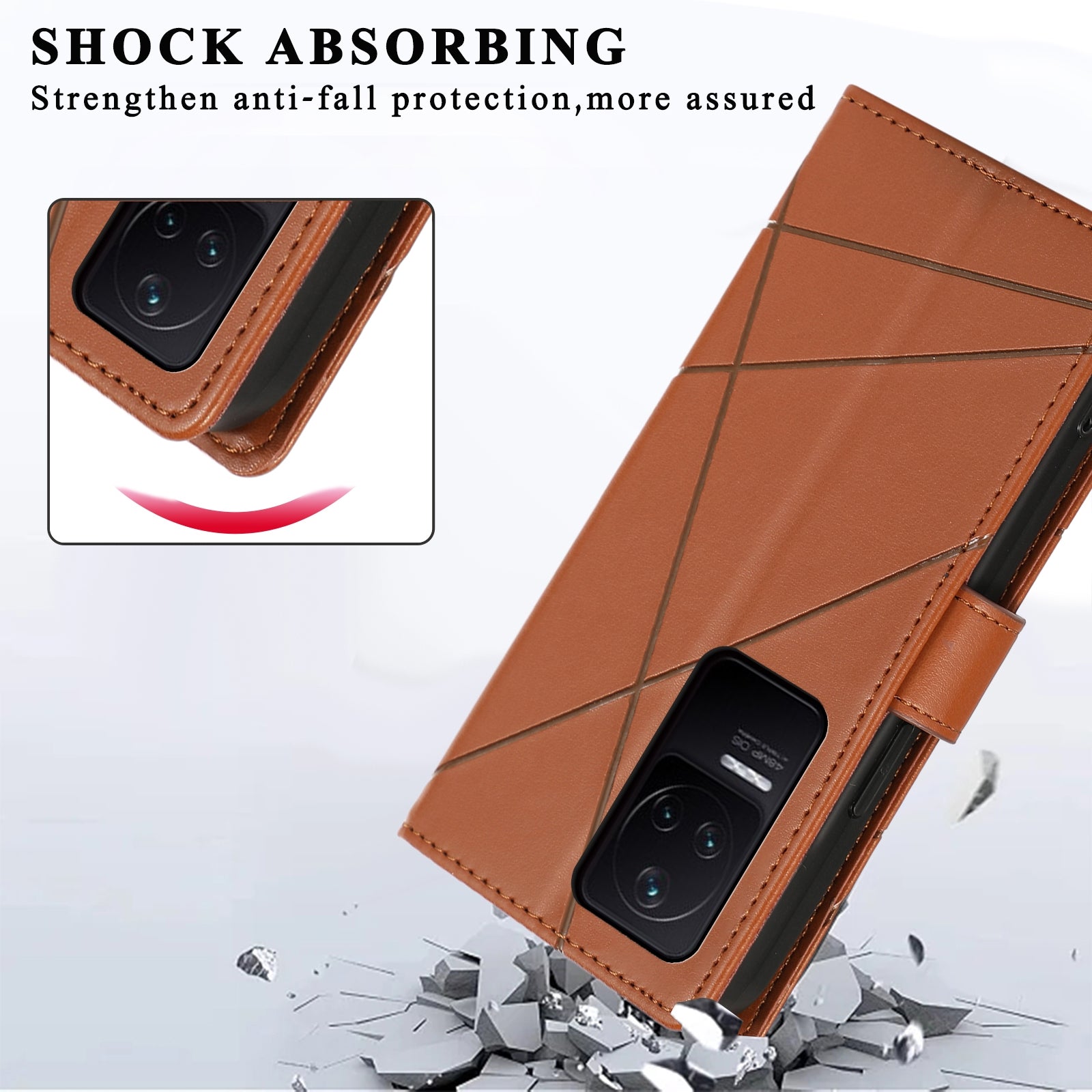 Xiaomi Redmi K50 Genuine Leather Texture Embossed Line Phone Case with Card Wallet & Kickstand