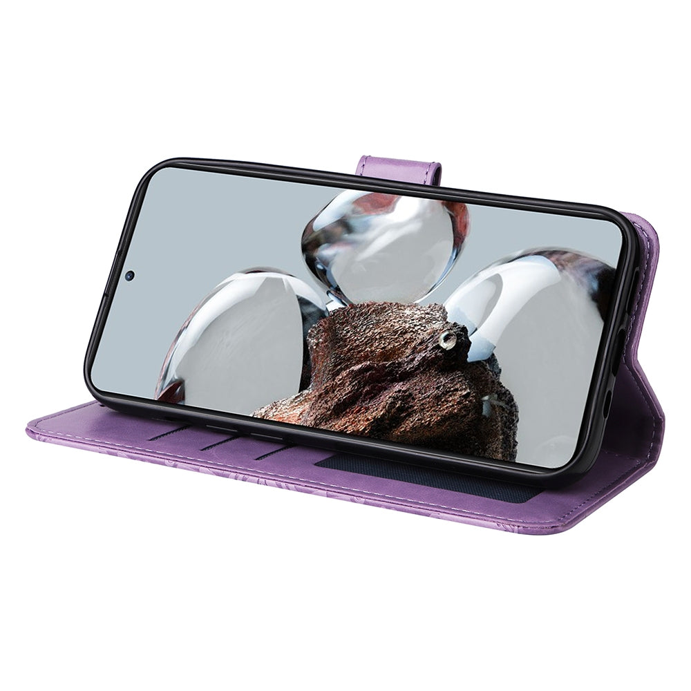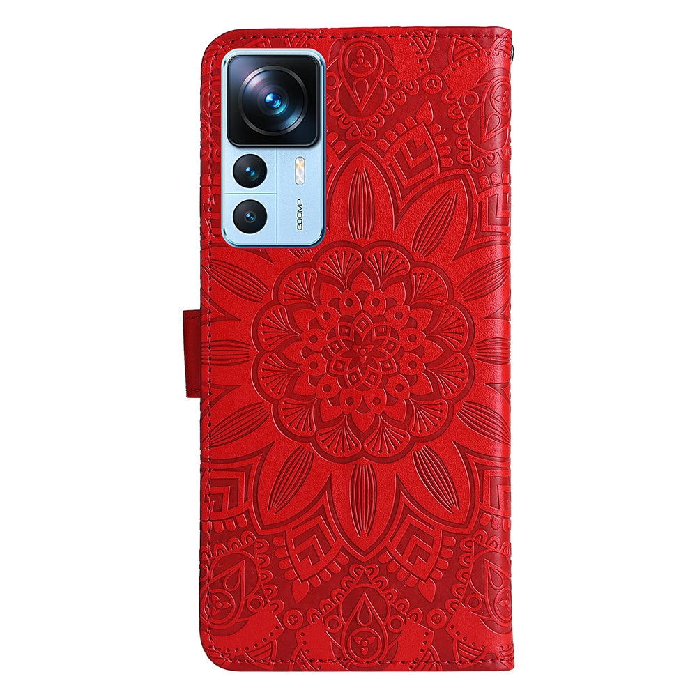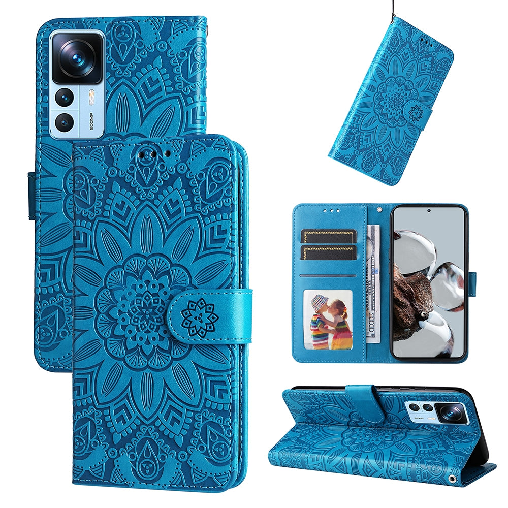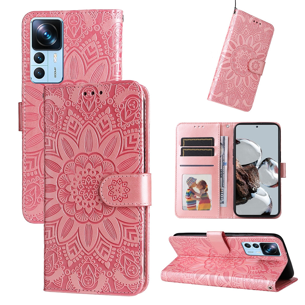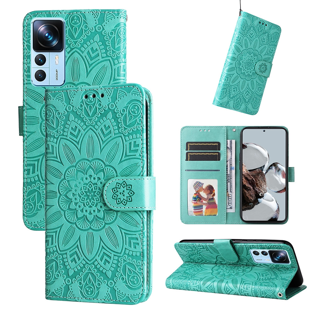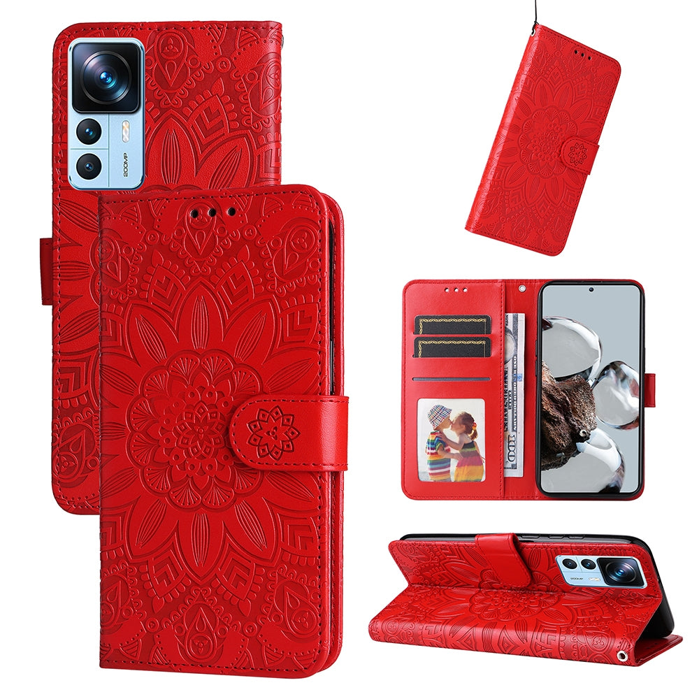 Xiaomi Redmi K50 Ultra Sunflower Embossed Leather Wallet Phone Case with Kickstand and Card Holder