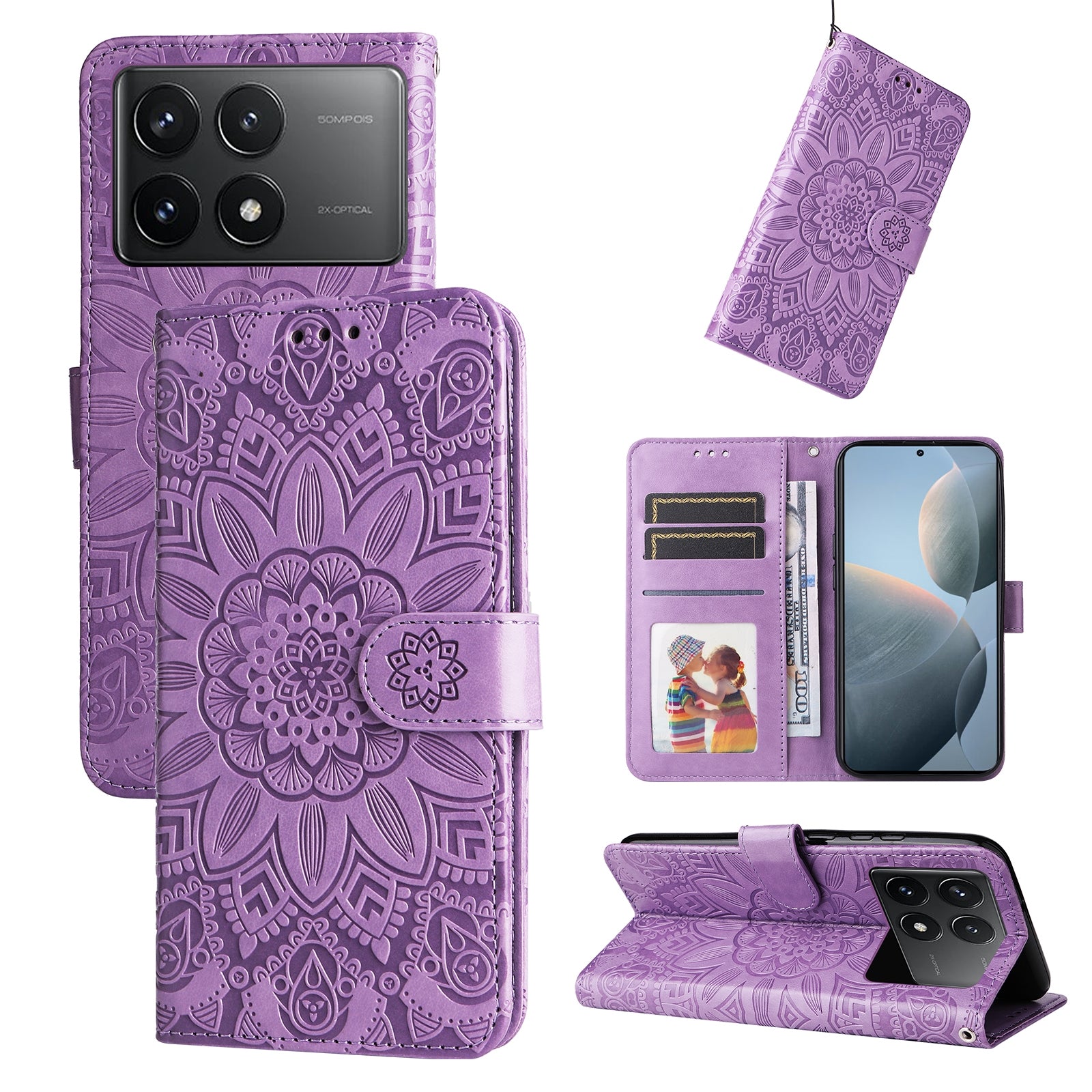 Xiaomi Redmi K70 Sunflower Embossed Leather Wallet Phone Case with Kickstand and Card Holder