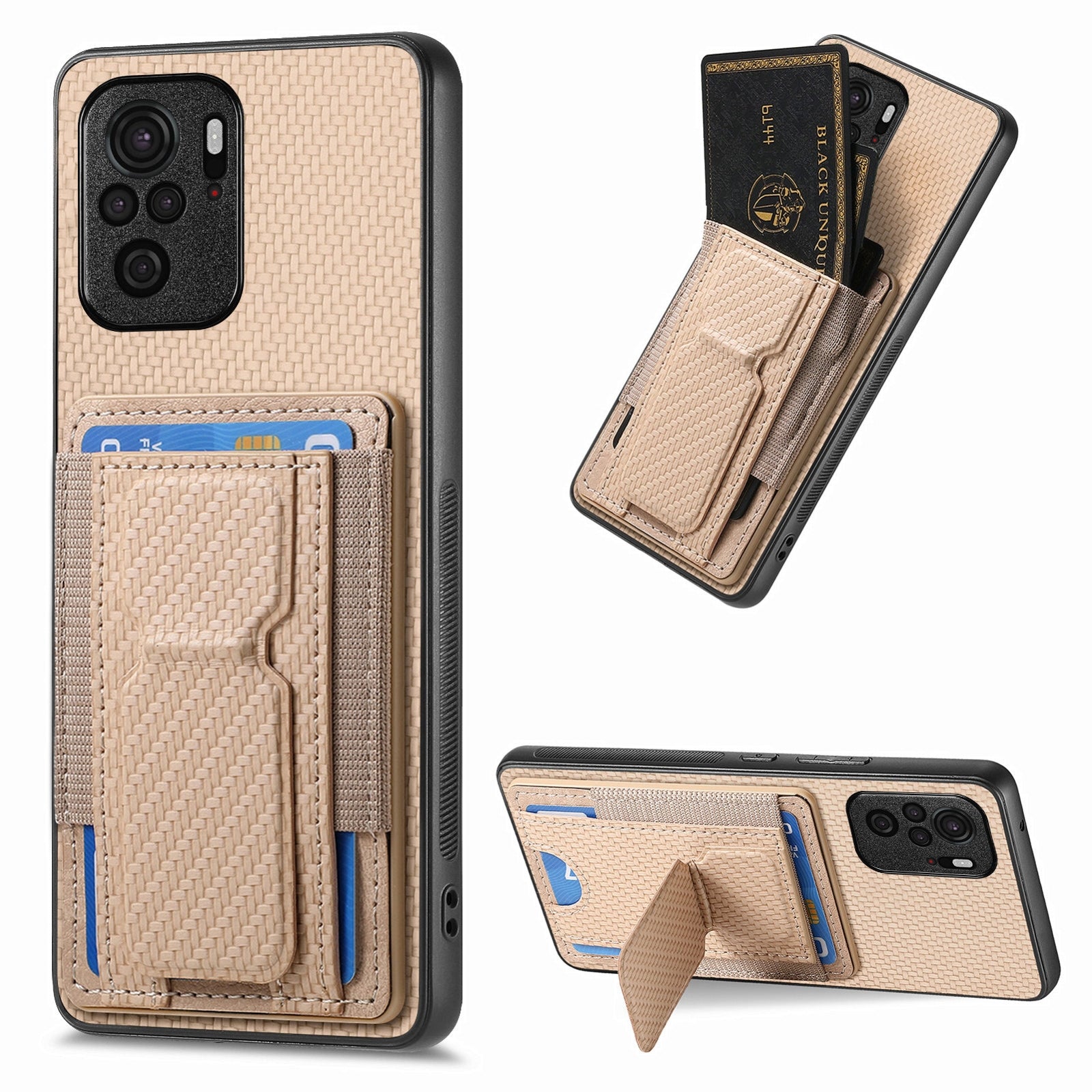 Xiaomi Redmi Note 10 4G Carbon Fiber Fold Stand Elastic Card Bag Phone Case with Multi-Functional Wallet