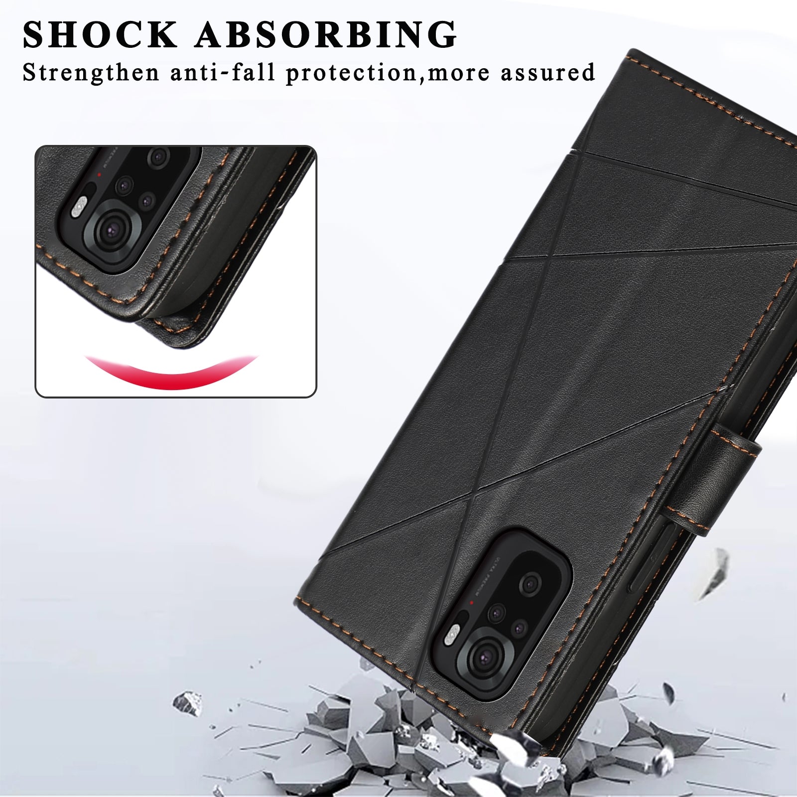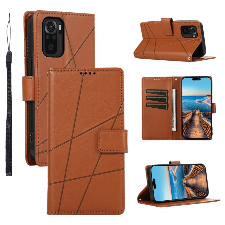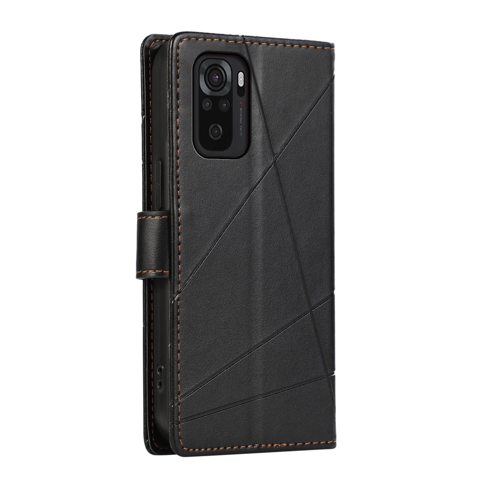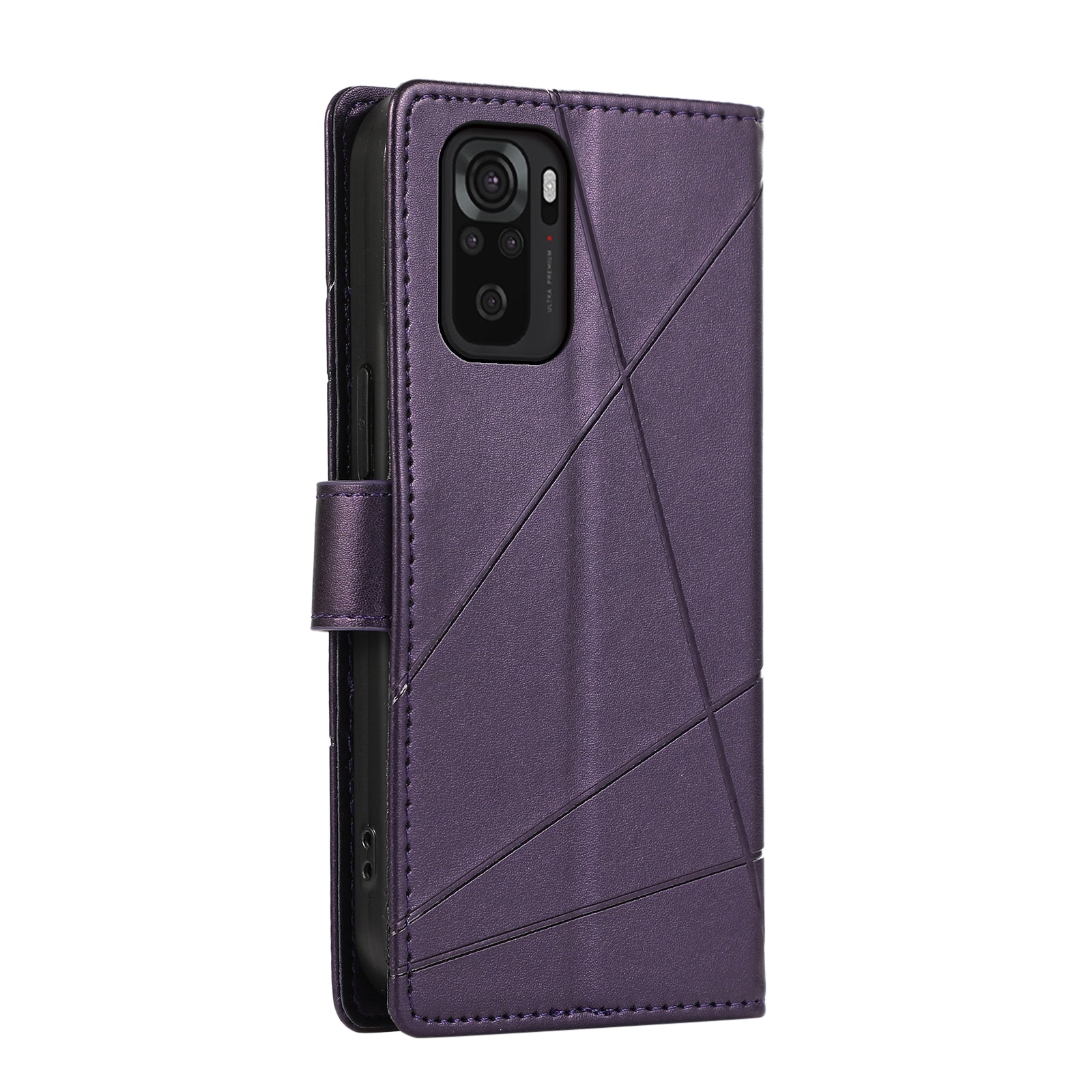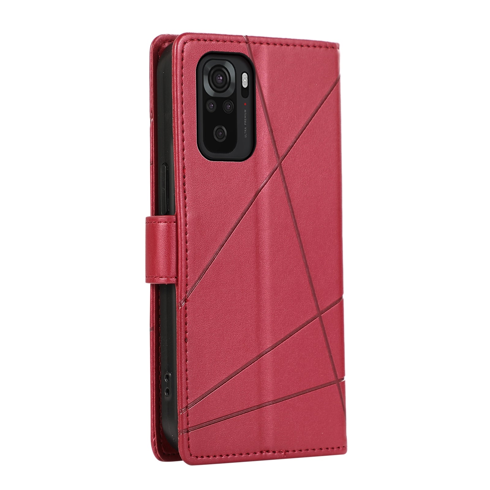 Xiaomi Redmi Note 10 4g Genuine Leather Texture Embossed Line Phone Case with Card Wallet & Kickstand