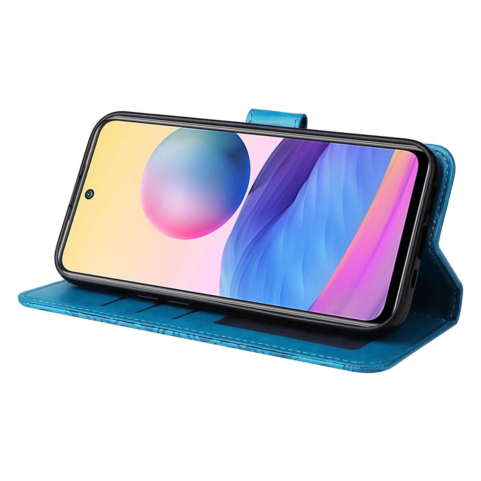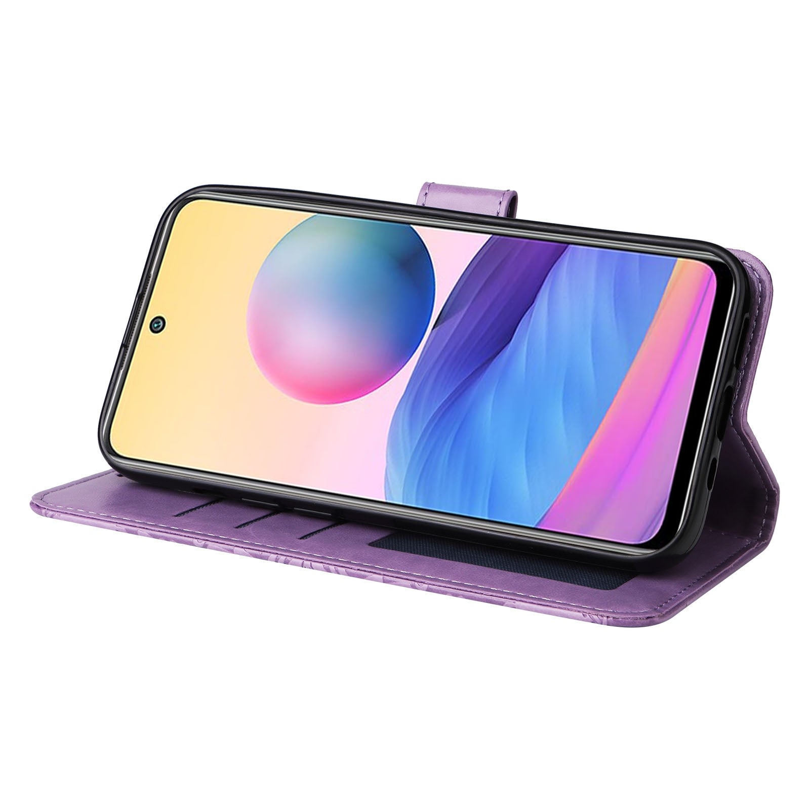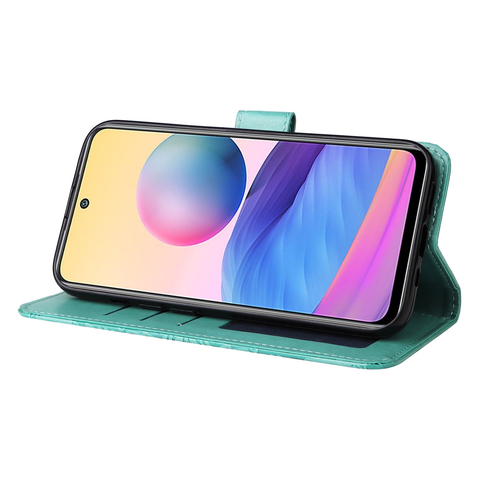 Xiaomi Redmi Note 10 5G Sunflower Embossed Leather Wallet Phone Case with Kickstand and Card Holder