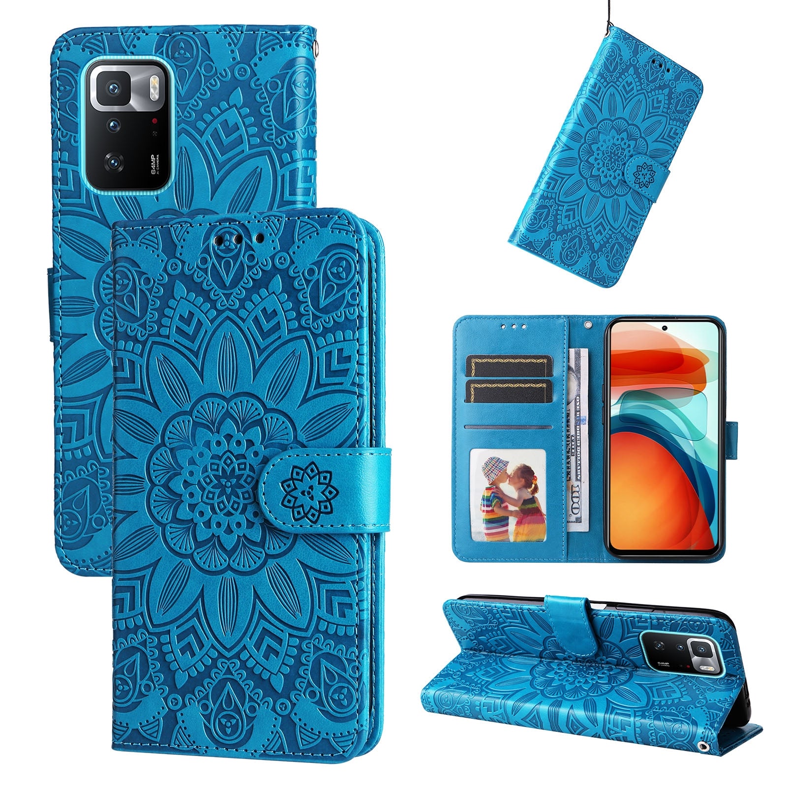 Xiaomi Redmi Note 10 Pro 5G Sunflower Embossed Leather Wallet Phone Case with Kickstand and Card Holder