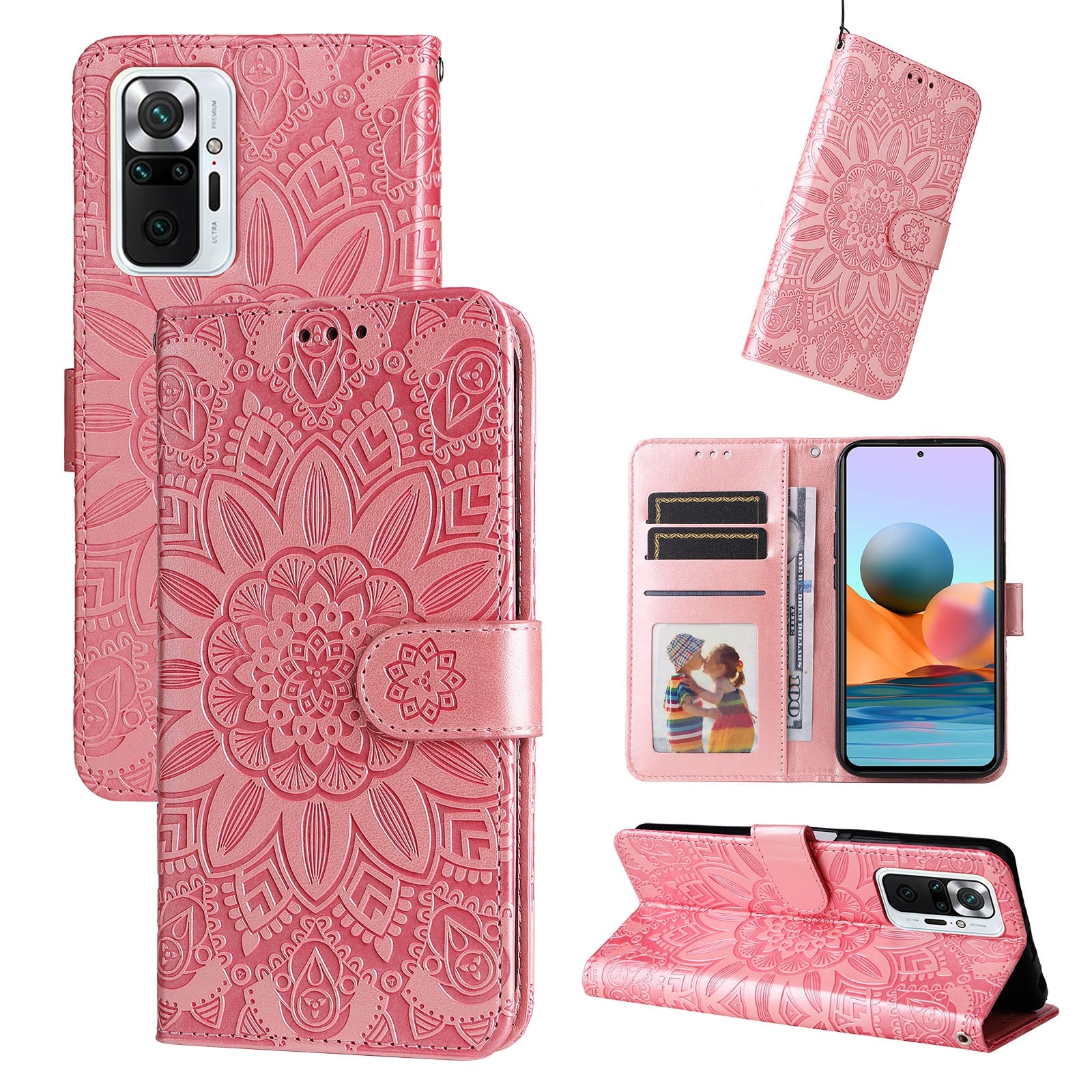 Xiaomi Redmi Note 10 Pro Max Sunflower Embossed Leather Wallet Phone Case with Kickstand and Card Holder