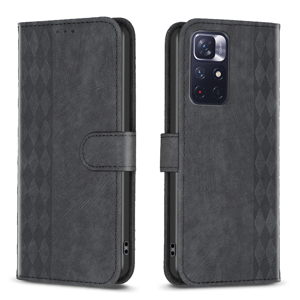 Xiaomi Redmi Note 11 Case - Embossed Plaid Leather Wallet Cover with Card Slots, Kickstand, and 360 degree Protection
