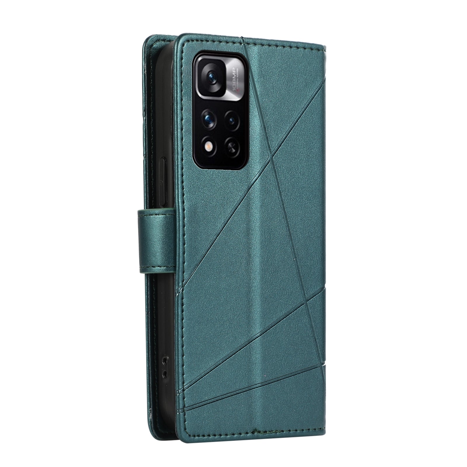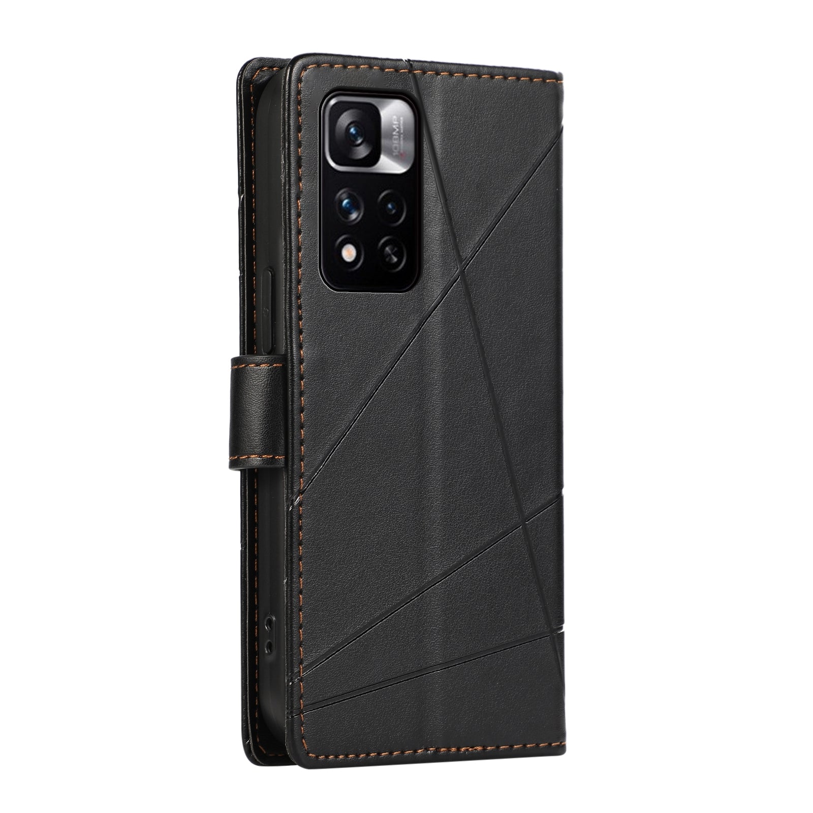 Xiaomi Redmi Note 11 Pro+ 5g Genuine Leather Texture Embossed Line Phone Case with Card Wallet & Kickstand