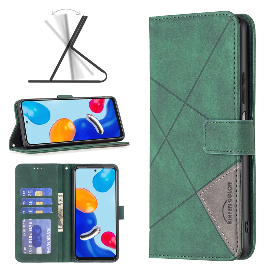 Xiaomi Redmi Note 11 Rhombus Texture Leather Phone Case with Magnetic Buckle and Card Holder