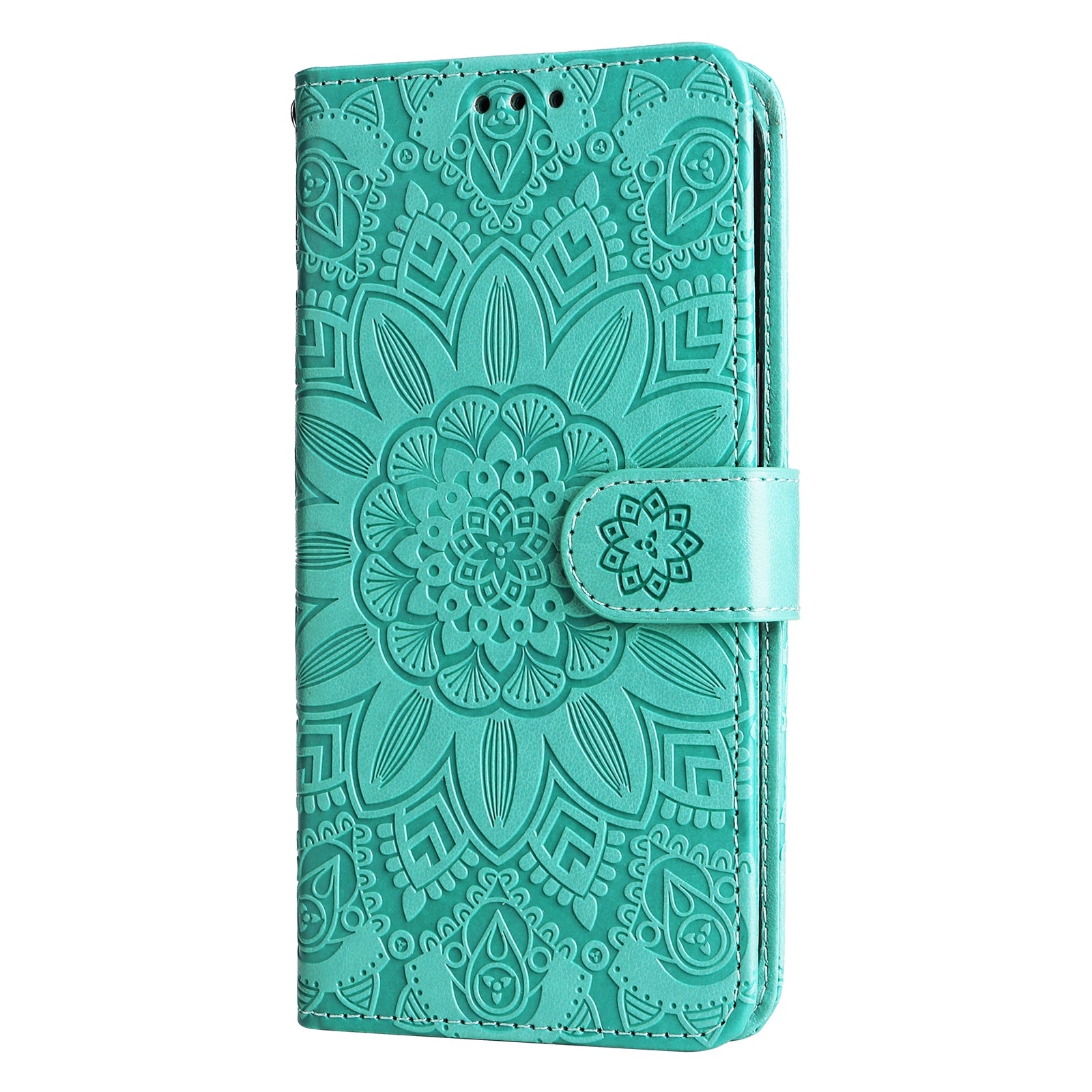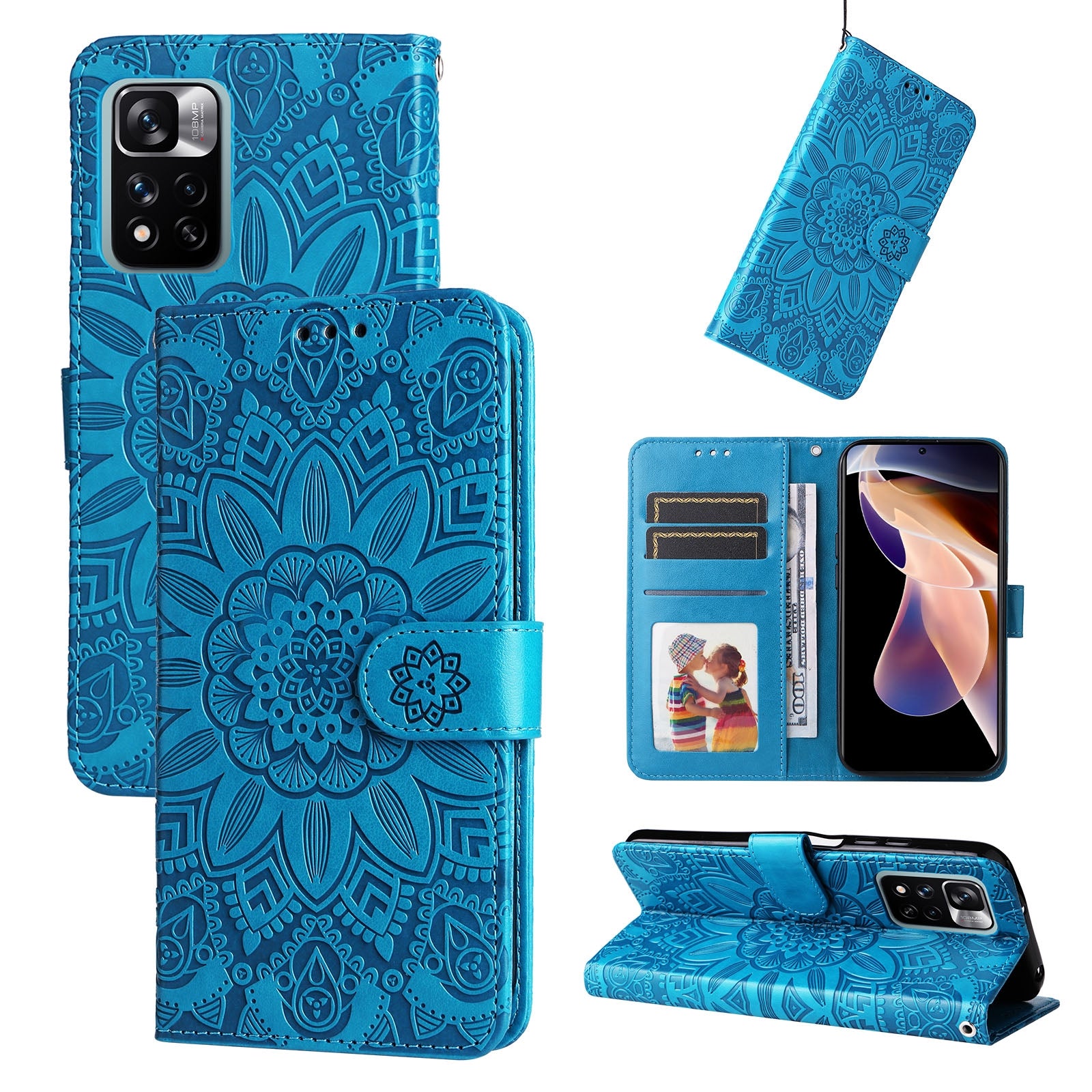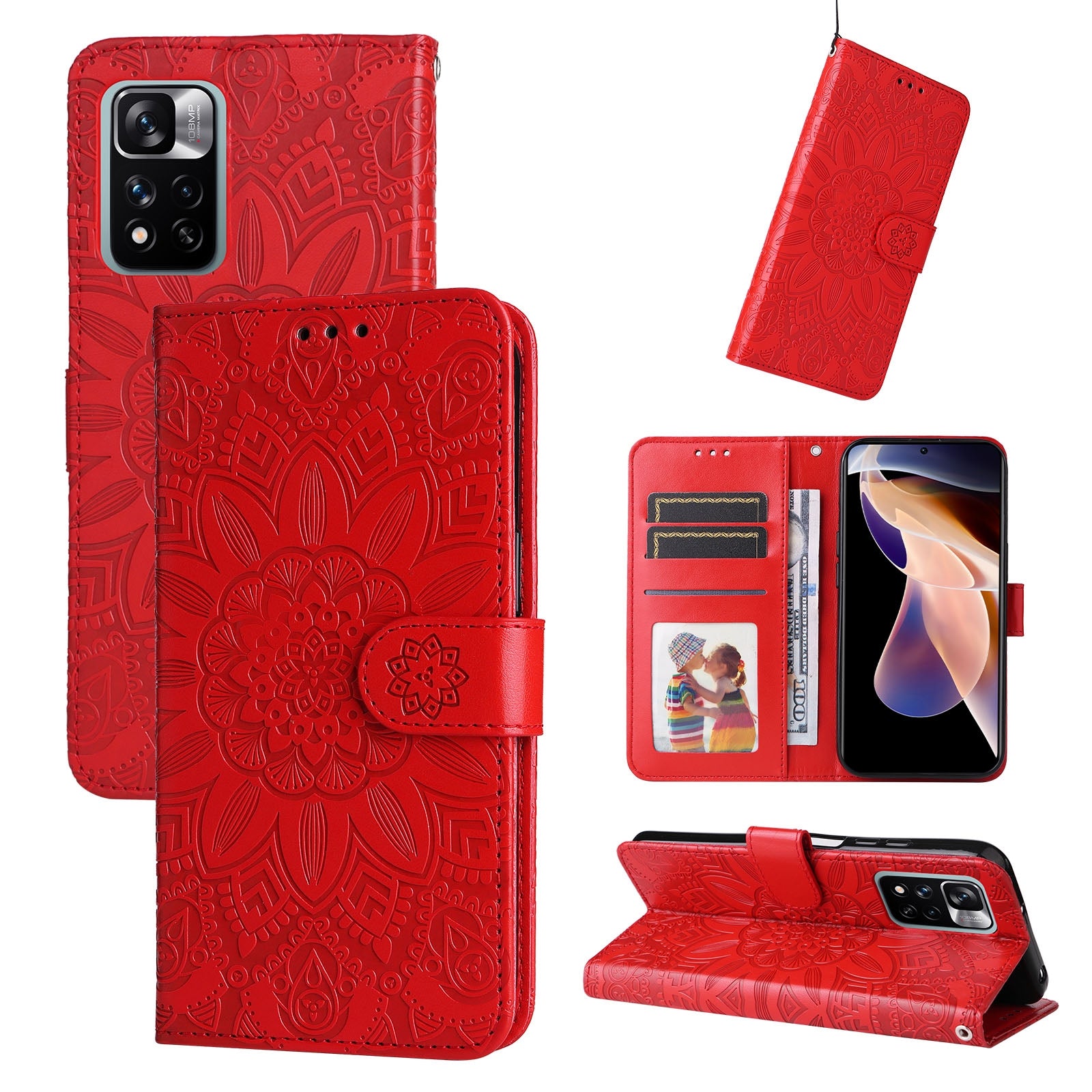 Xiaomi Redmi Note 11E Sunflower Embossed Leather Wallet Phone Case with Kickstand and Card Holder