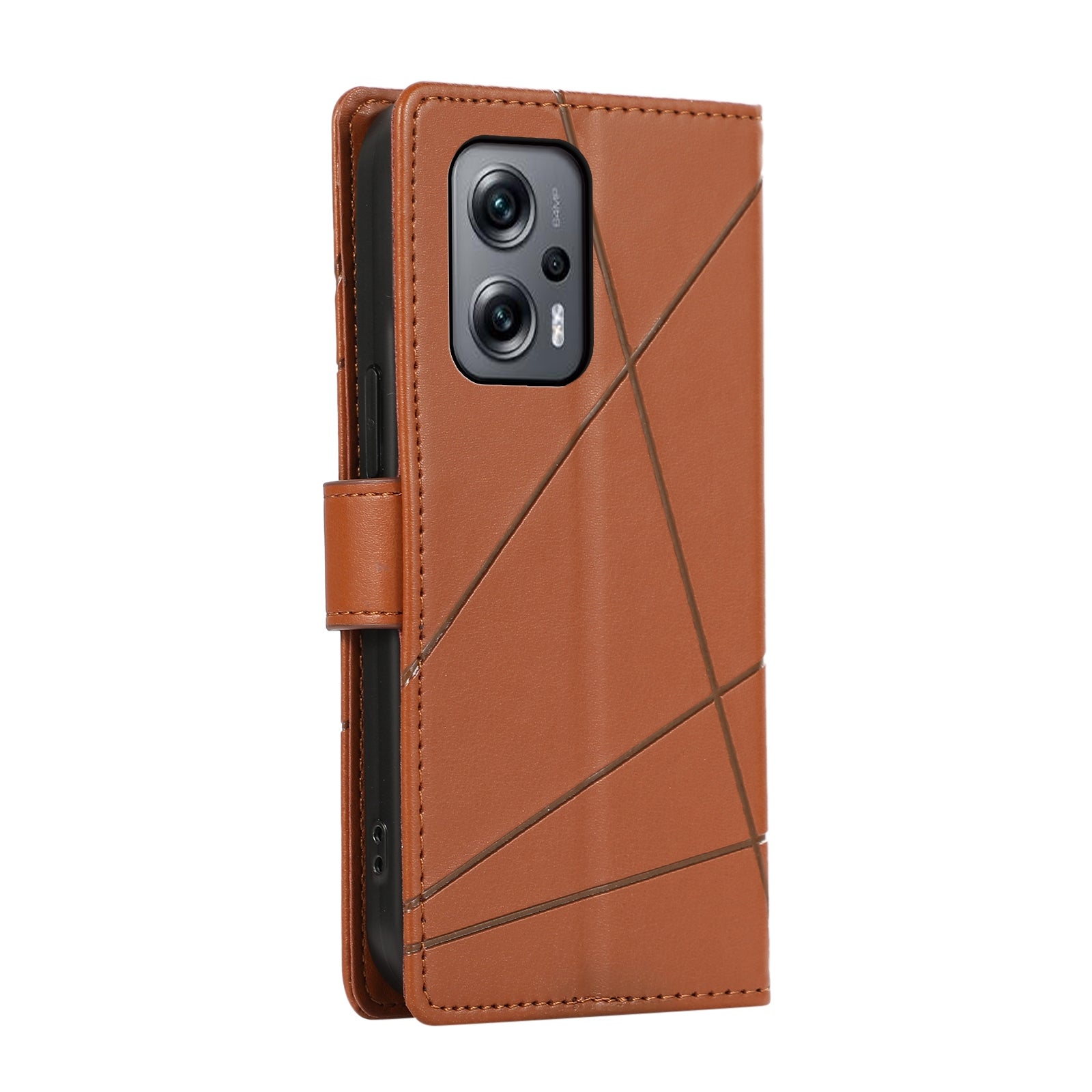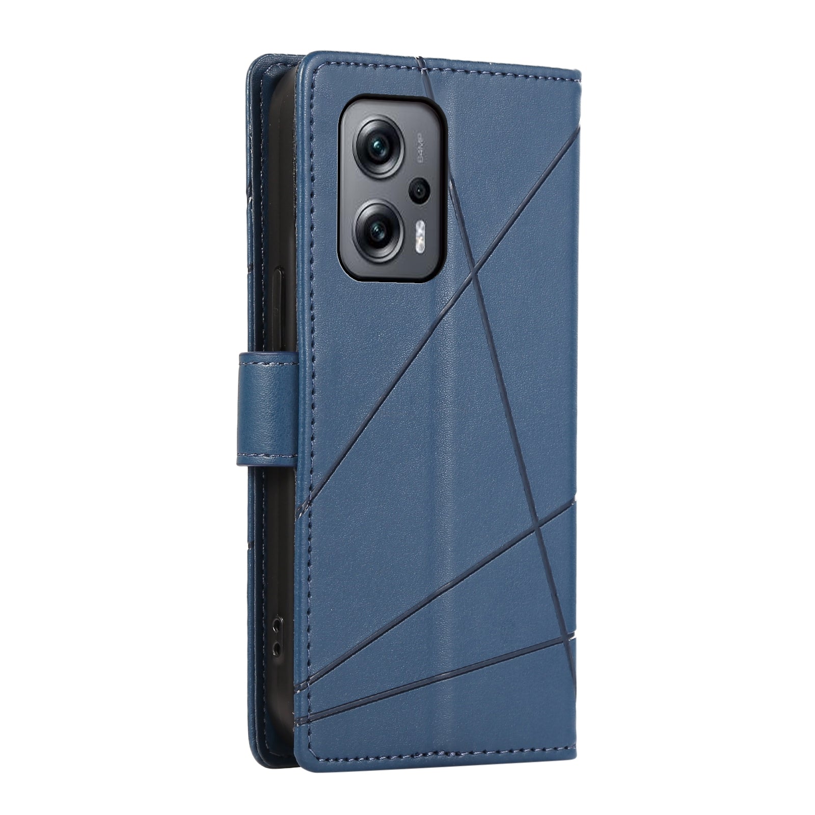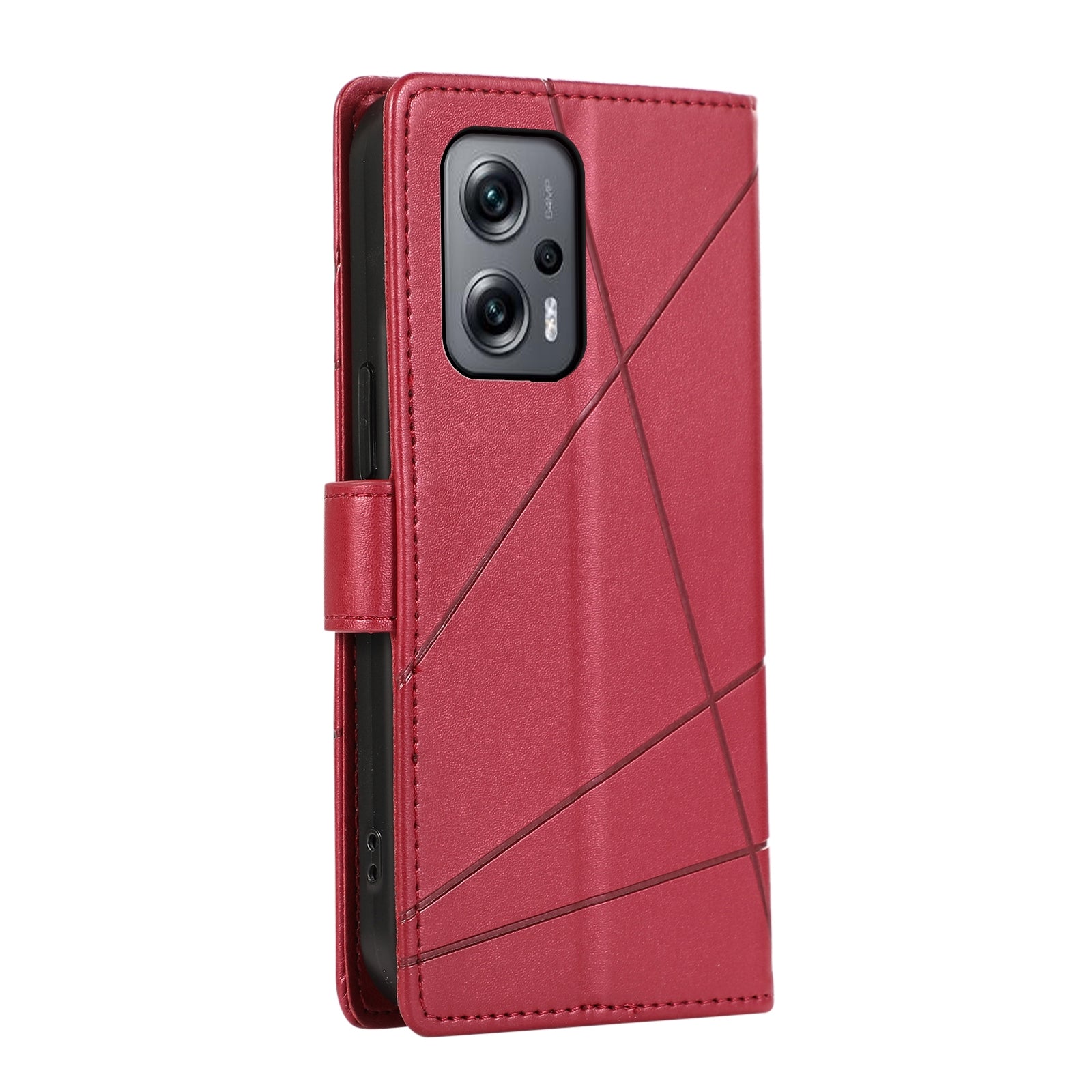 Xiaomi Redmi Note 11T Pro Genuine Leather Texture Embossed Line Phone Case with Card Wallet & Kickstand