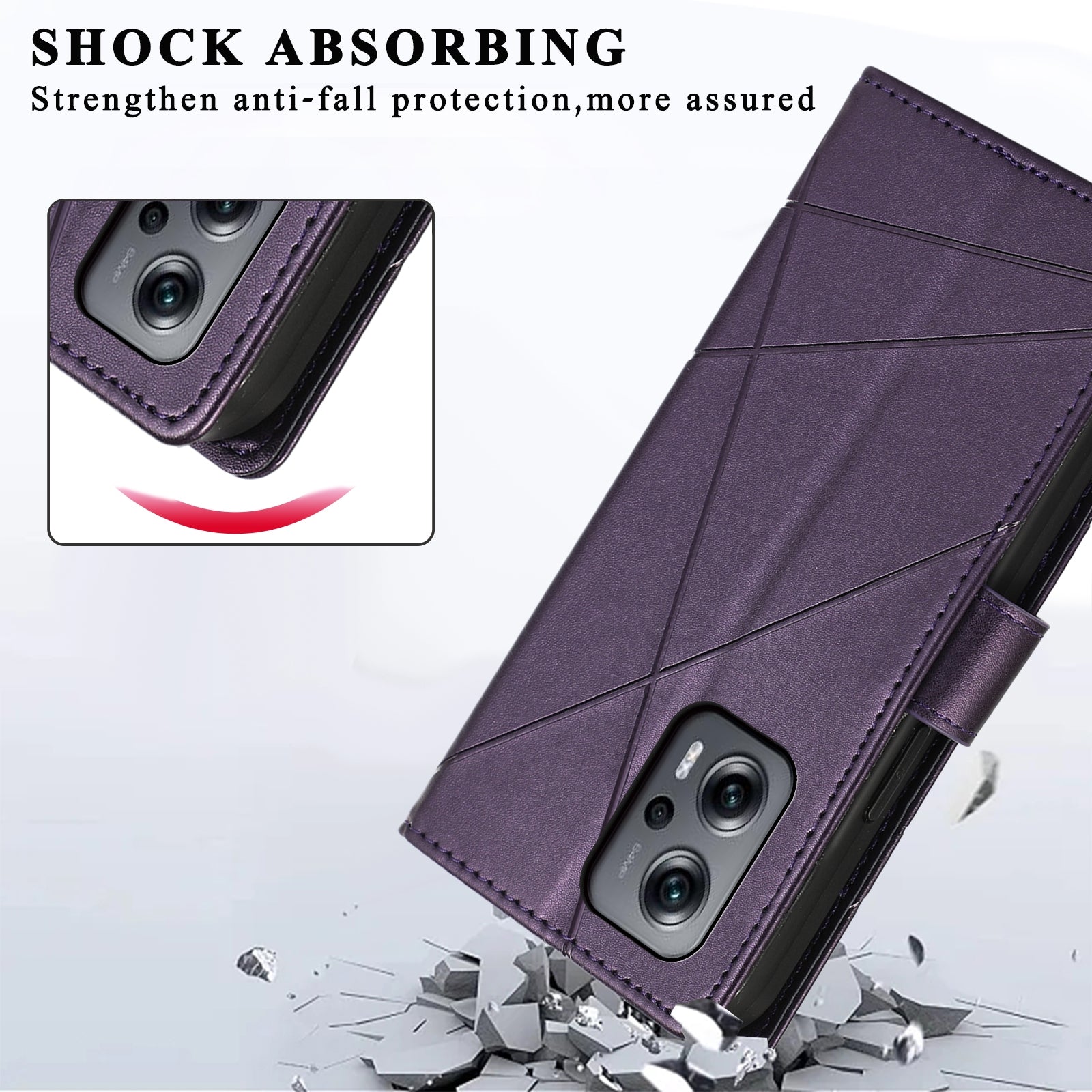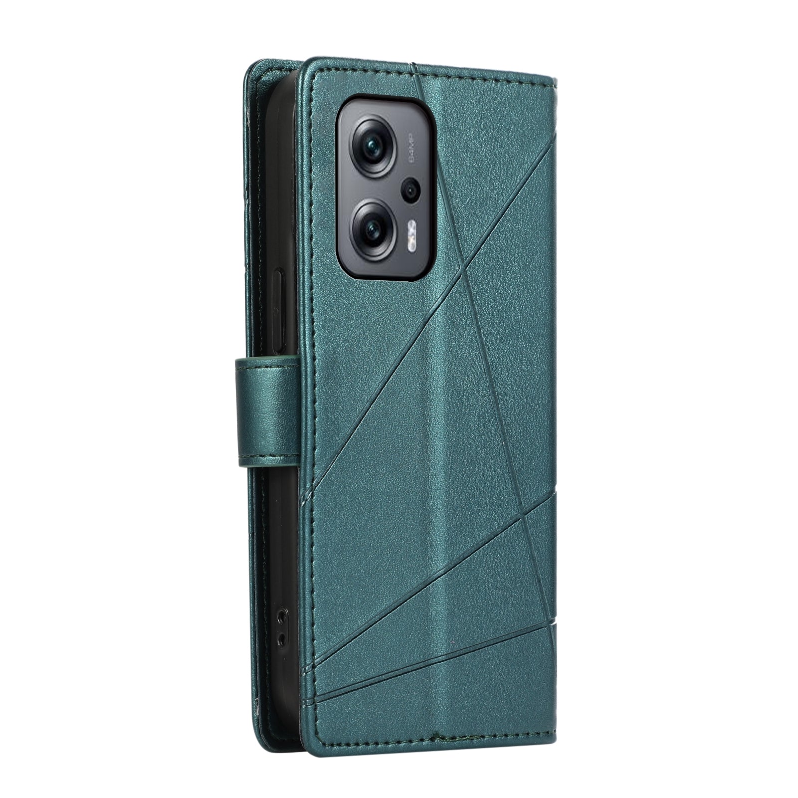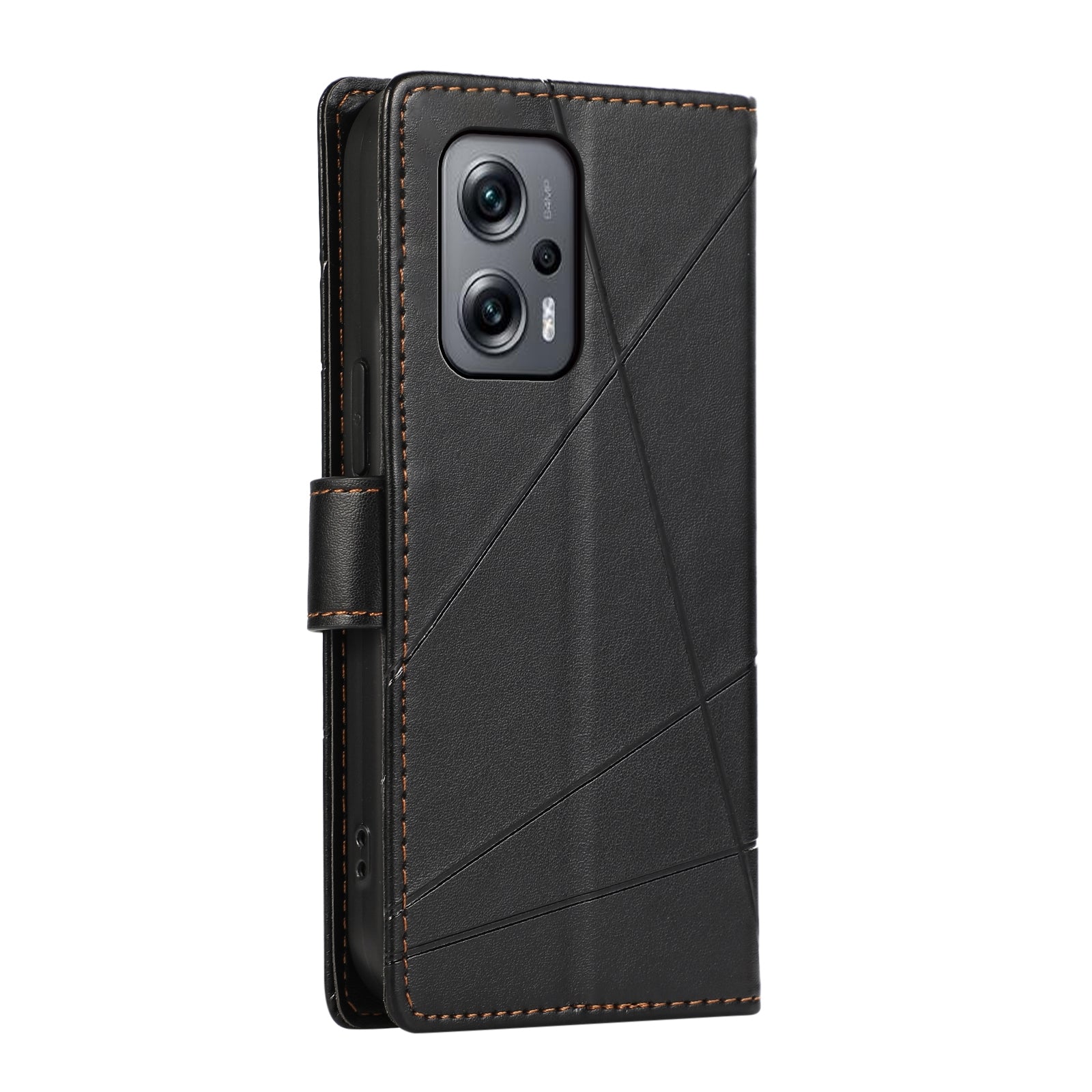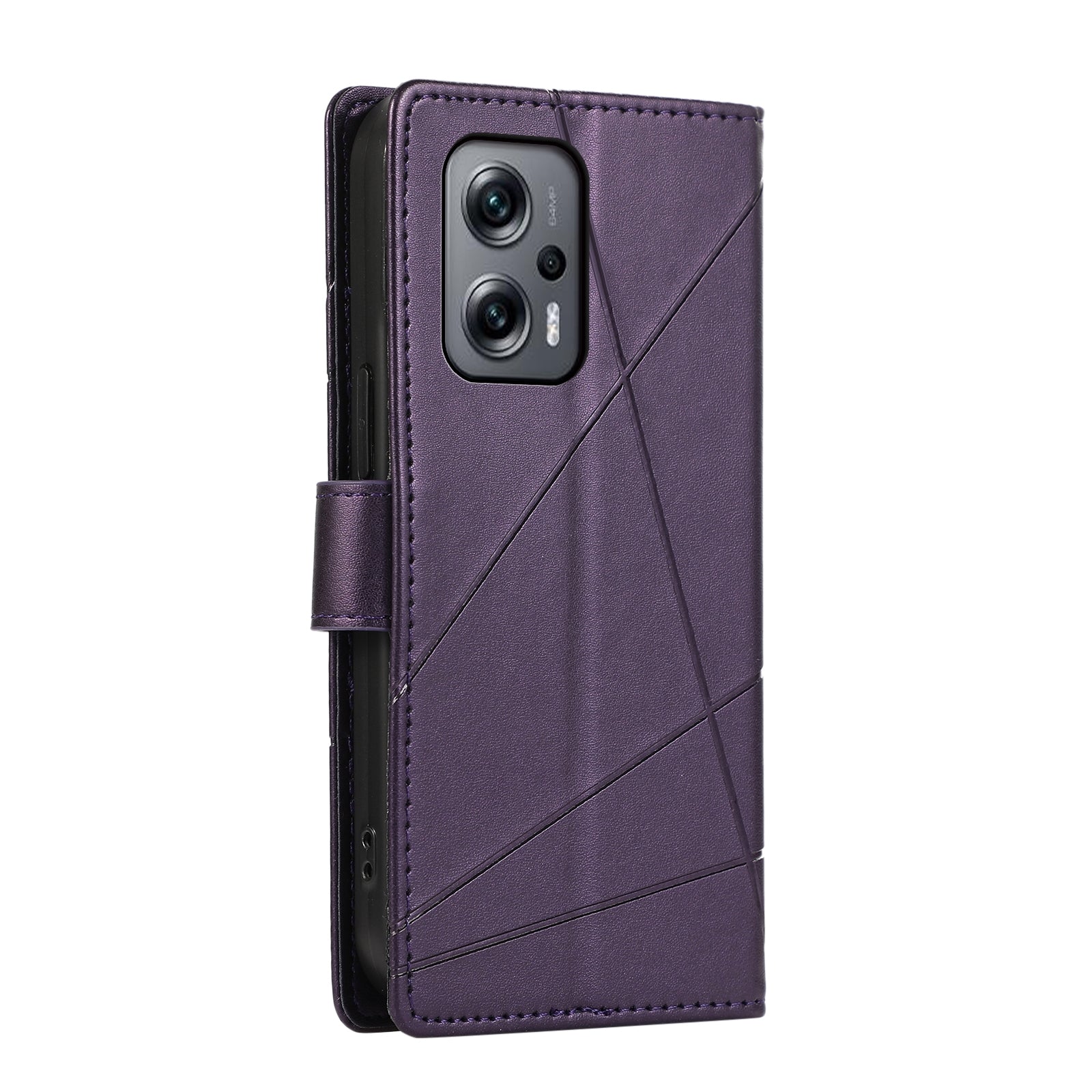 Xiaomi Redmi Note 11T Pro Genuine Leather Texture Embossed Line Phone Case with Card Wallet & Kickstand