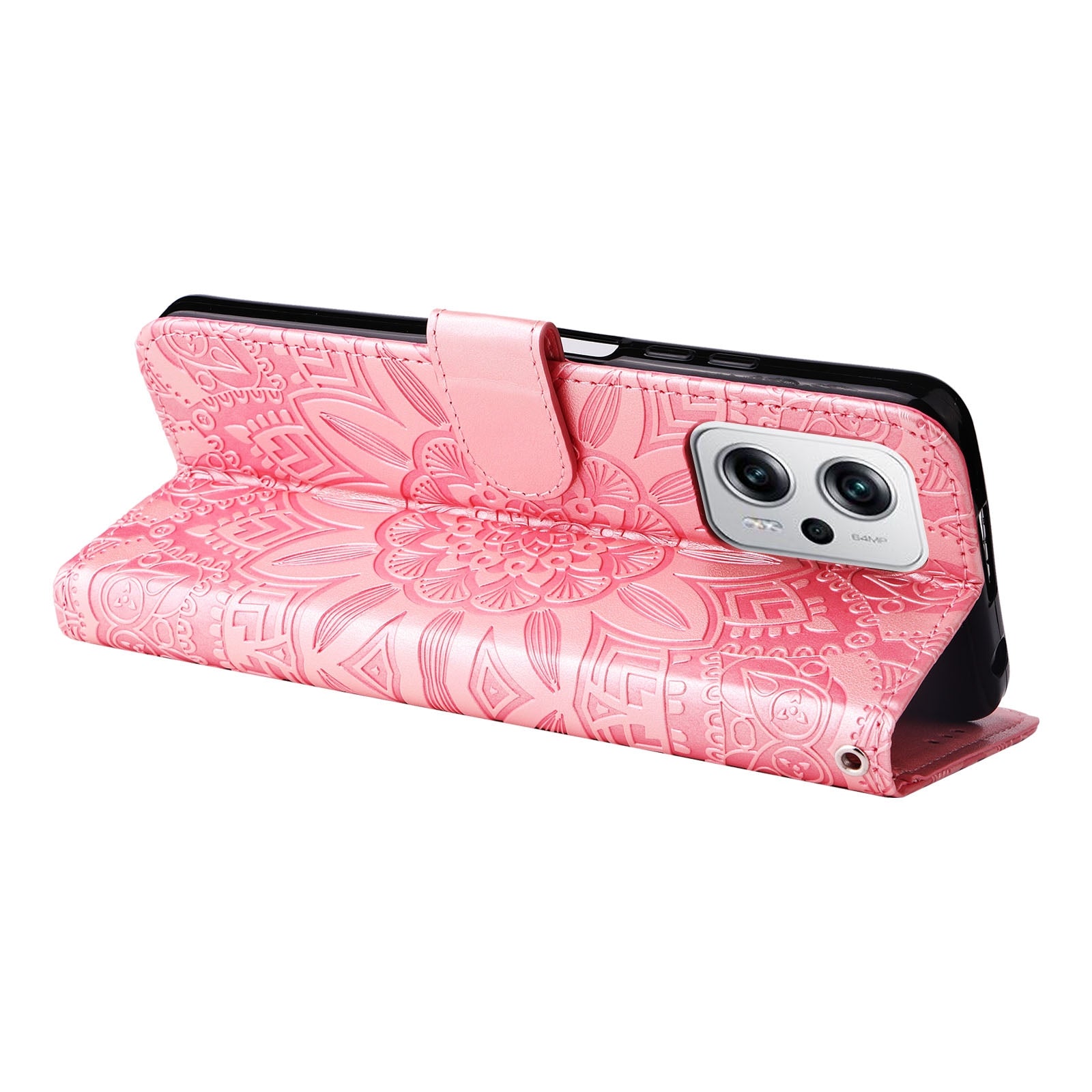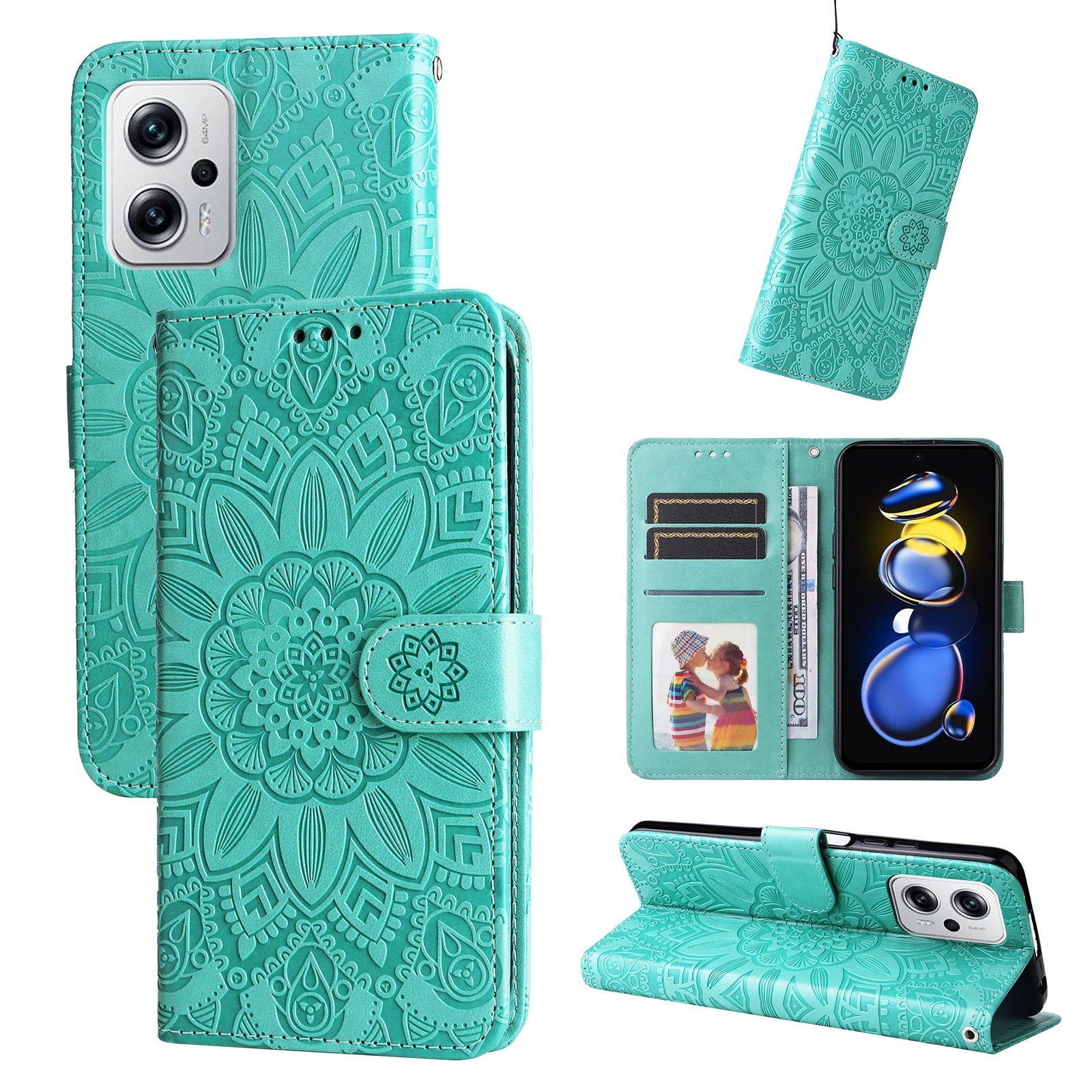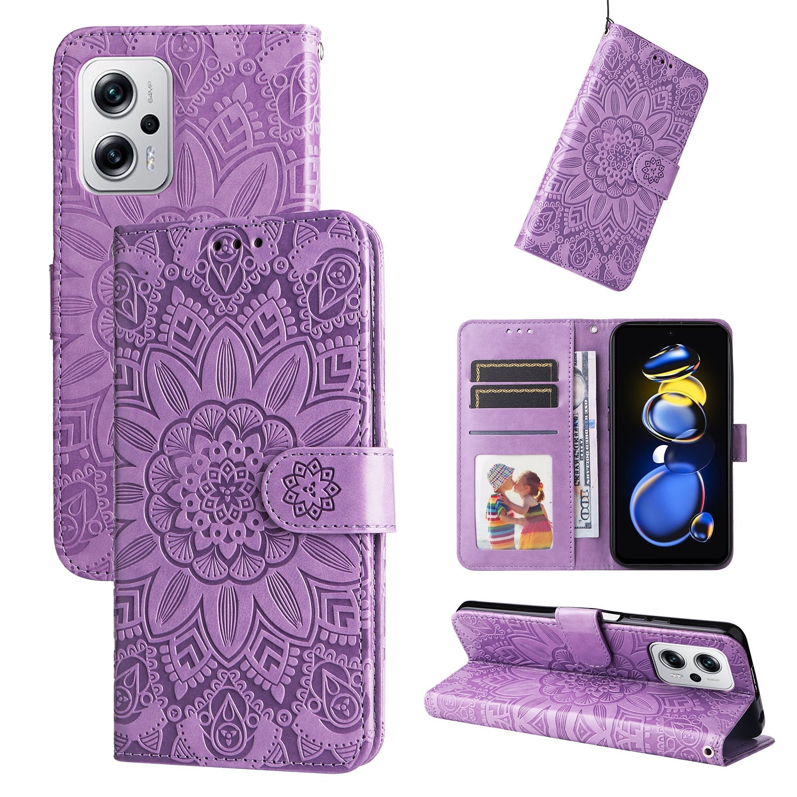Xiaomi Redmi Note 11T Pro Sunflower Embossed Leather Wallet Phone Case with Kickstand and Card Holder
