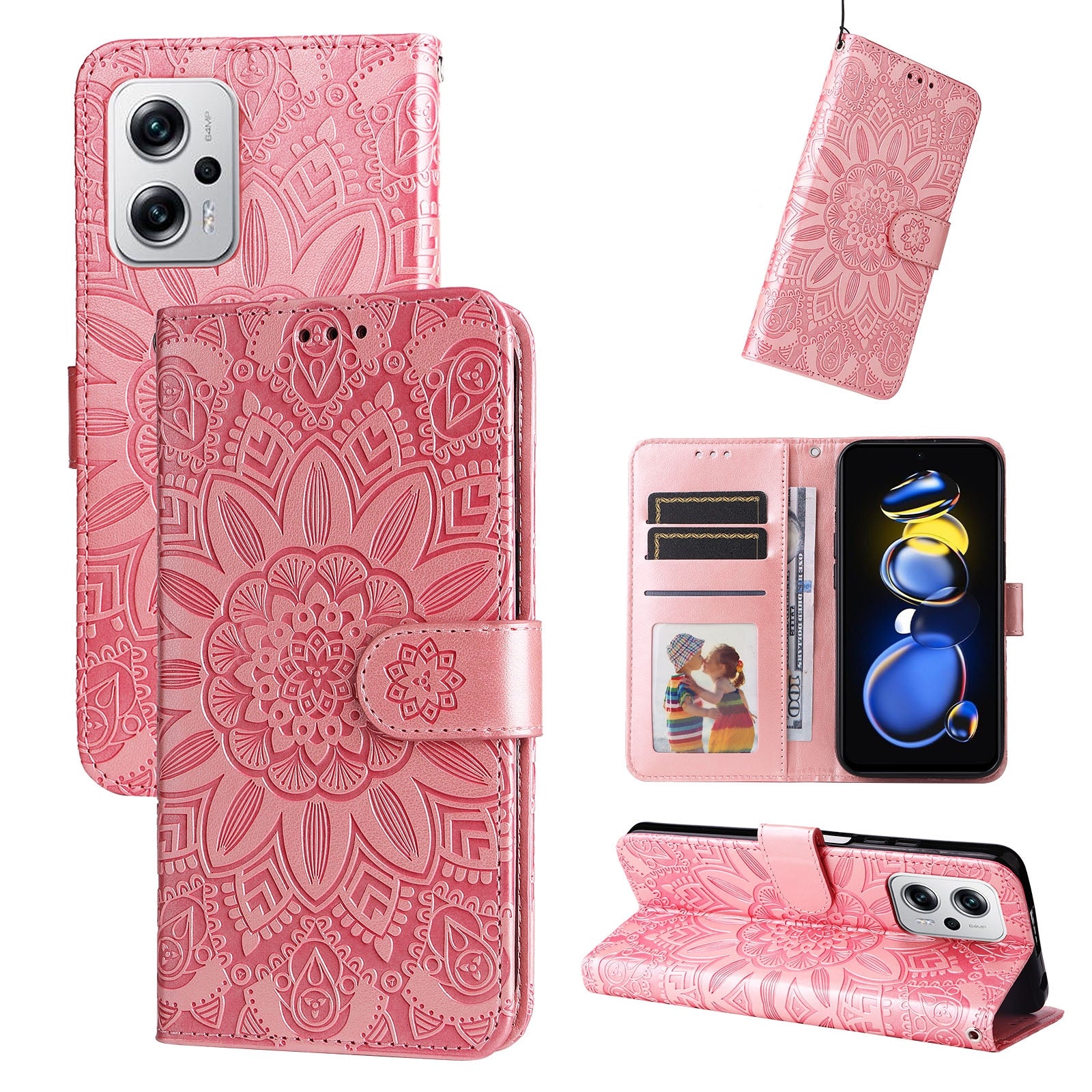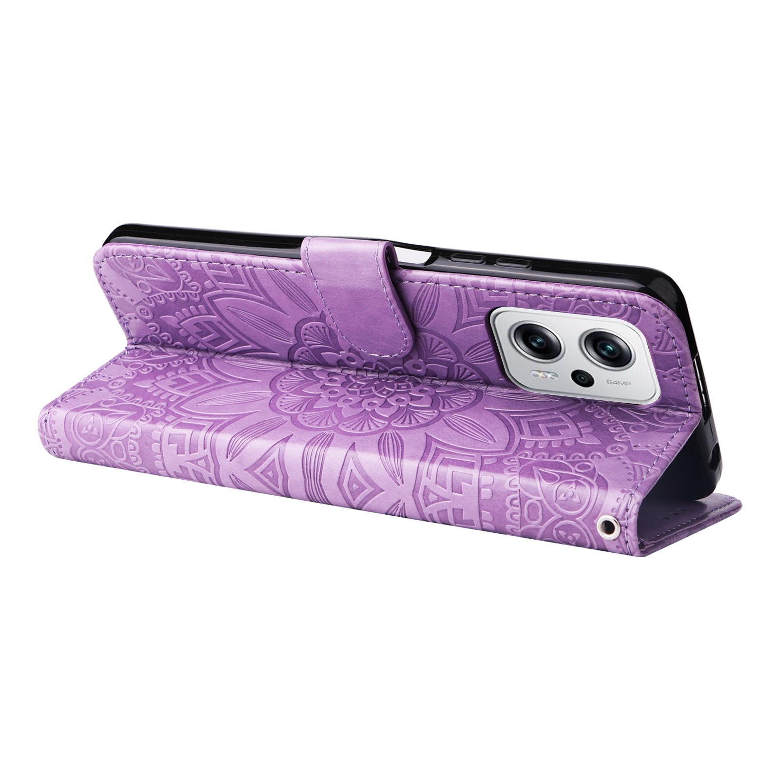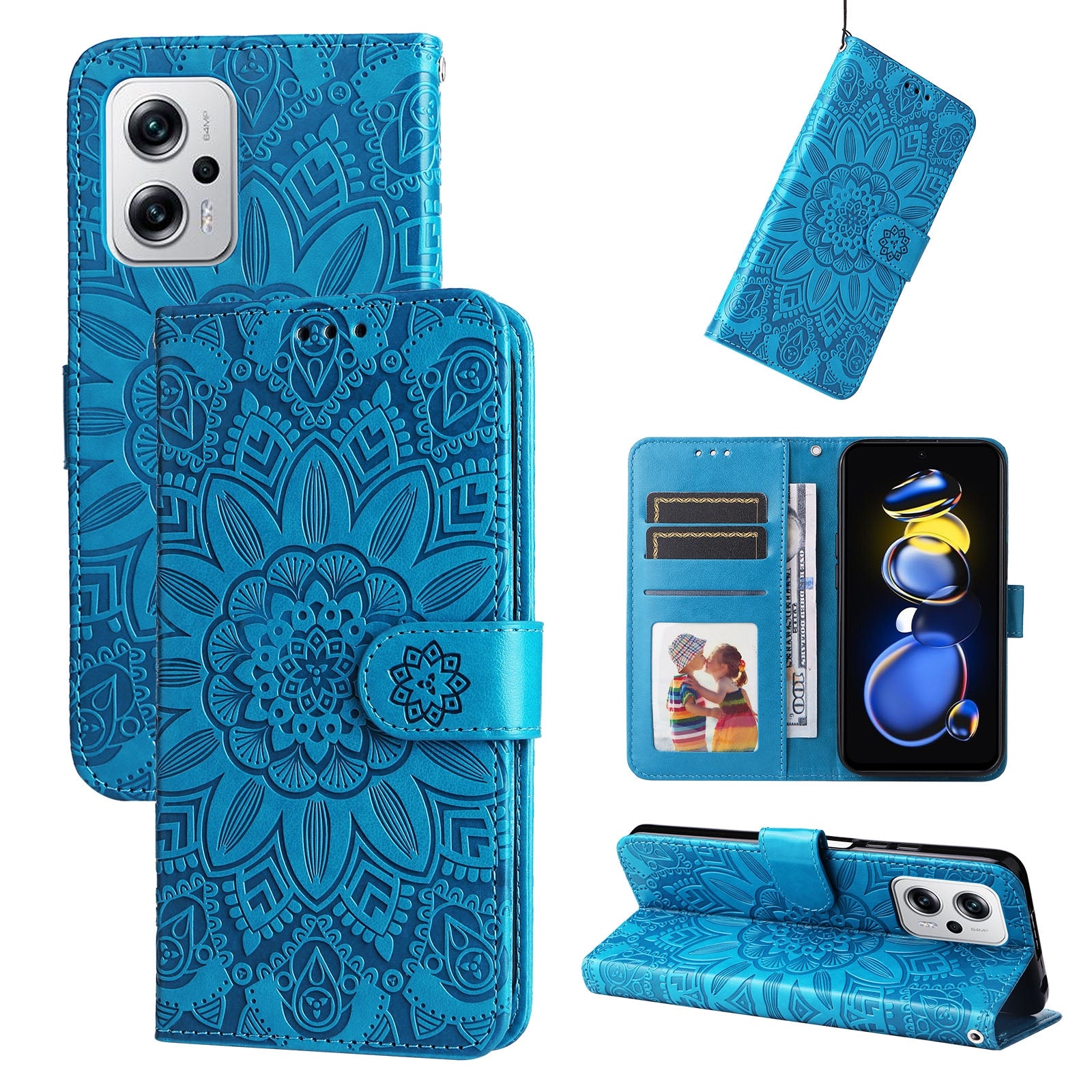 Xiaomi Redmi Note 11T Pro Sunflower Embossed Leather Wallet Phone Case with Kickstand and Card Holder