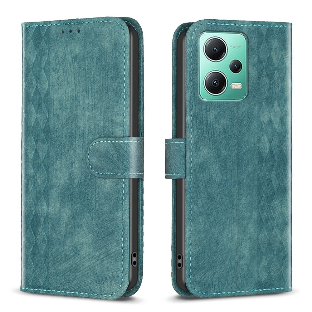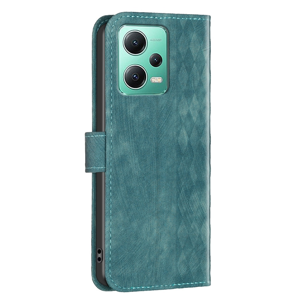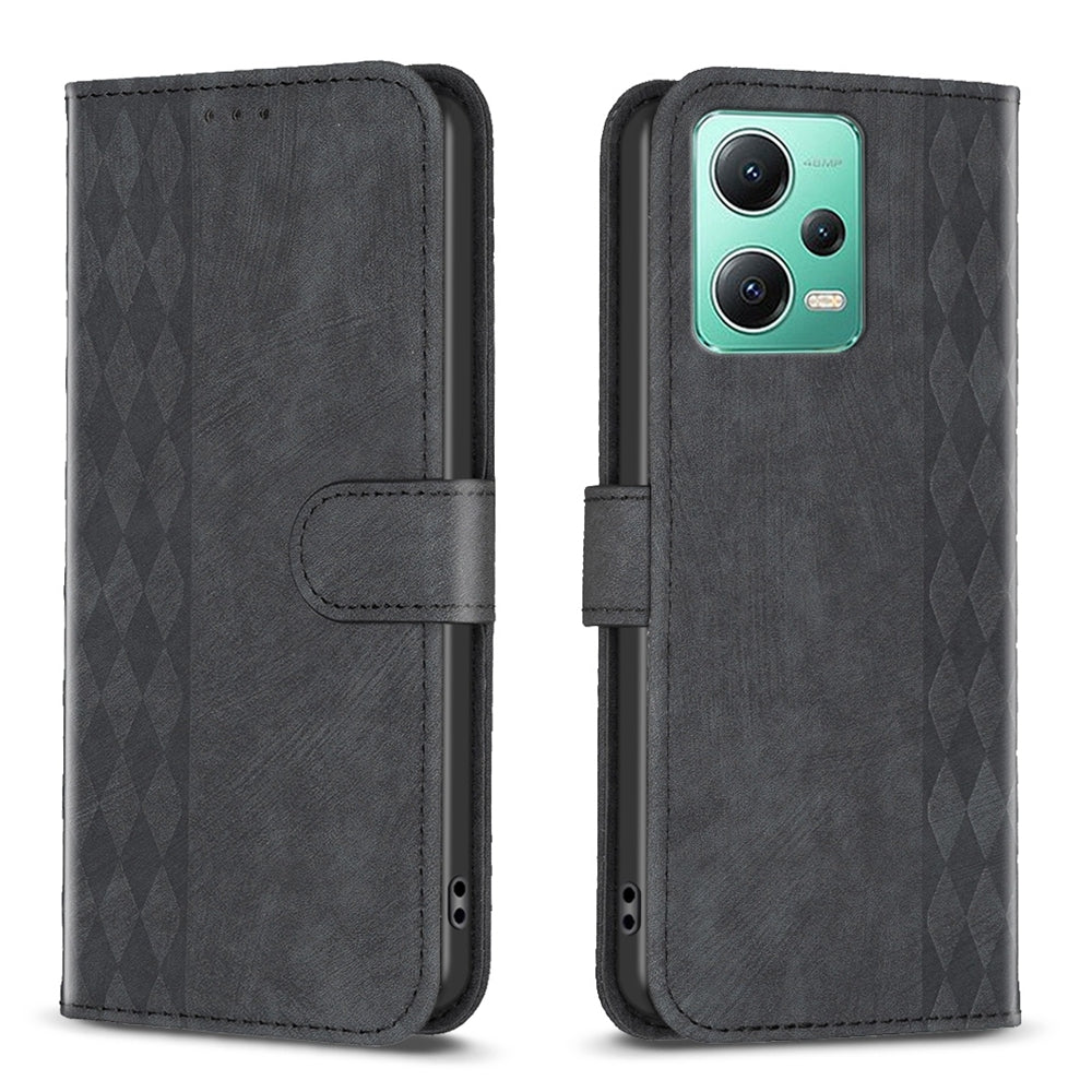 Xiaomi Redmi Note 12 5G Global Case - Embossed Plaid Leather Wallet Cover with Card Slots, Kickstand, and 360 degree Protection