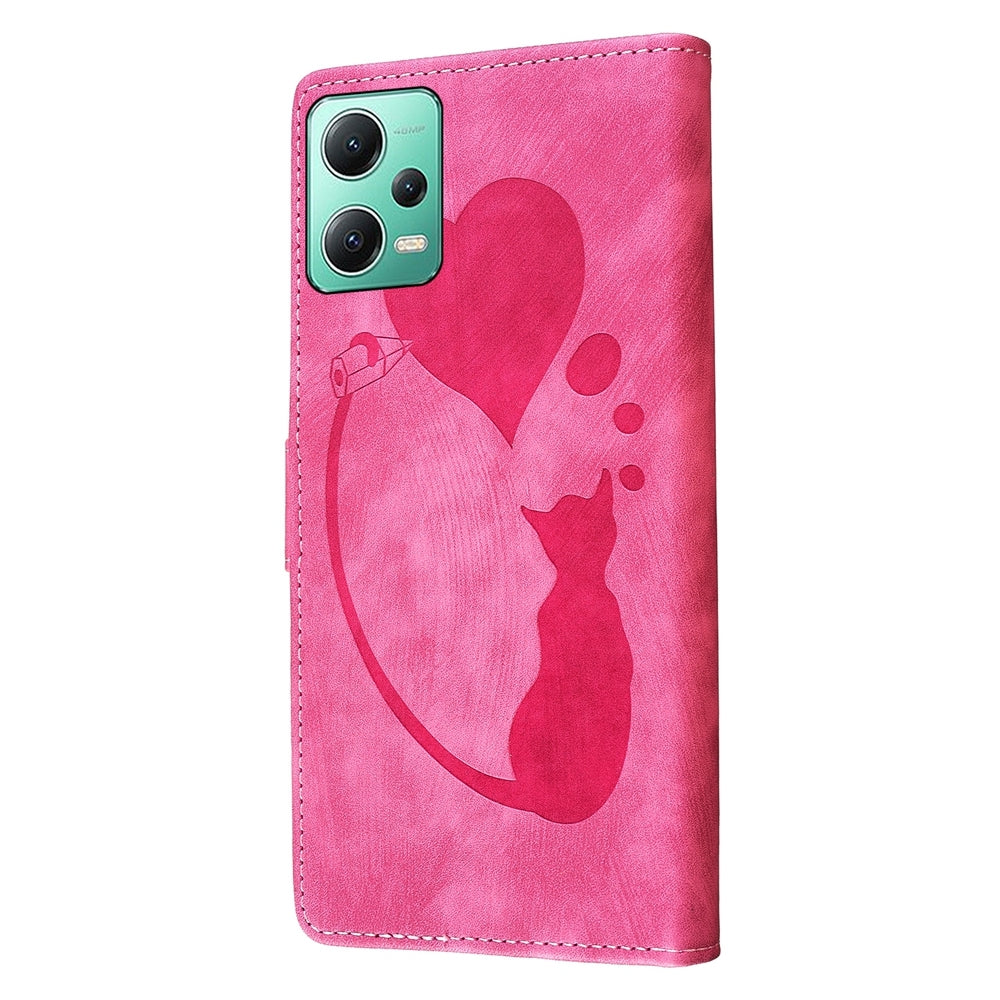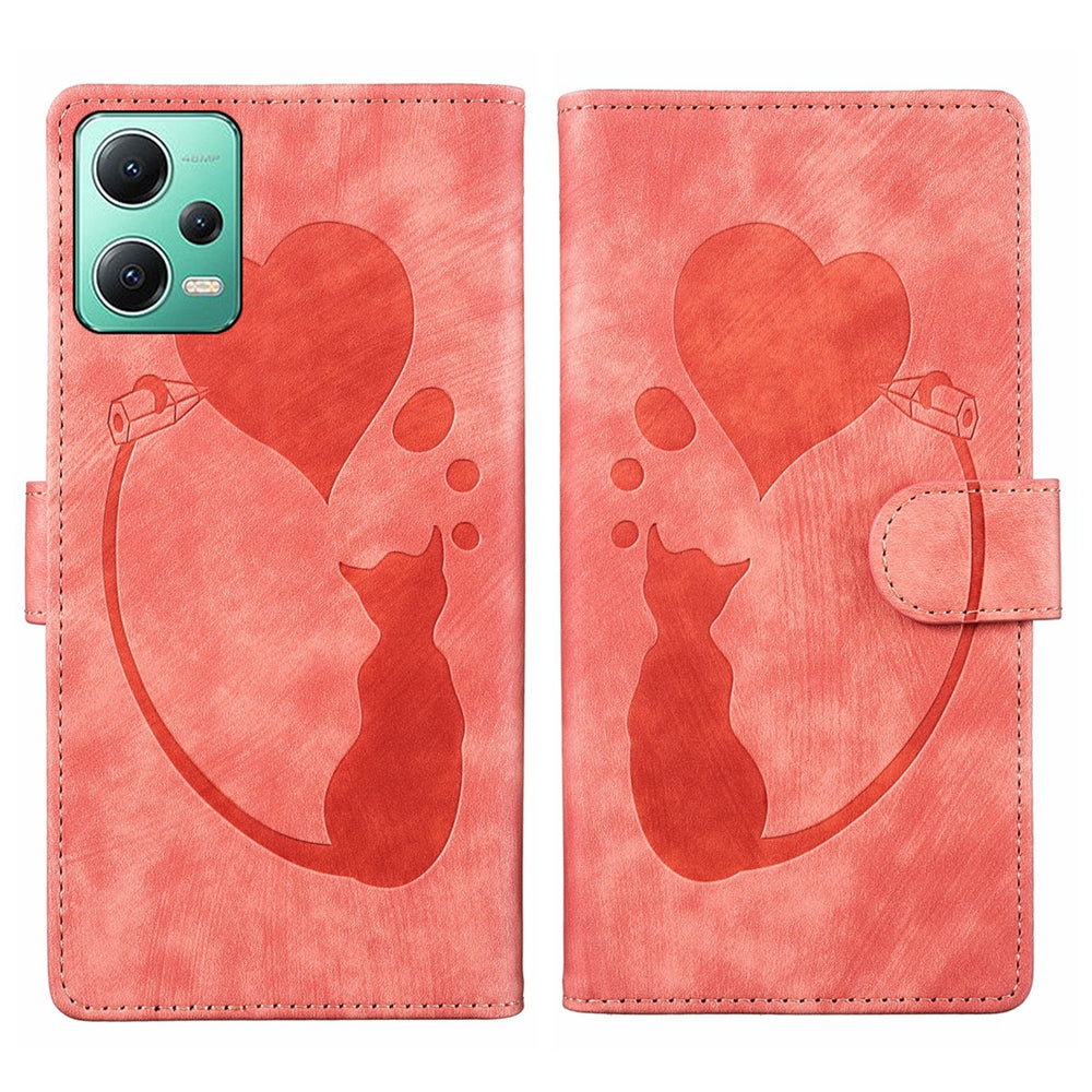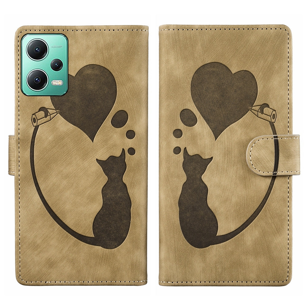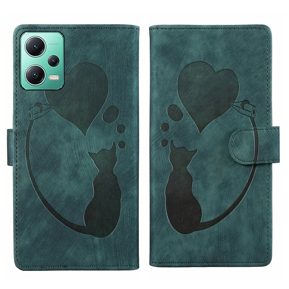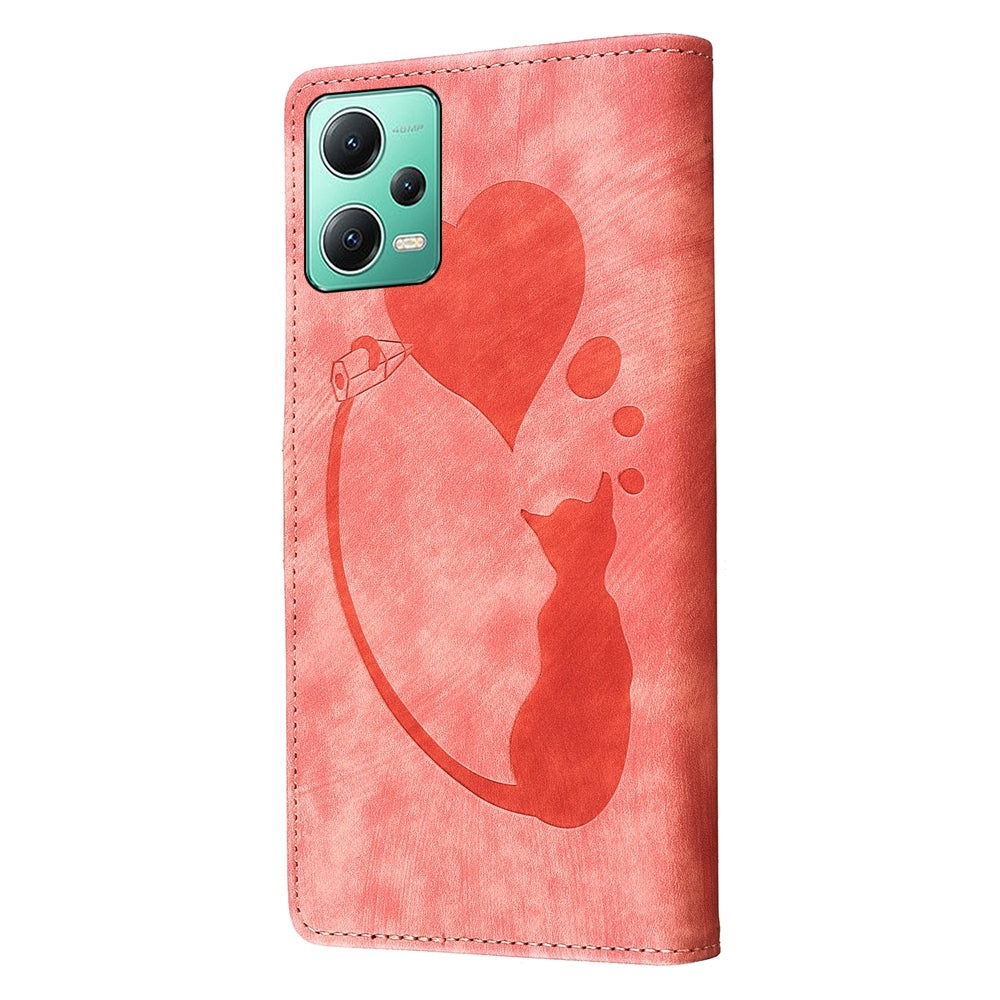 Xiaomi Redmi Note 12 5G Global Heart & Cat Embossed Multi-Functional Pen Leather Wallet Phone Case with Stand and Card Slots