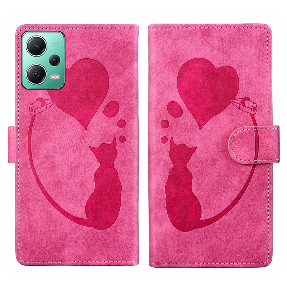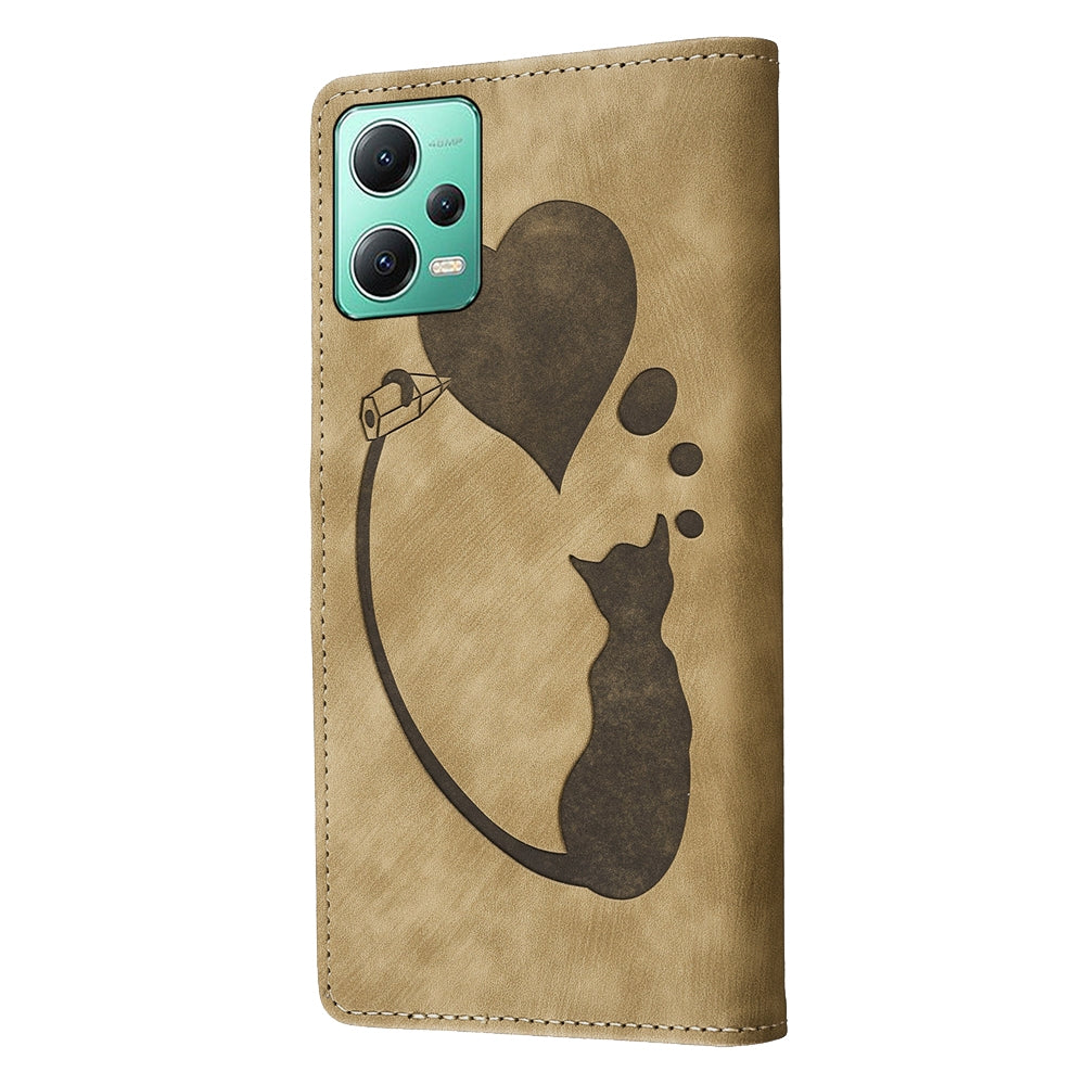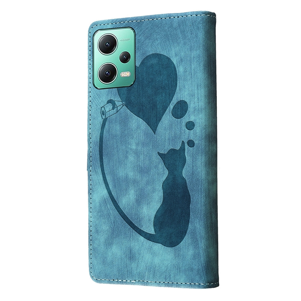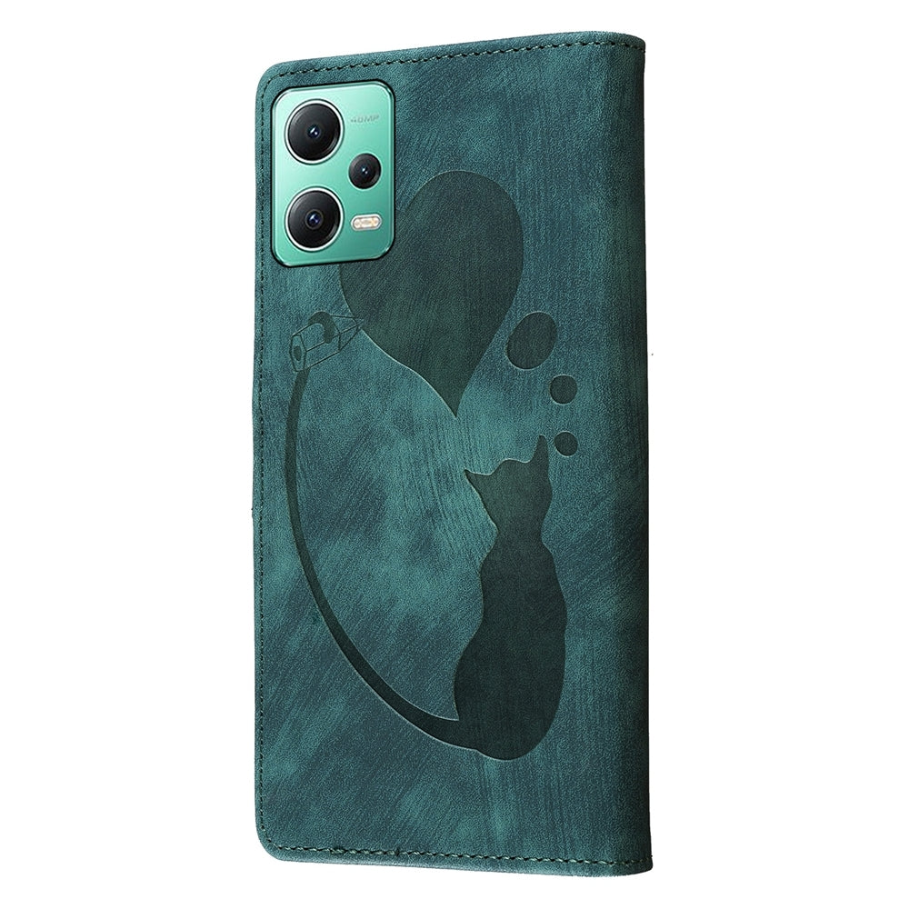 Xiaomi Redmi Note 12 5G Global Heart & Cat Embossed Multi-Functional Pen Leather Wallet Phone Case with Stand and Card Slots
