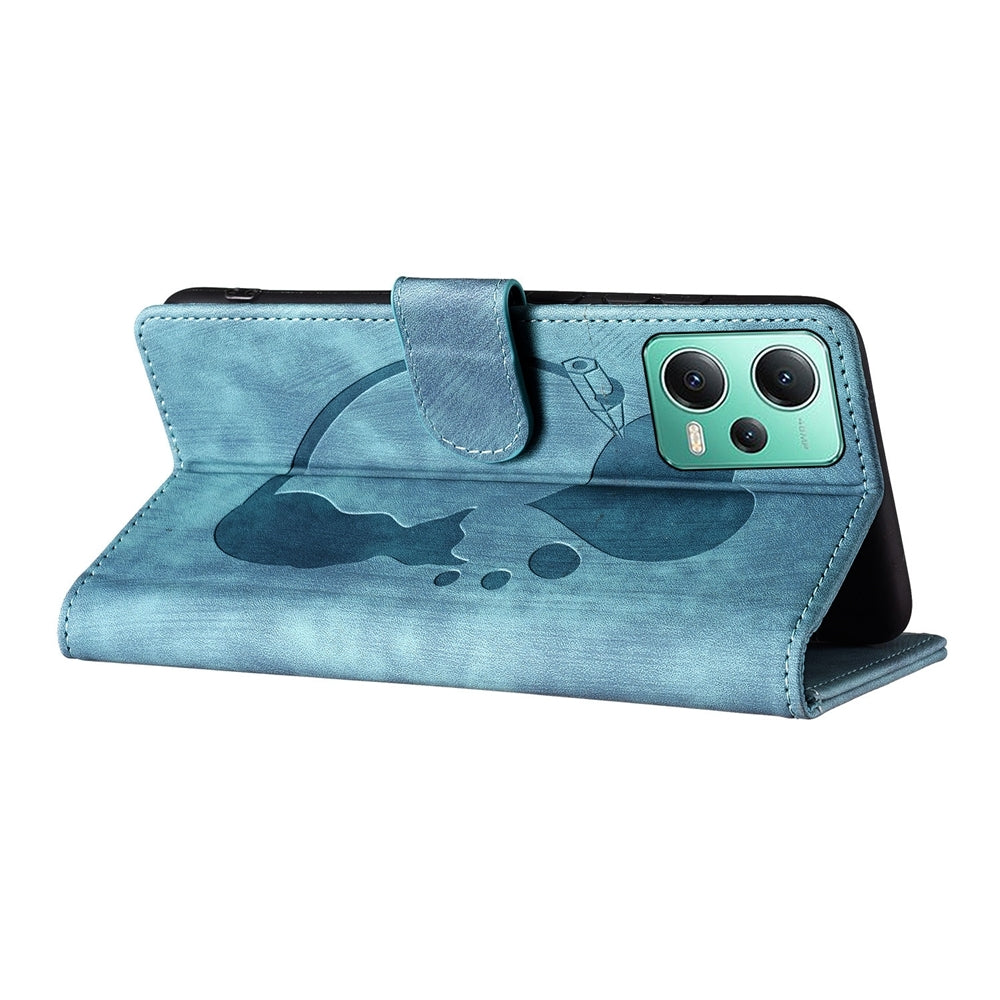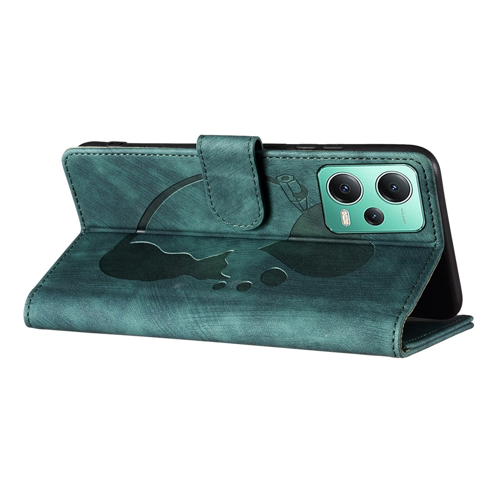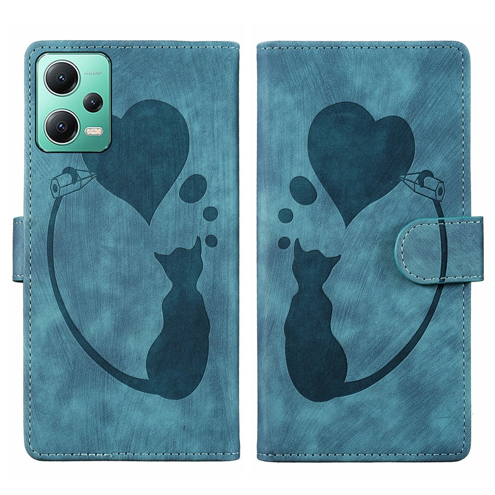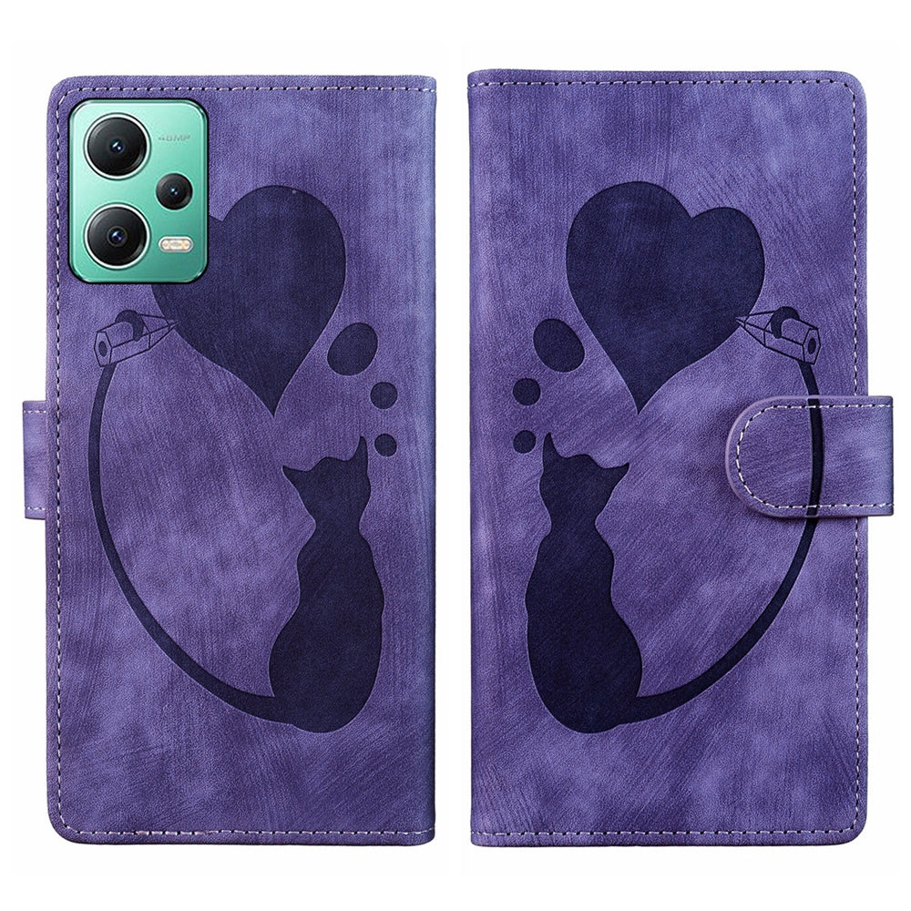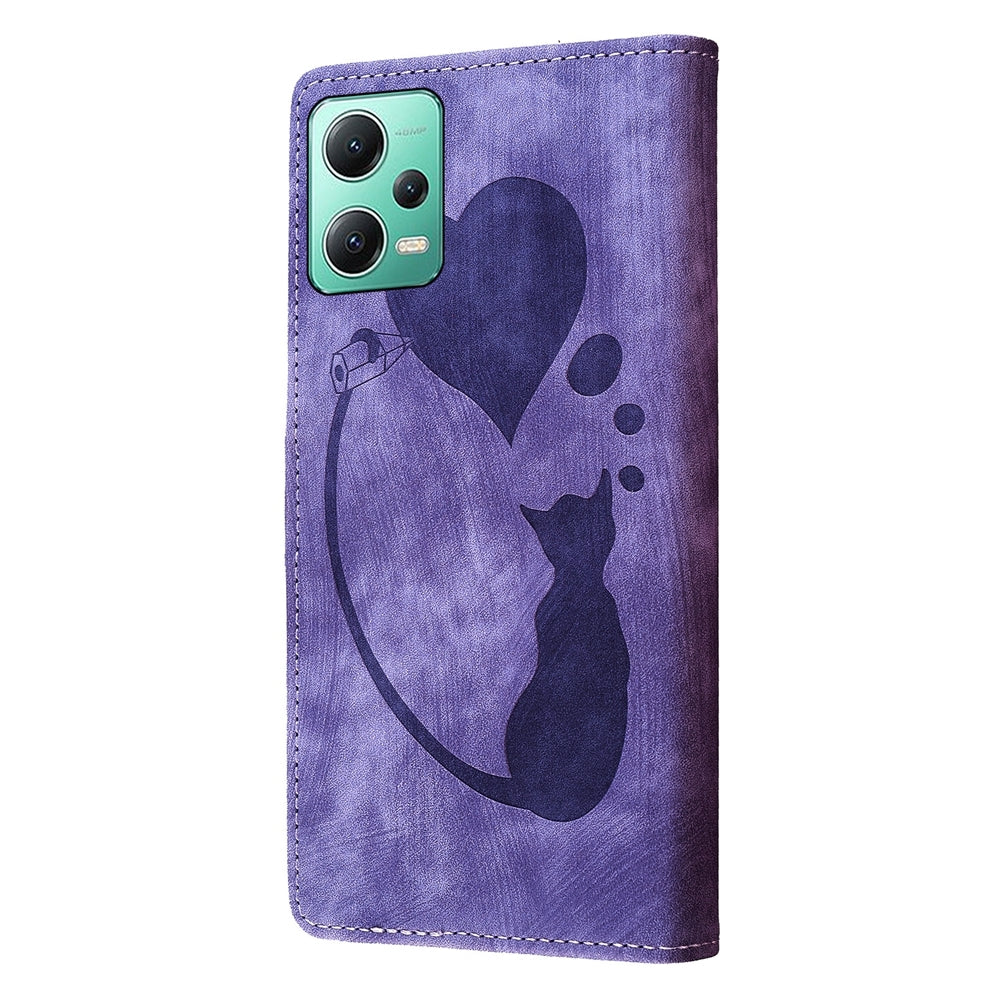 Xiaomi Redmi Note 12 5G Global Heart & Cat Embossed Multi-Functional Pen Leather Wallet Phone Case with Stand and Card Slots