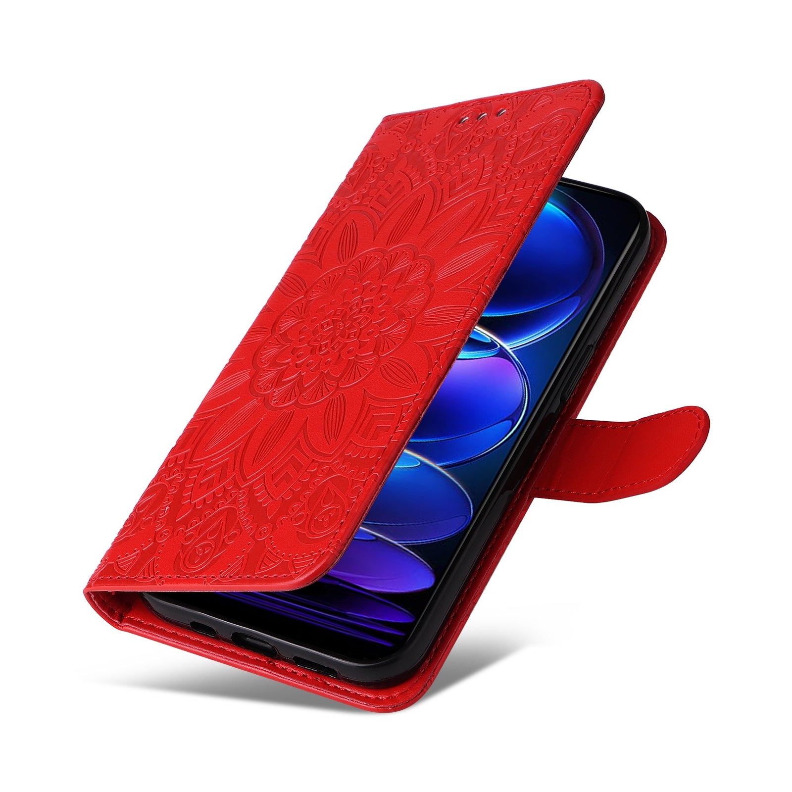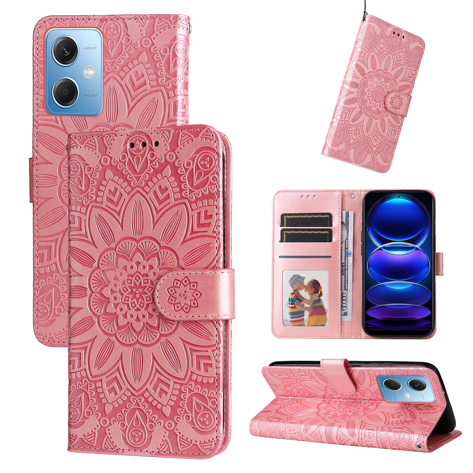 Xiaomi Redmi Note 12 China Sunflower Embossed Leather Wallet Phone Case with Kickstand and Card Holder