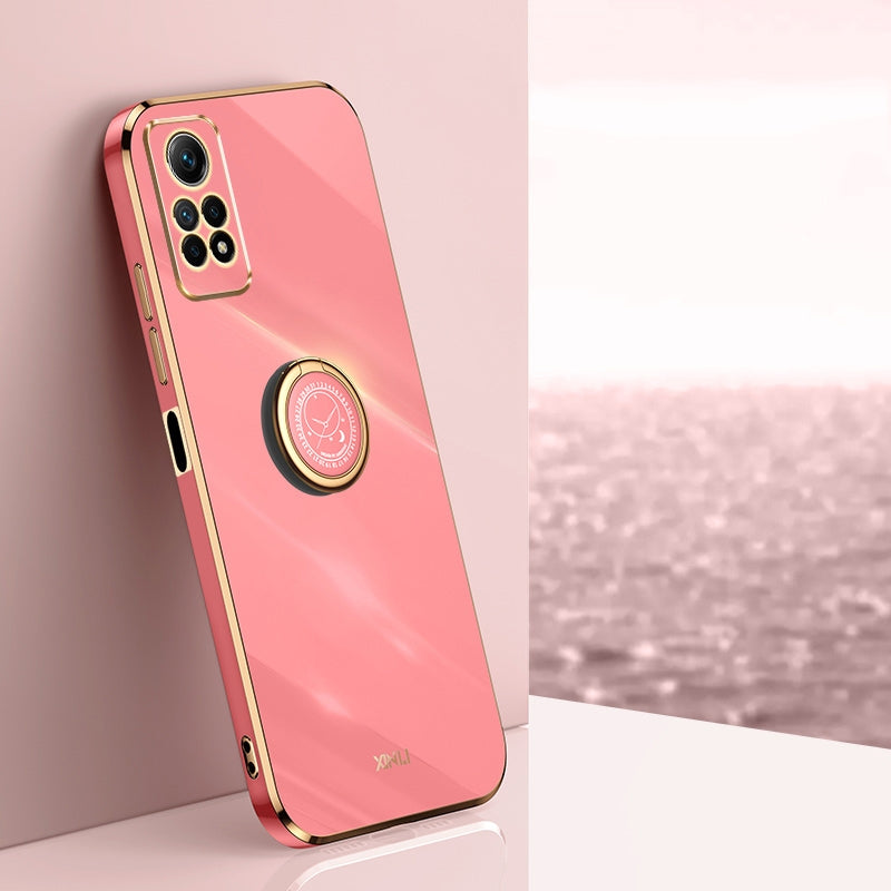 Xiaomi Redmi Note 12 Pro 4G Tough TPU Phone Case with 6D Electroplate, Straight Edge Design, and Comfortable Ring Holder