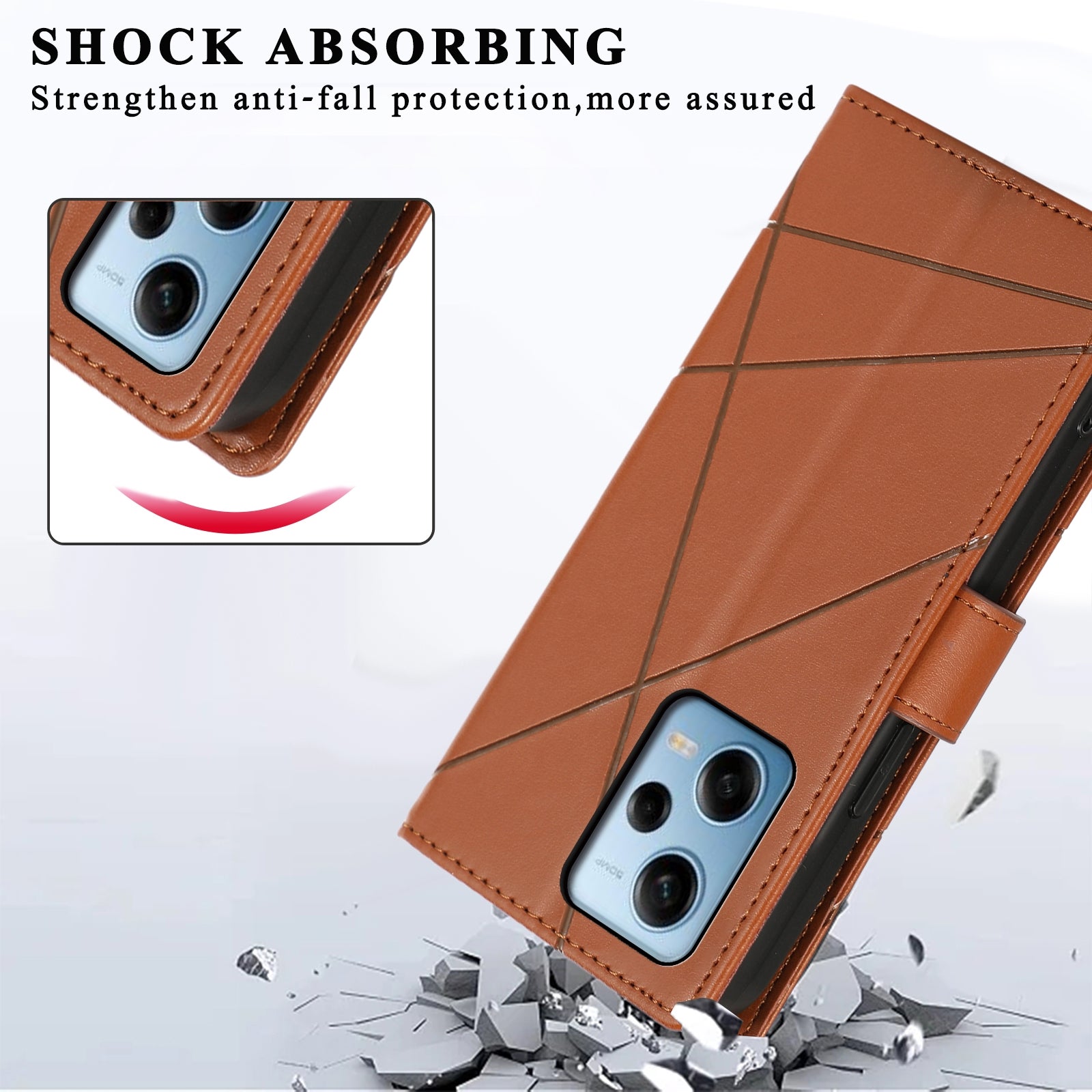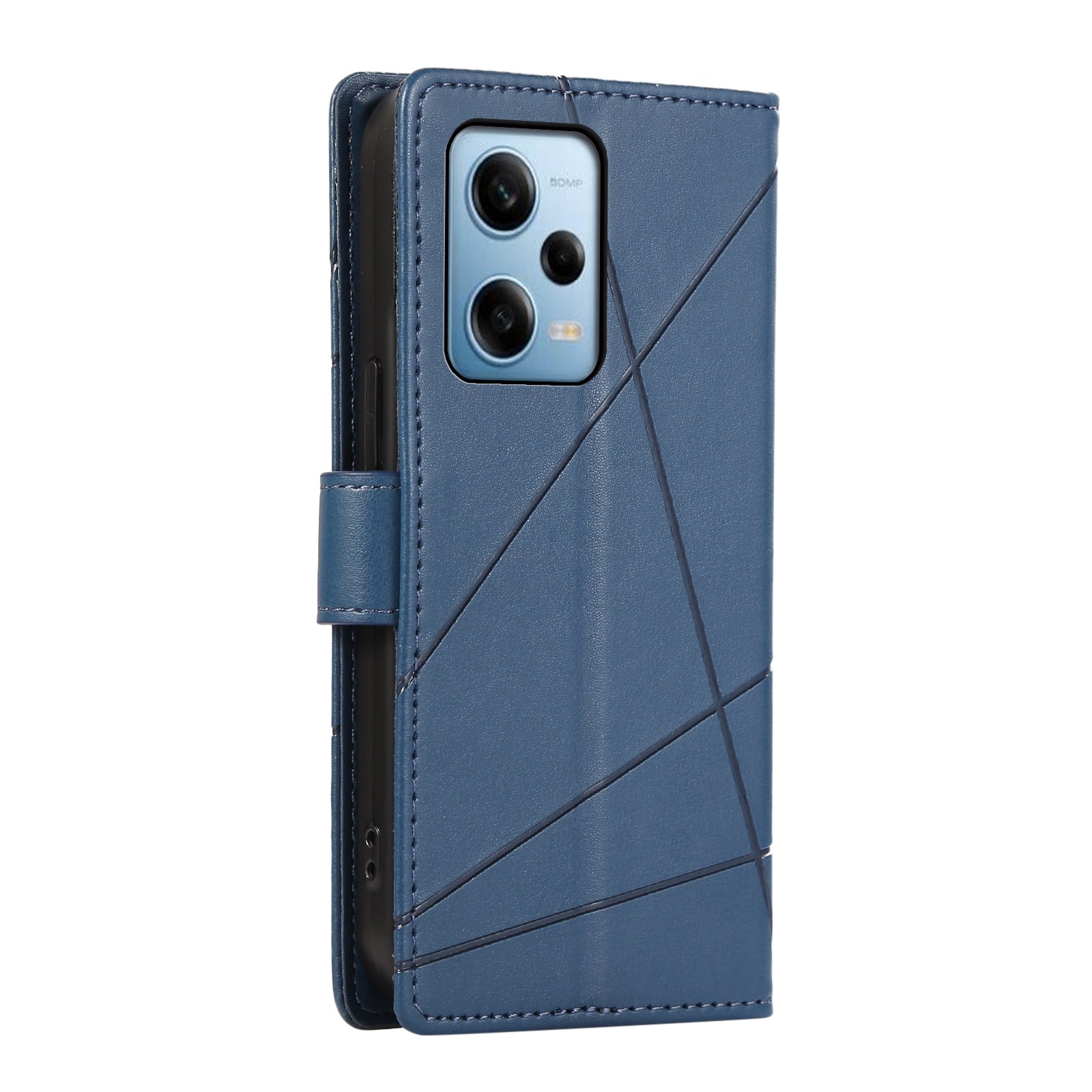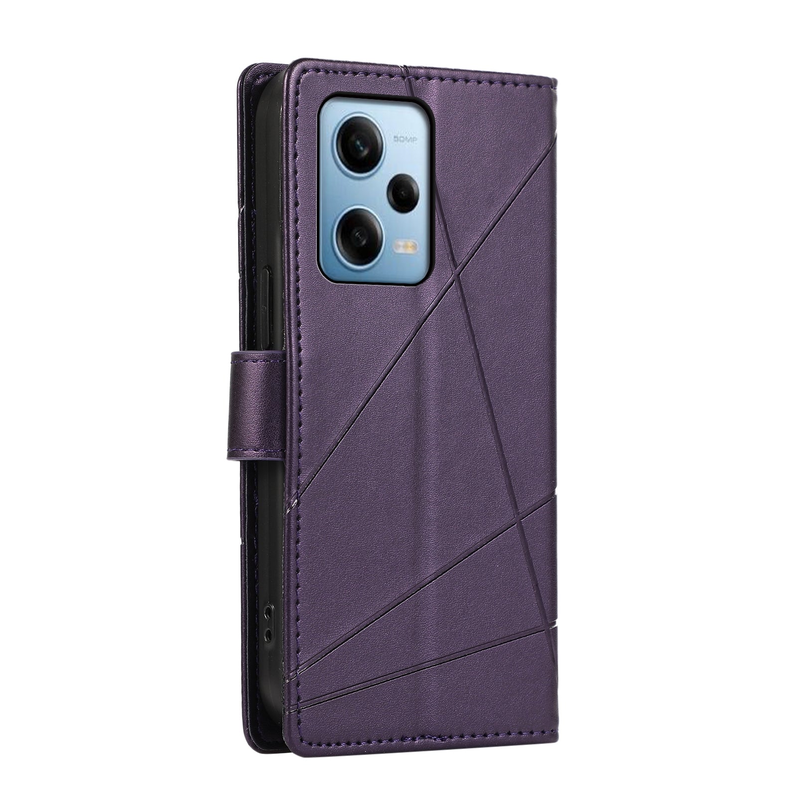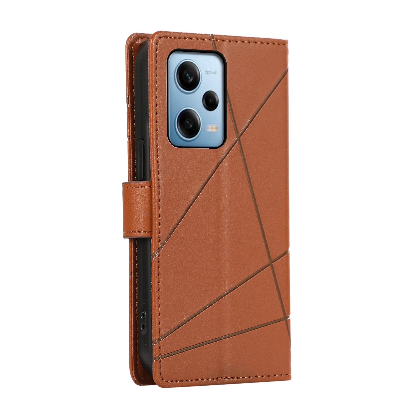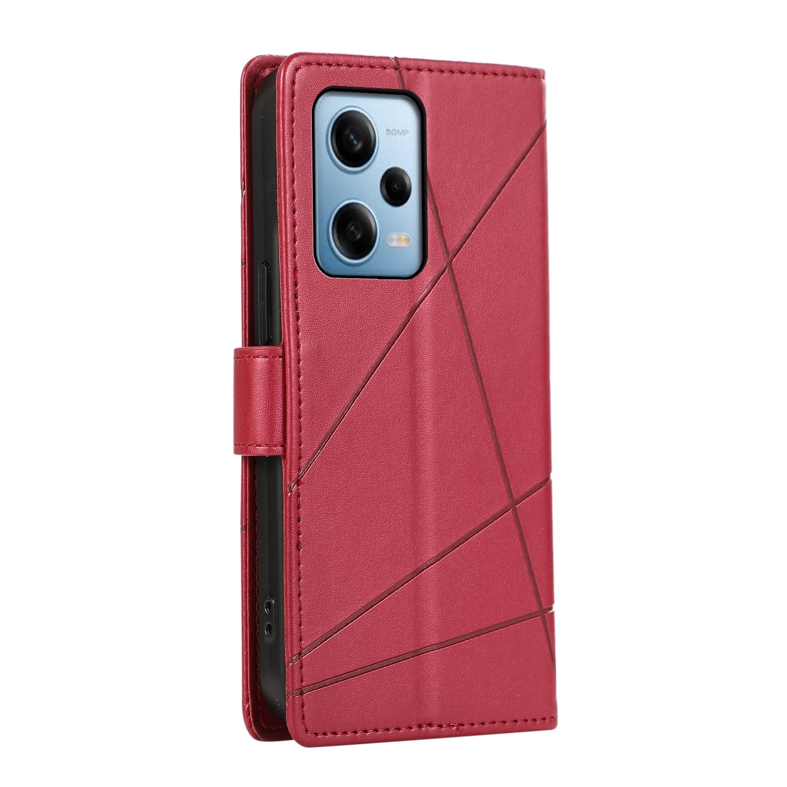 Xiaomi Redmi Note 12 Pro 5g Genuine Leather Texture Embossed Line Phone Case with Card Wallet & Kickstand