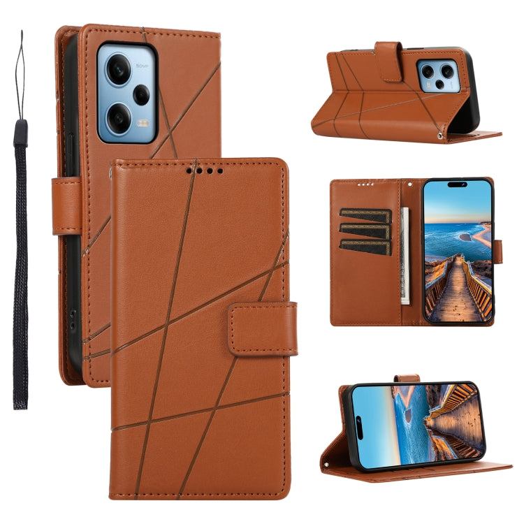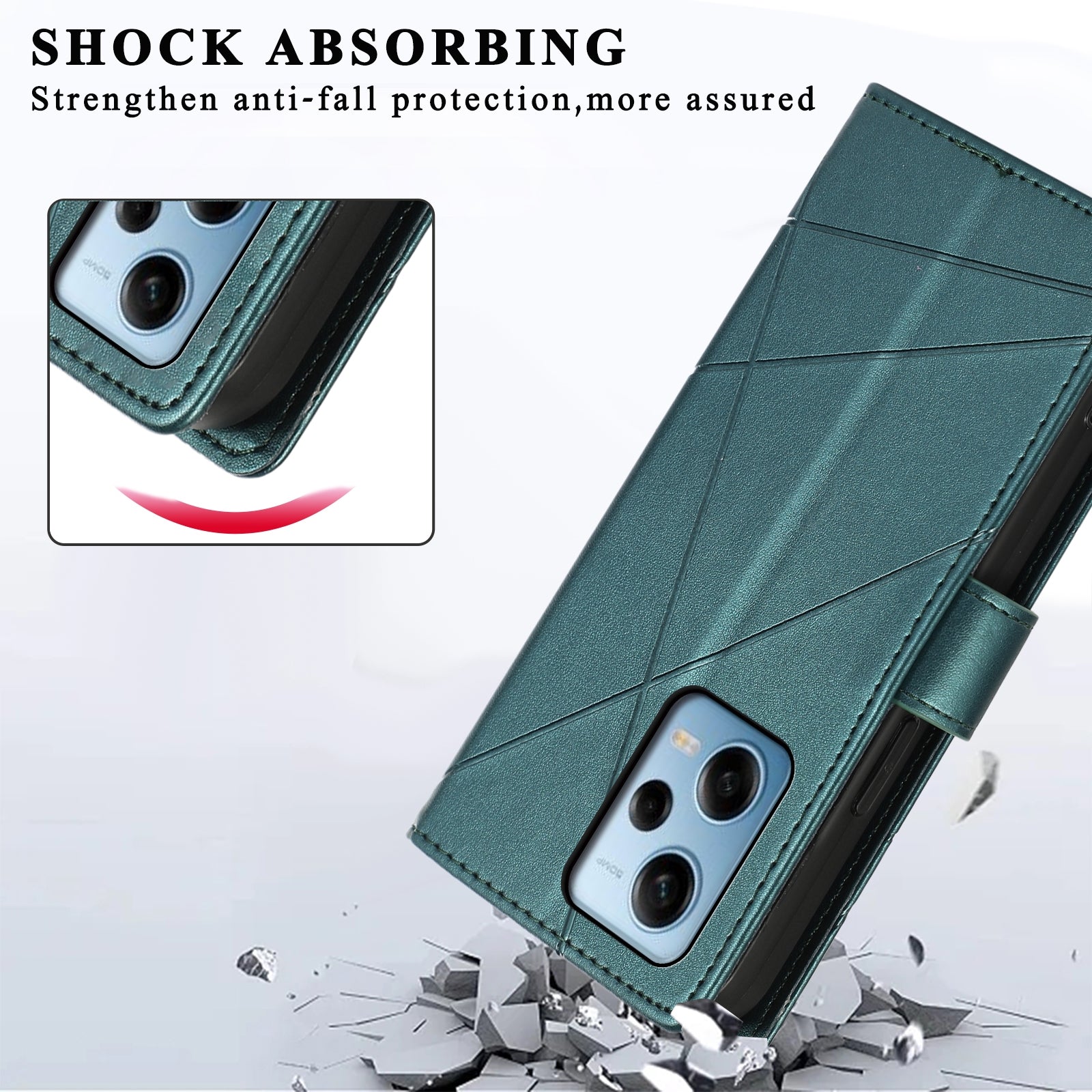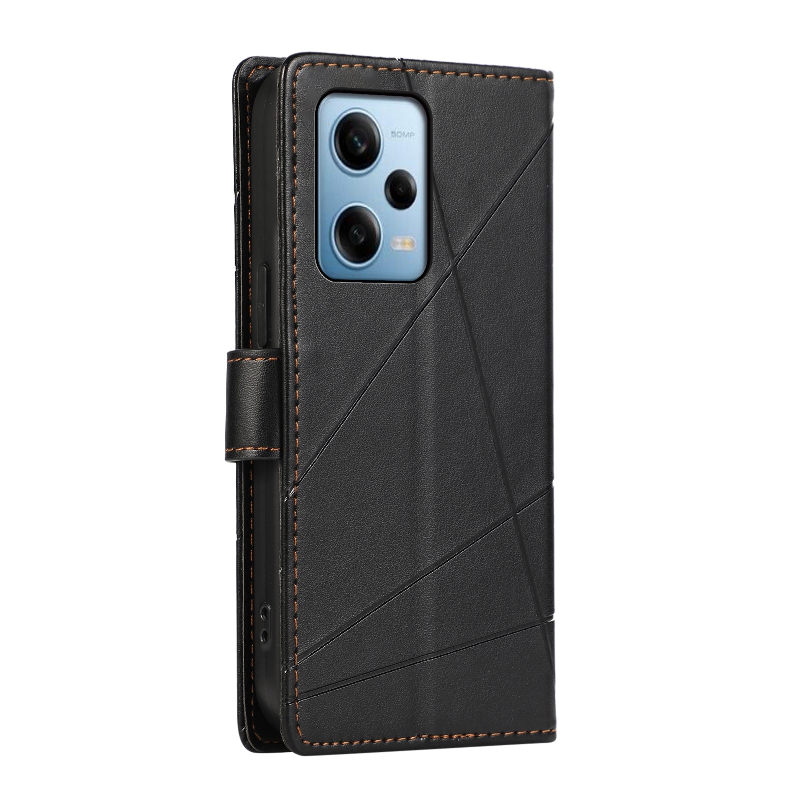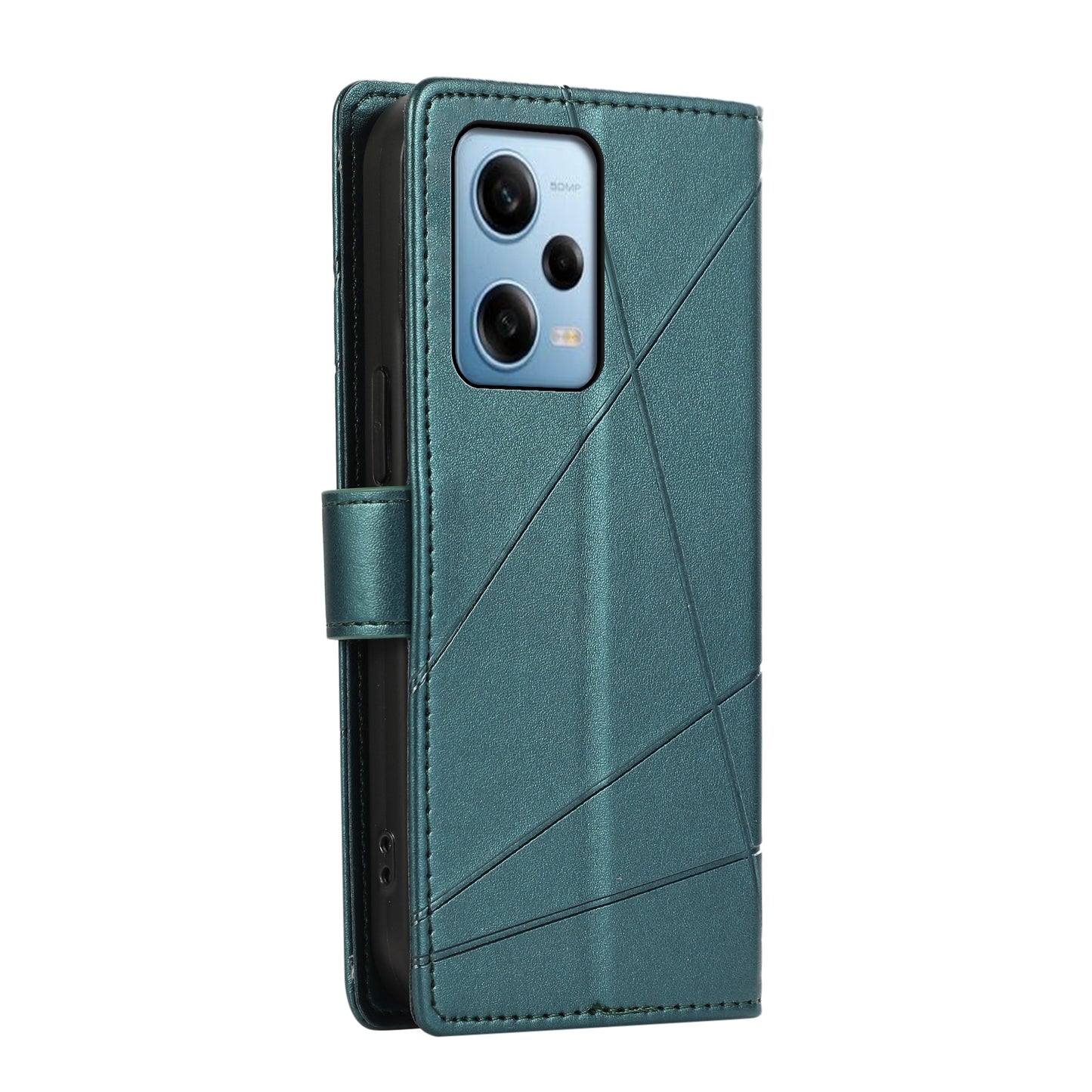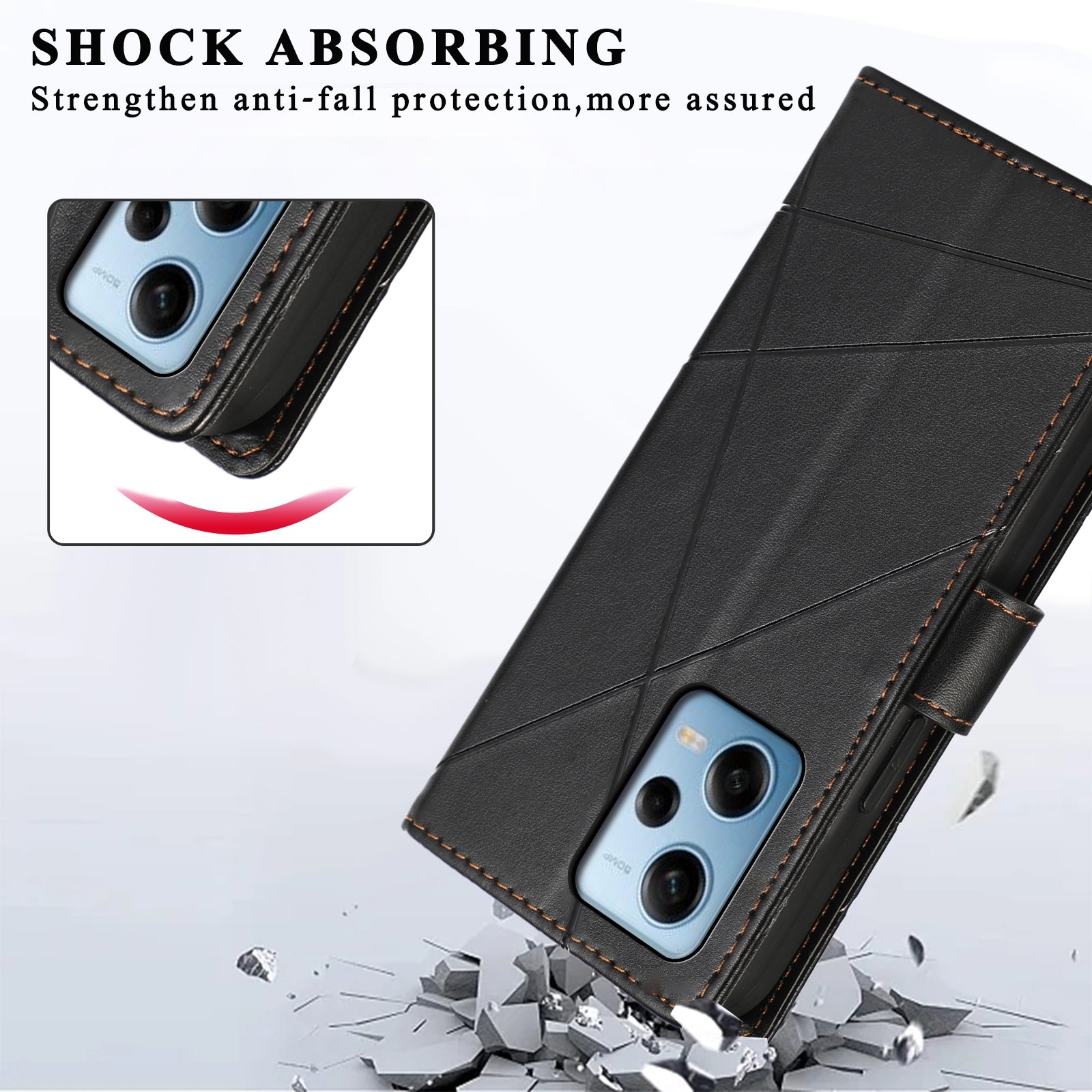 Xiaomi Redmi Note 12 Pro 5g Genuine Leather Texture Embossed Line Phone Case with Card Wallet & Kickstand
