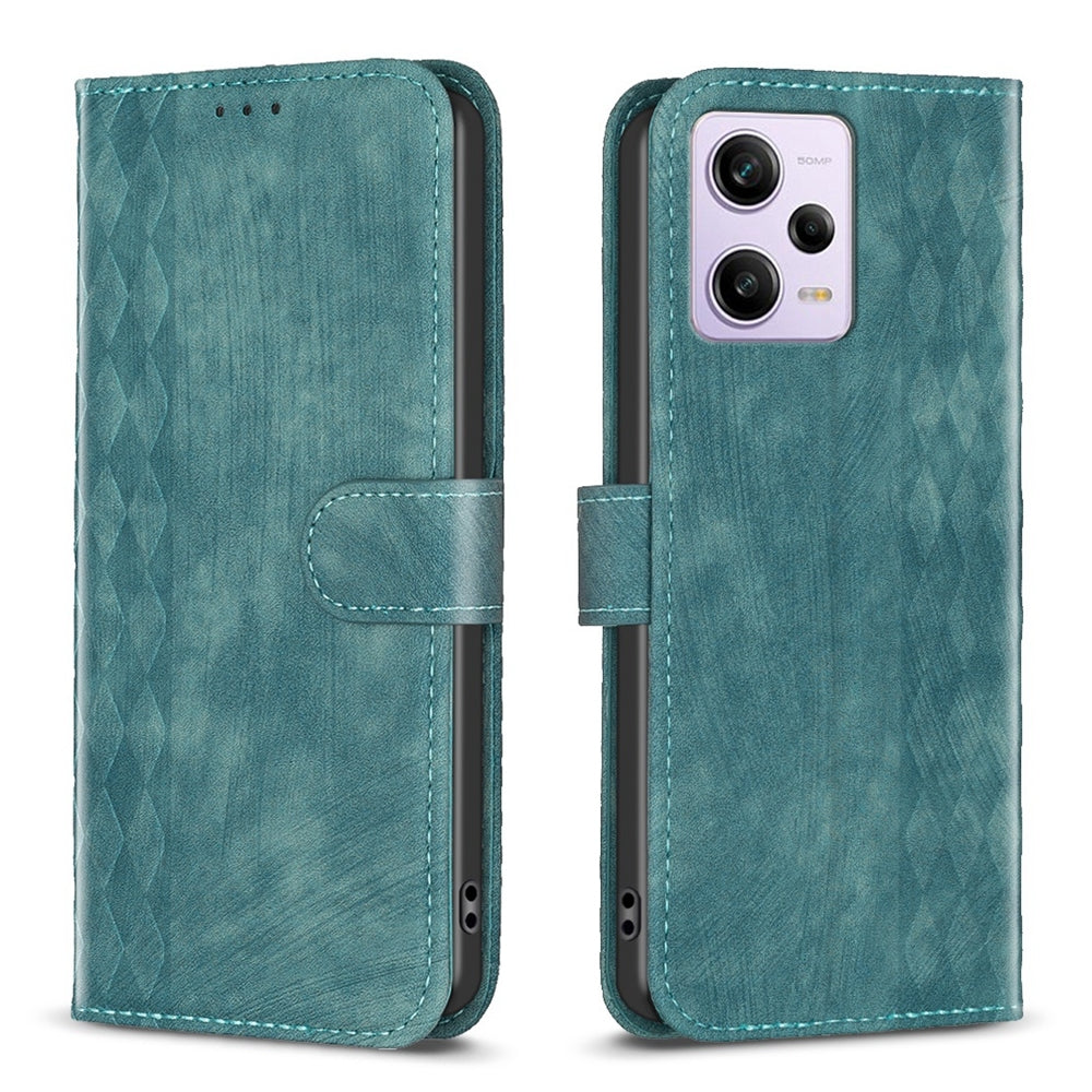 Xiaomi Redmi Note 12 Pro Global Case - Embossed Plaid Leather Wallet Cover with Card Slots, Kickstand, and 360 degree Protection