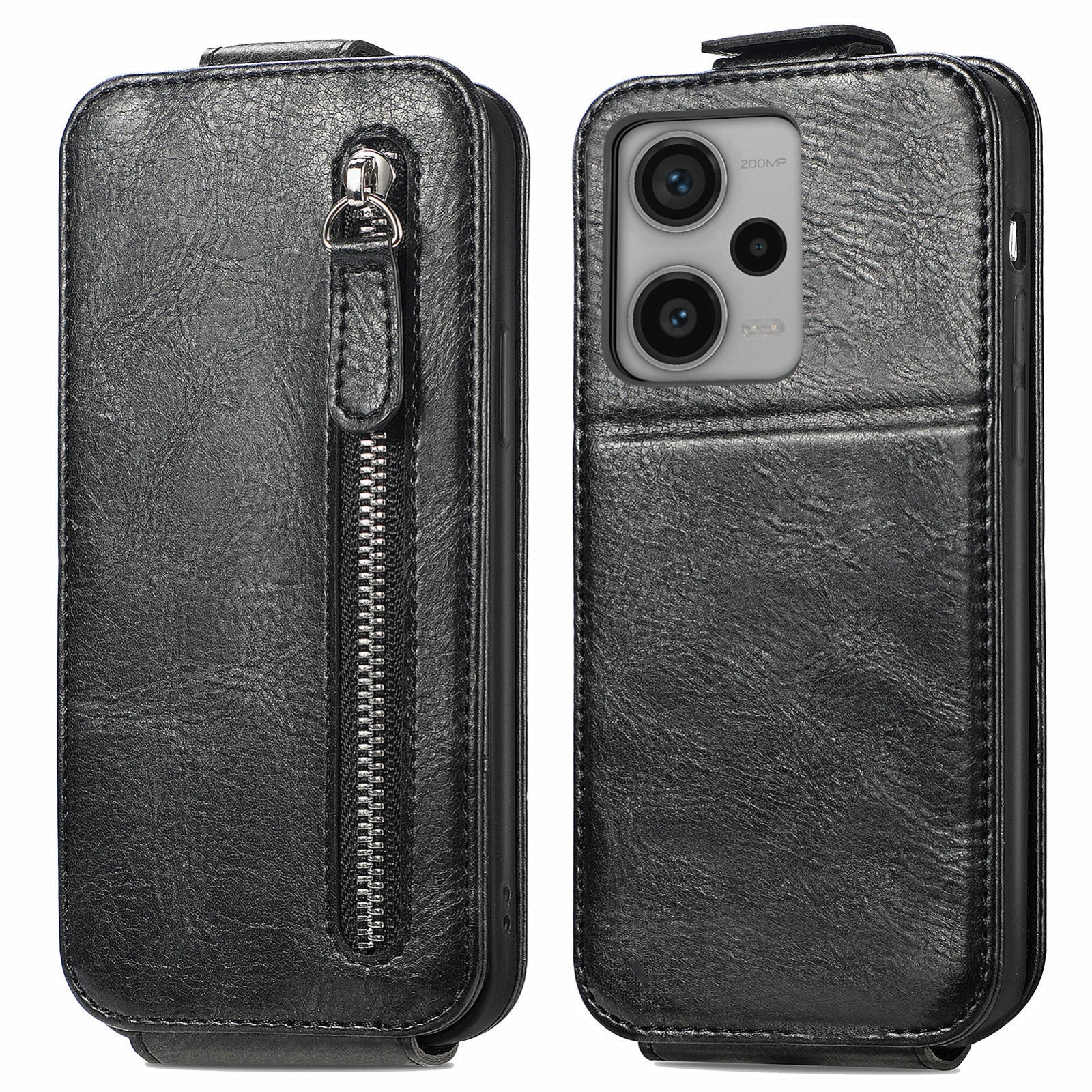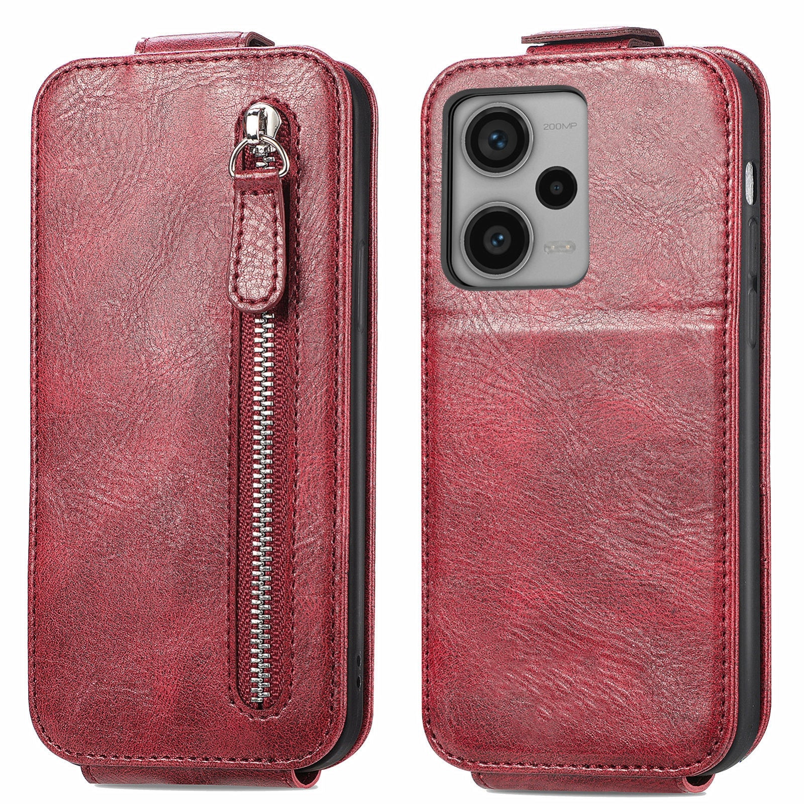 Xiaomi Redmi Note 12 Pro+ Zipper Wallet Case - Vertical Flip Leather Phone Cover with Multiple Card Slots and Stand