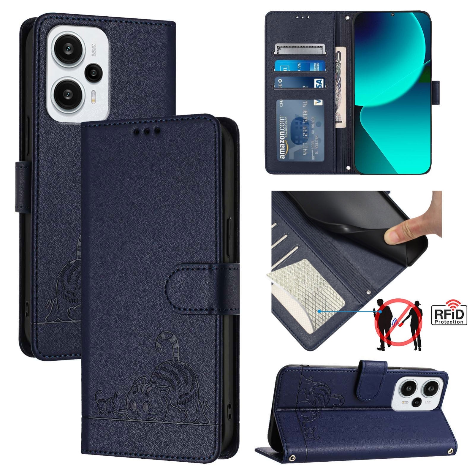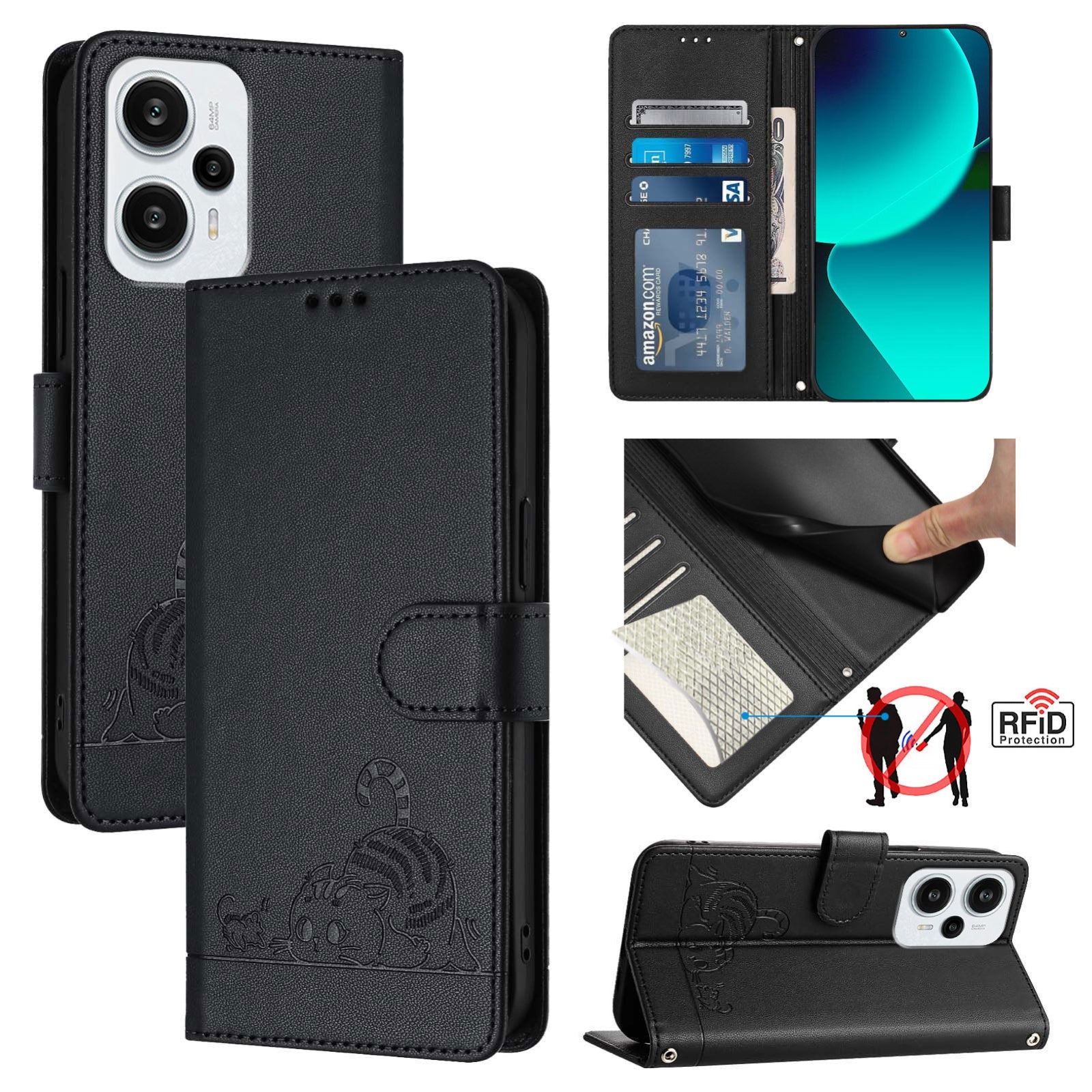 Explore the perfect blend of style and functionality with our Xiaomi Redmi Note 12 Turbo 5G Leather Phone Case. Featuring a charming cat and rat embossed pattern, this case offers multiple benefits: