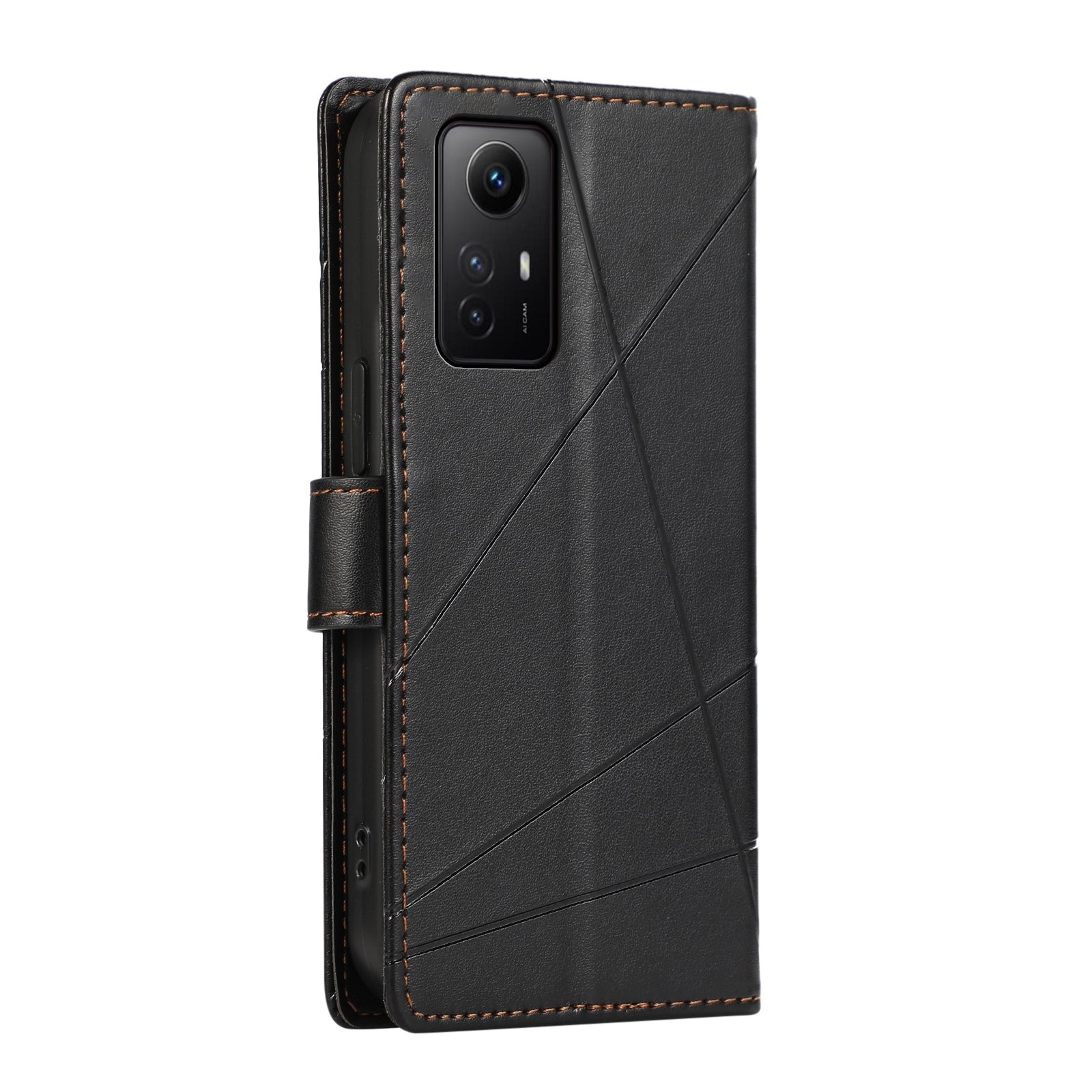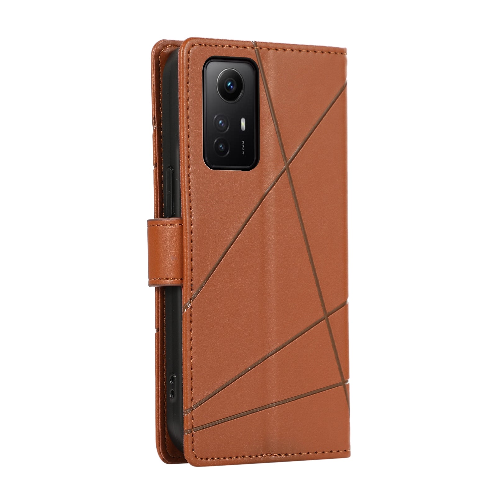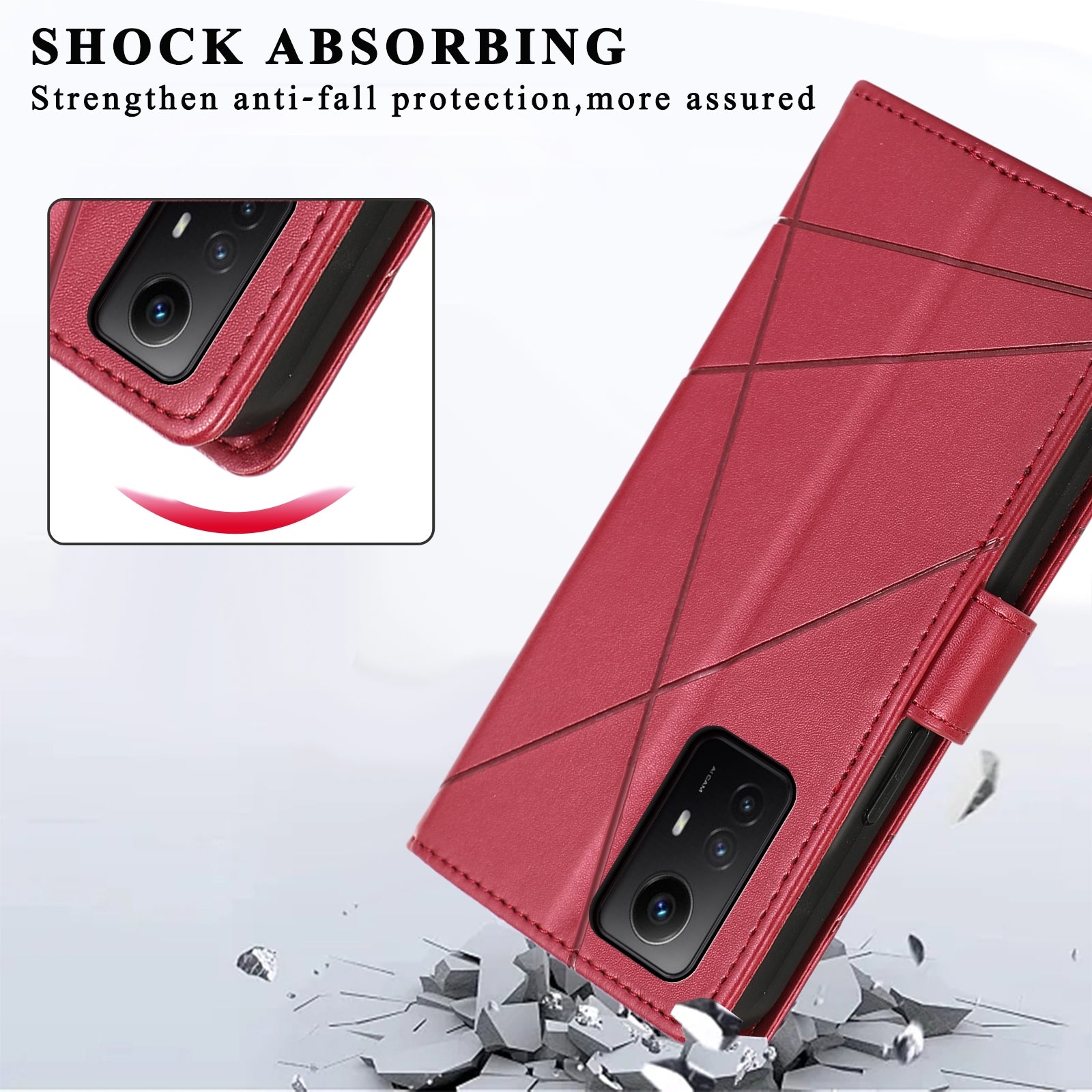 Xiaomi Redmi Note 125 Genuine Leather Texture Embossed Line Phone Case with Card Wallet & Kickstand