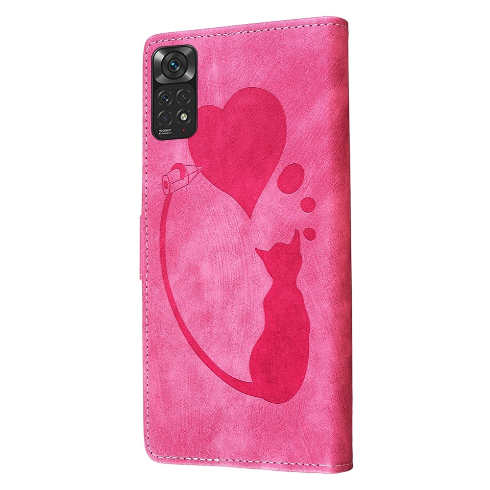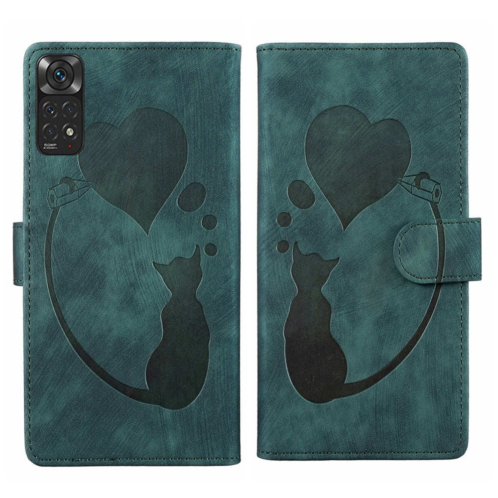 Xiaomi Redmi Note 12S Heart & Cat Embossed Multi-Functional Pen Leather Wallet Phone Case with Stand and Card Slots