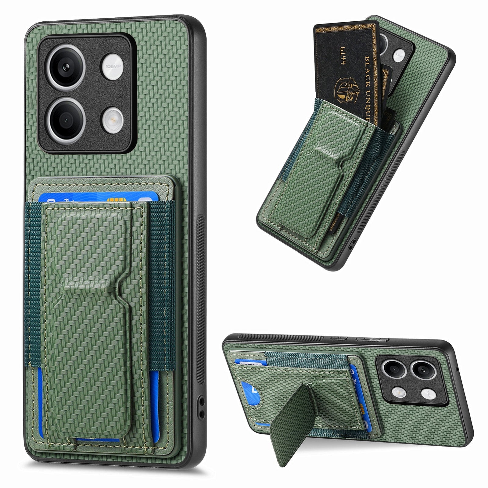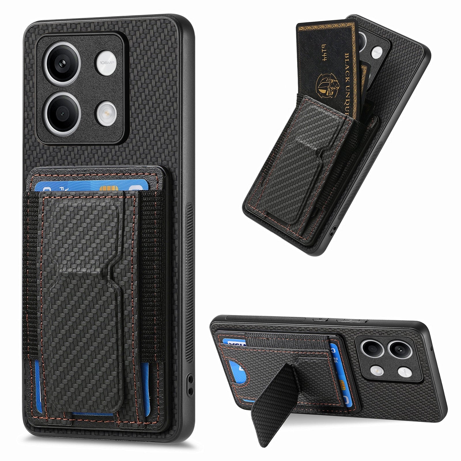 Xiaomi Redmi Note 13 5G Carbon Fiber Fold Stand Elastic Card Bag Phone Case with Multi-Functional Wallet