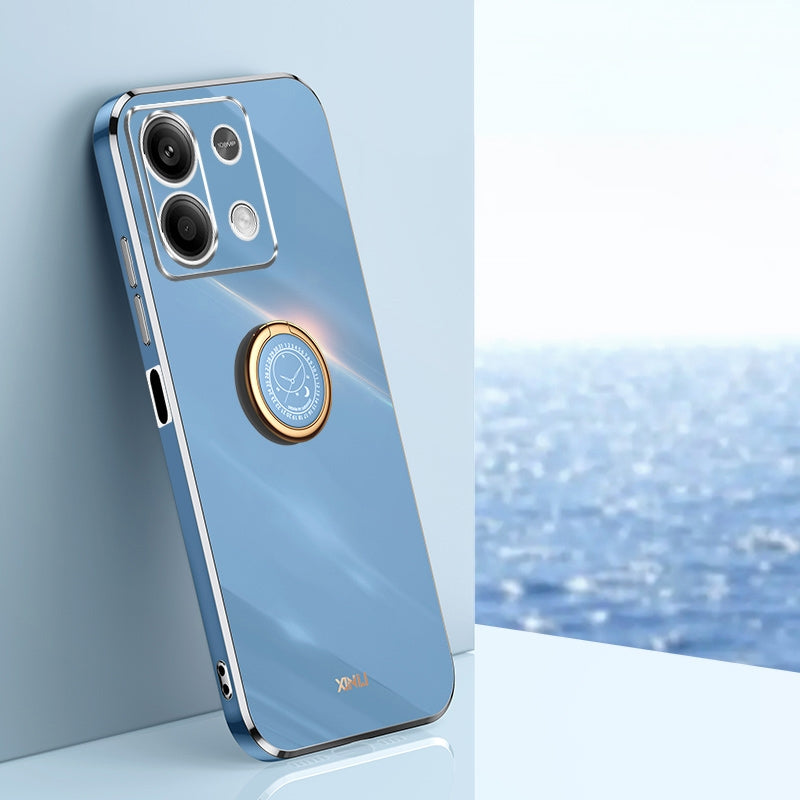 Xiaomi Redmi Note 13 5G Tough TPU Phone Case with 6D Electroplate, Straight Edge Design, and Comfortable Ring Holder