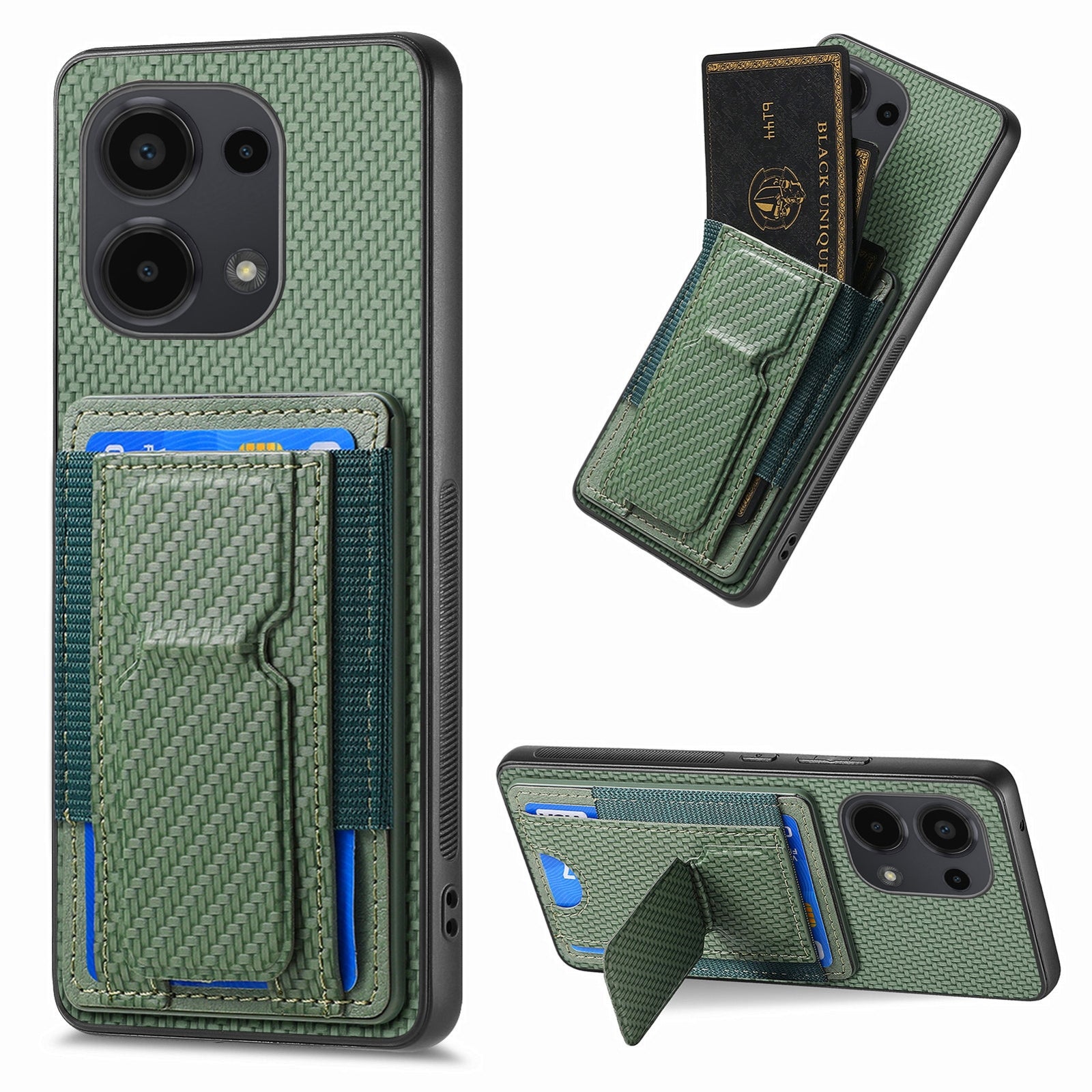Xiaomi Redmi Note 13 Pro 4G Carbon Fiber Fold Stand Elastic Card Bag Phone Case with Multi-Functional Wallet