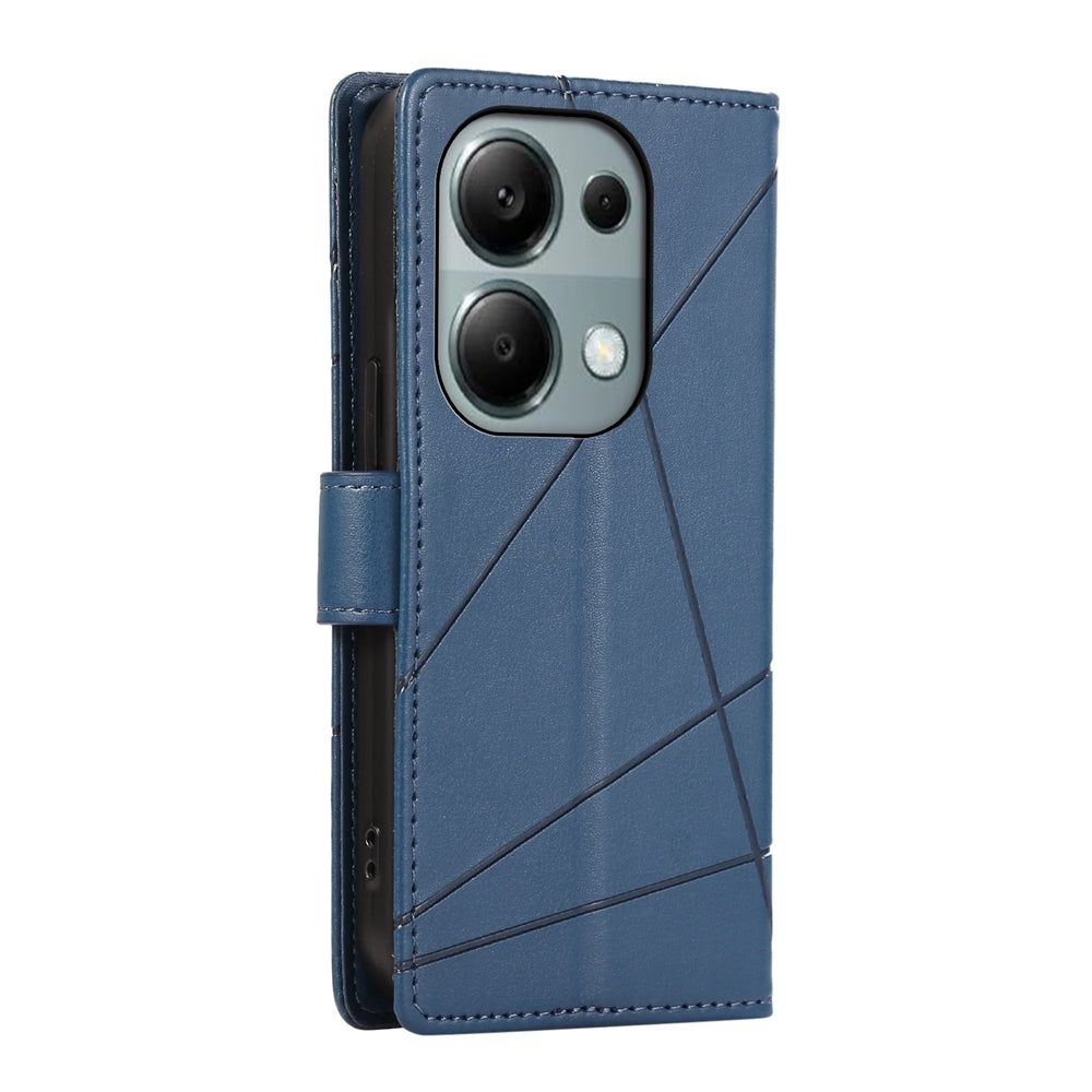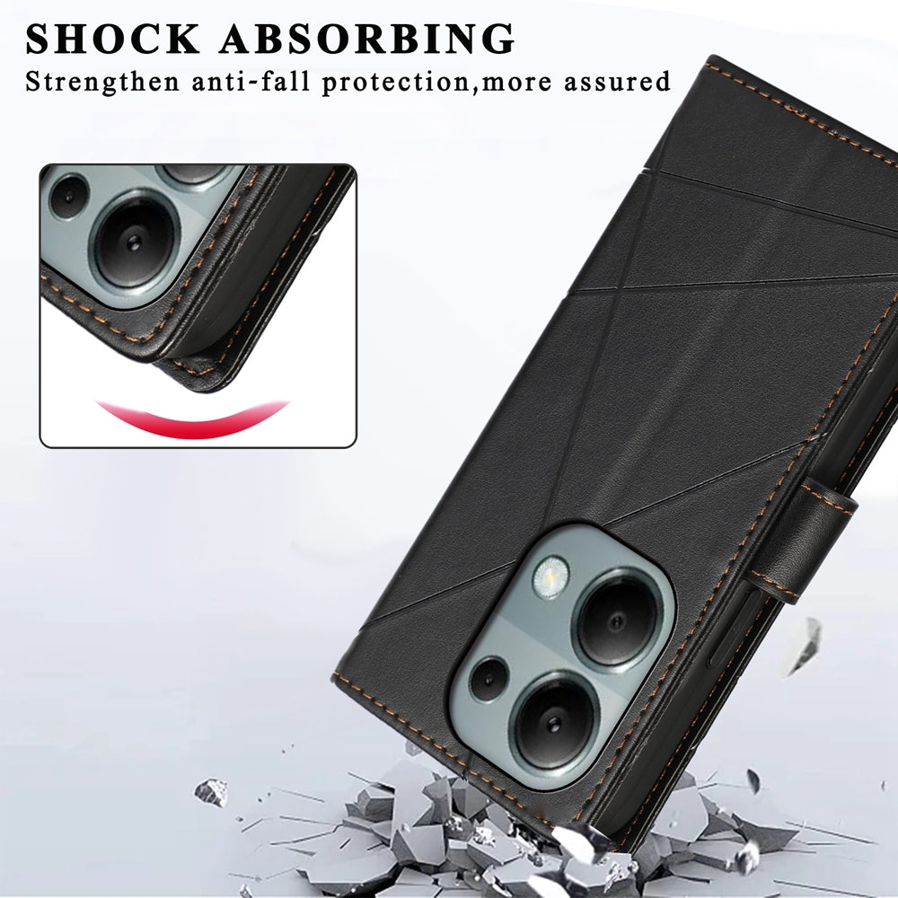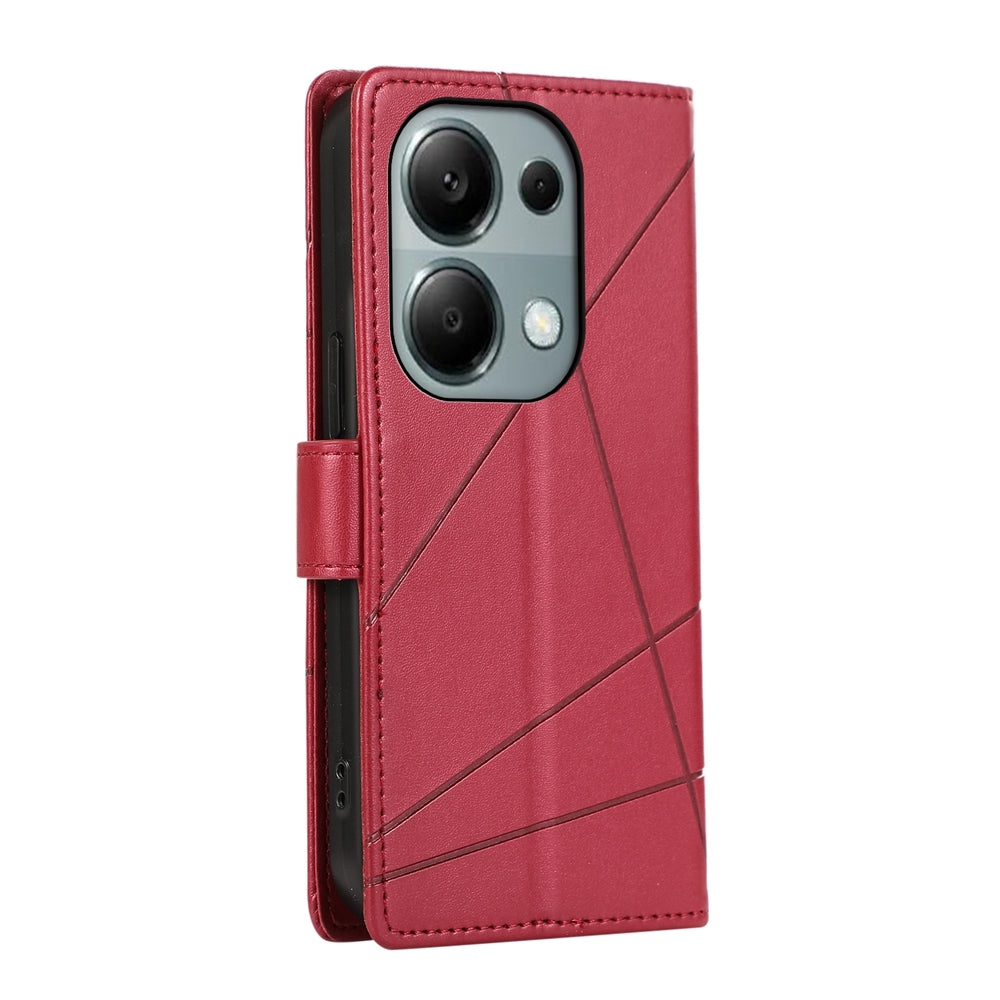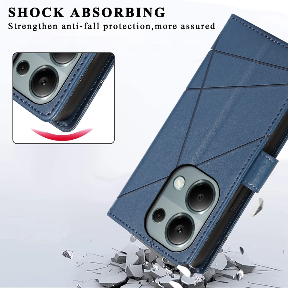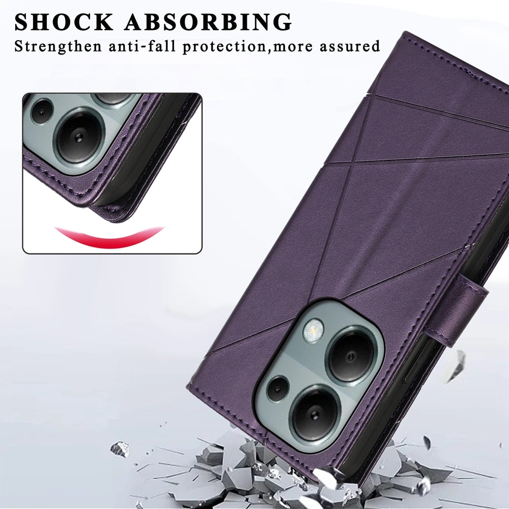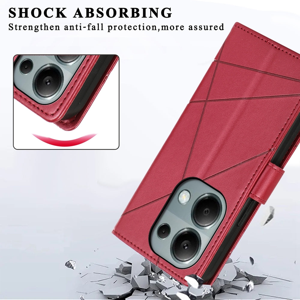 Xiaomi Redmi Note 13 Pro 4g Genuine Leather Texture Embossed Line Phone Case with Card Wallet & Kickstand
