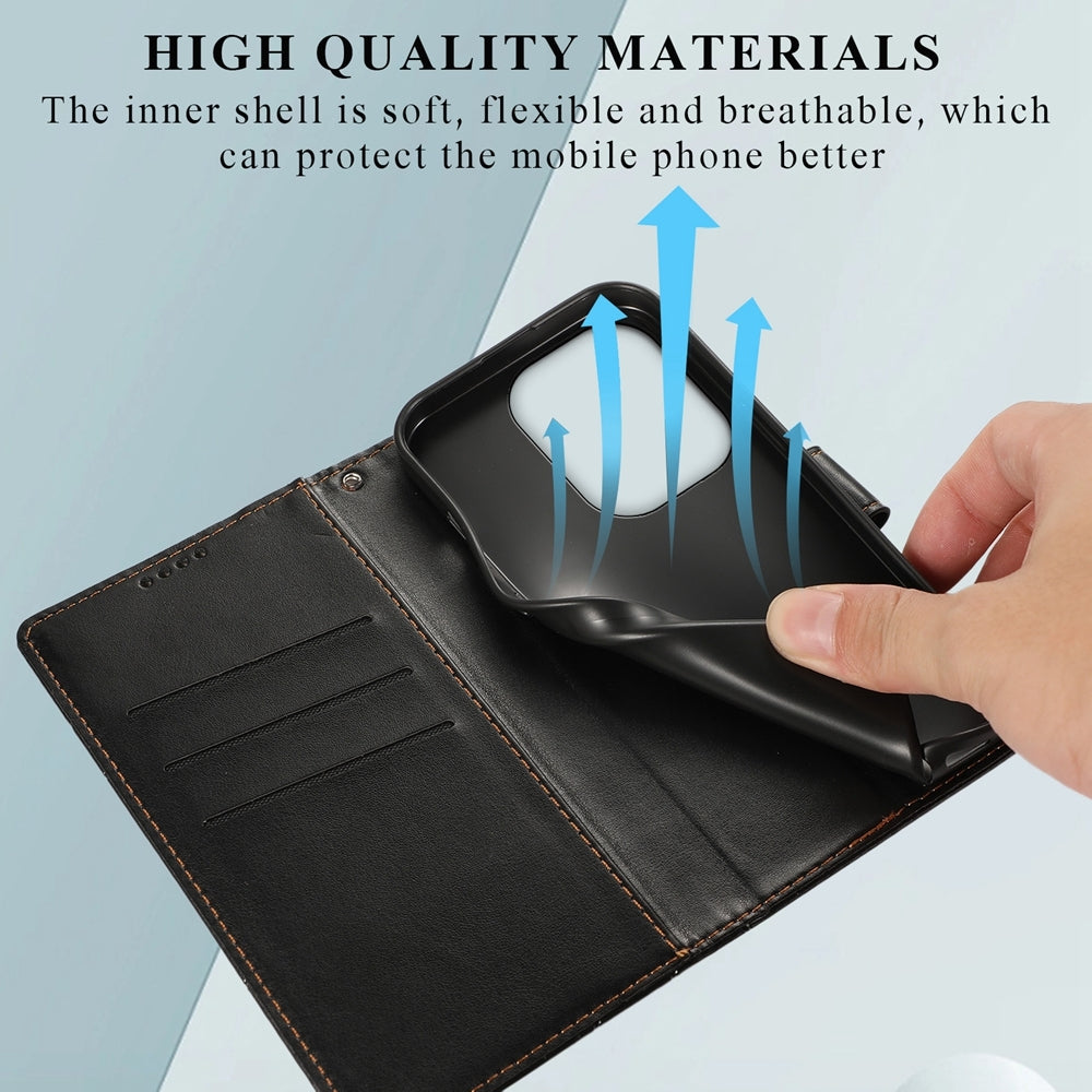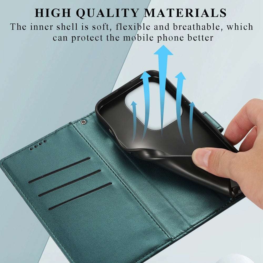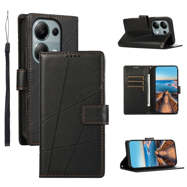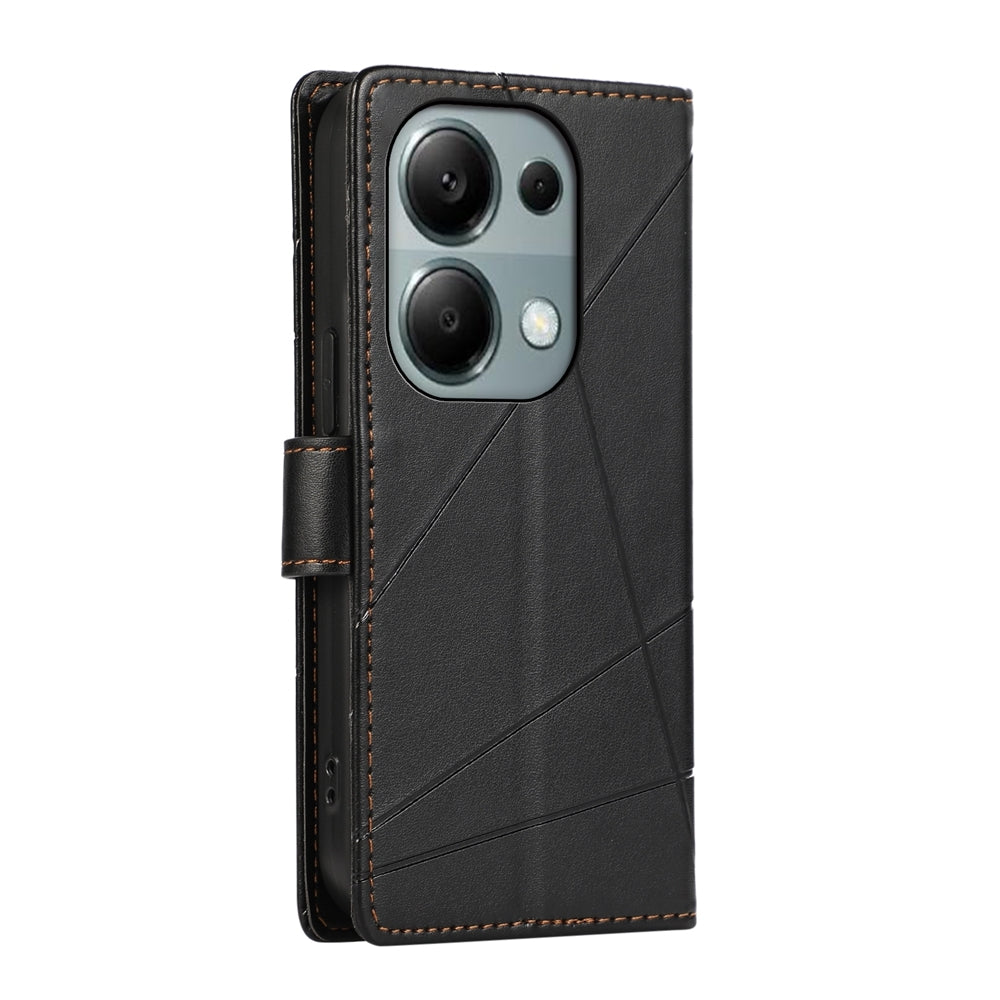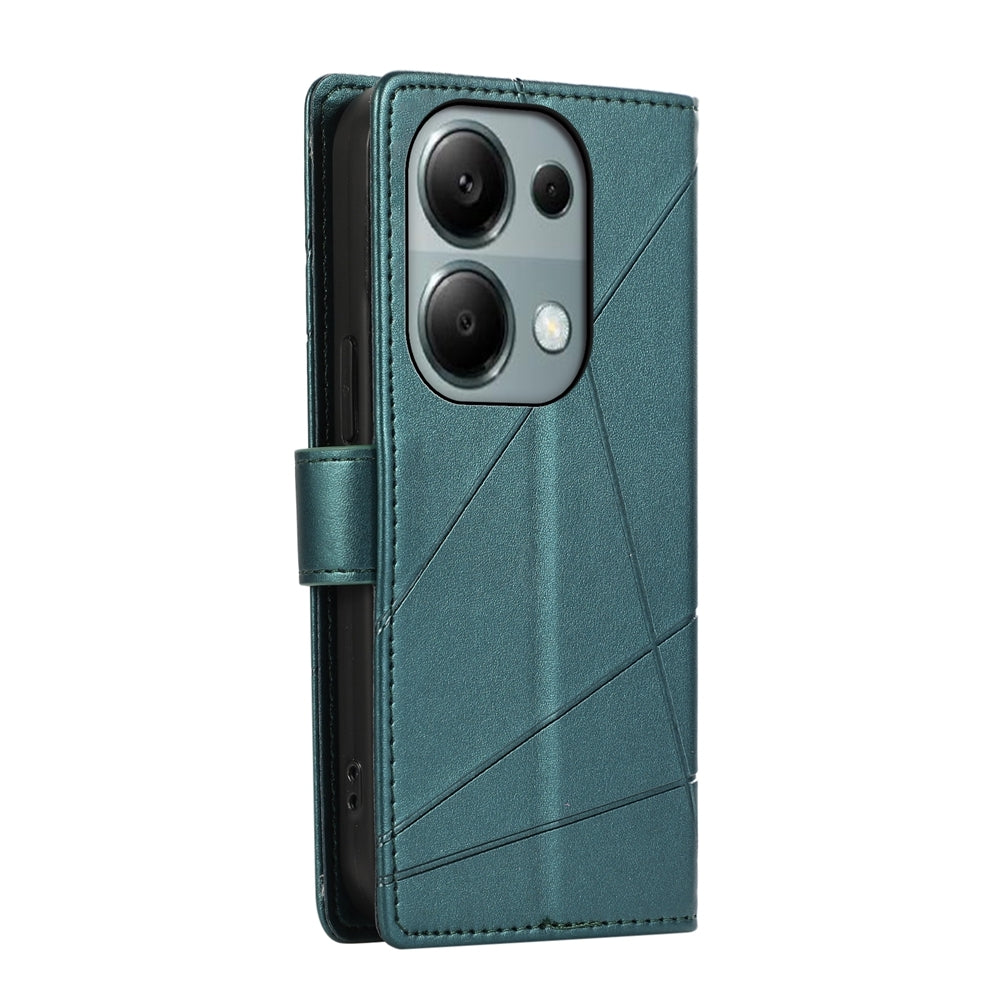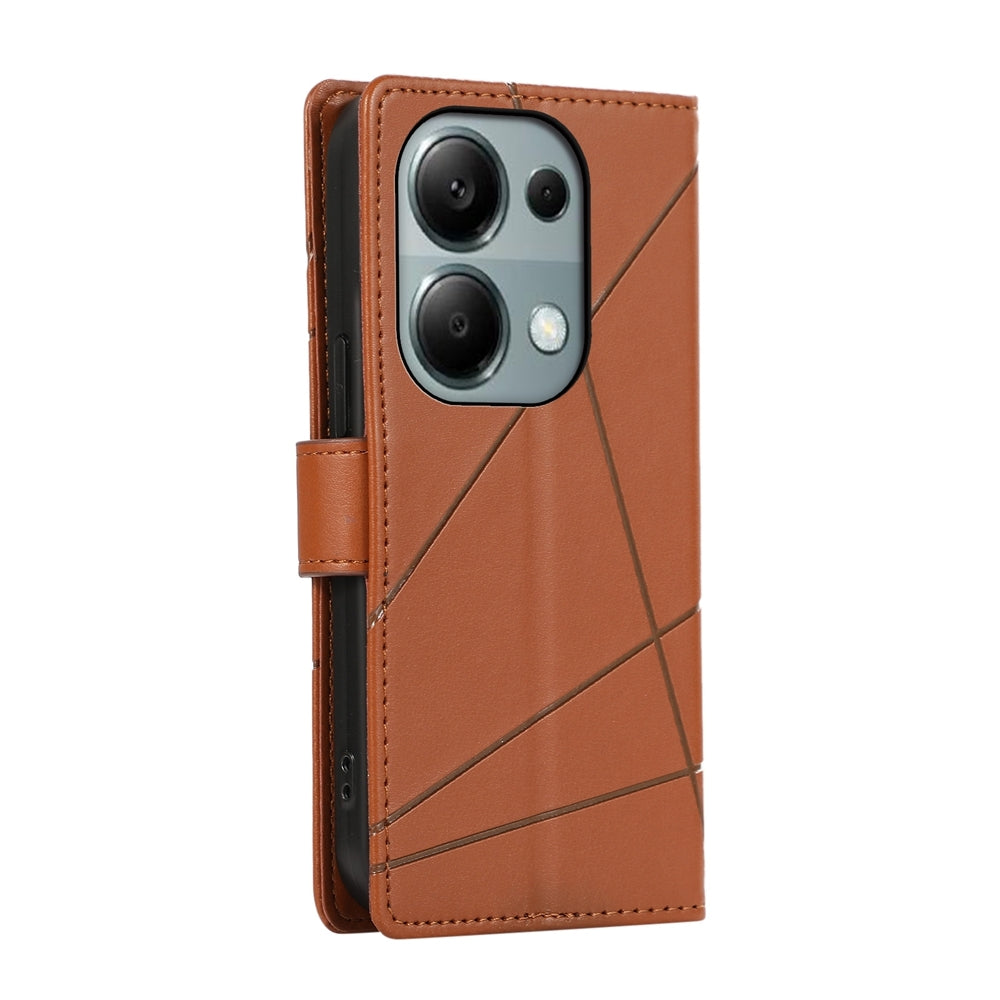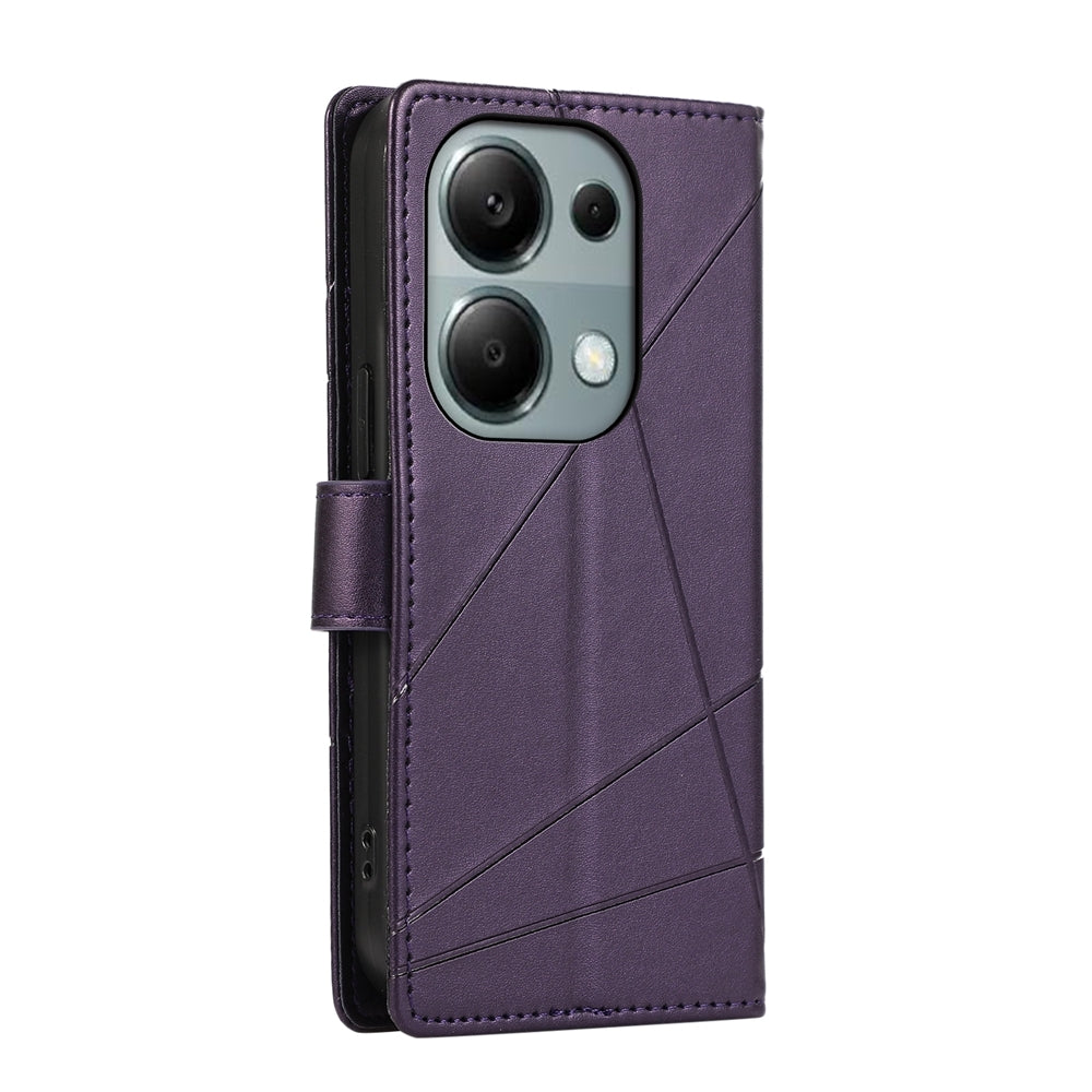 Xiaomi Redmi Note 13 Pro 4g Genuine Leather Texture Embossed Line Phone Case with Card Wallet & Kickstand