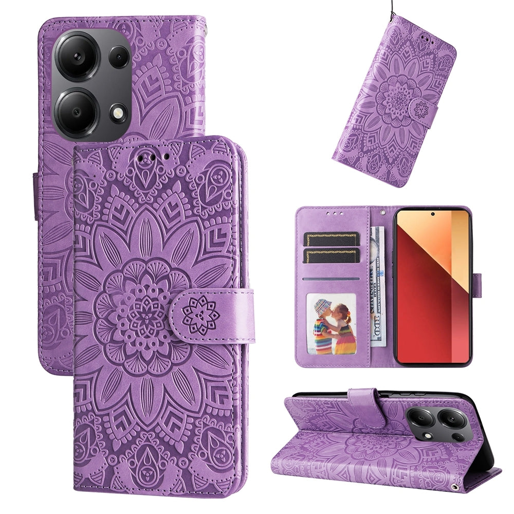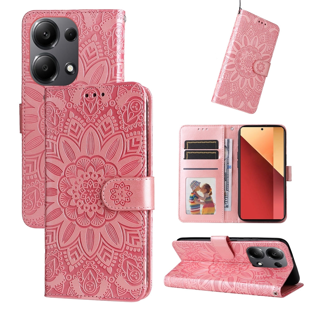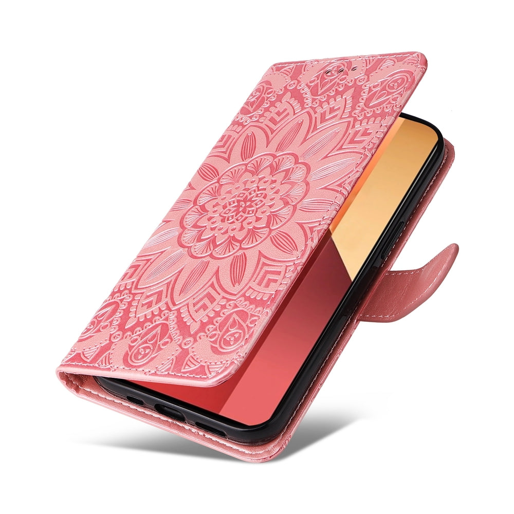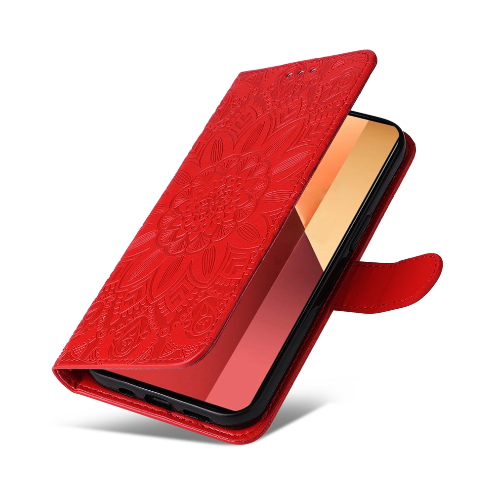 Xiaomi Redmi Note 13 Pro 4G Global Sunflower Embossed Leather Wallet Phone Case with Kickstand and Card Holder