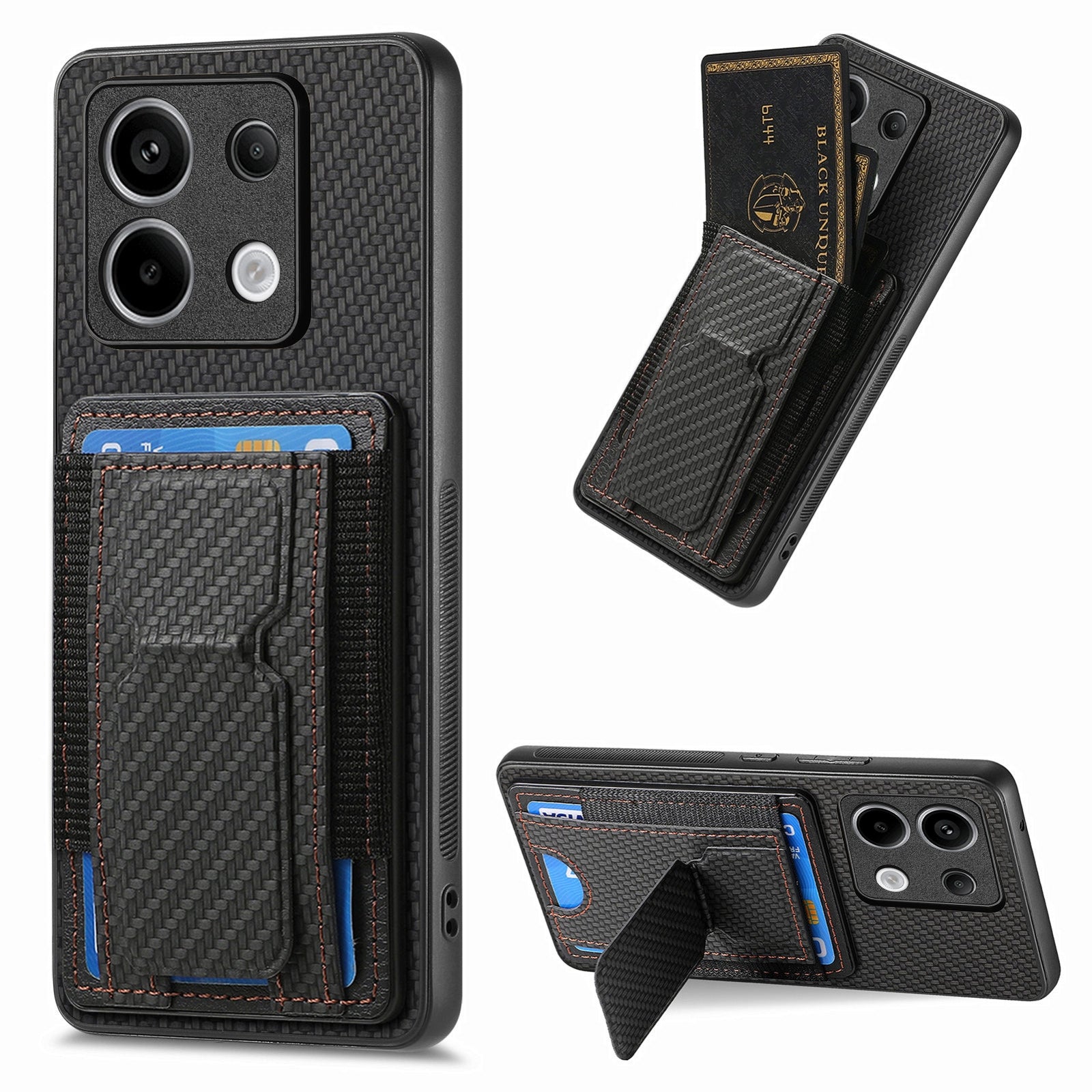 Xiaomi Redmi Note 13 Pro+ Carbon Fiber Fold Stand Elastic Card Bag Phone Case with Multi-Functional Wallet