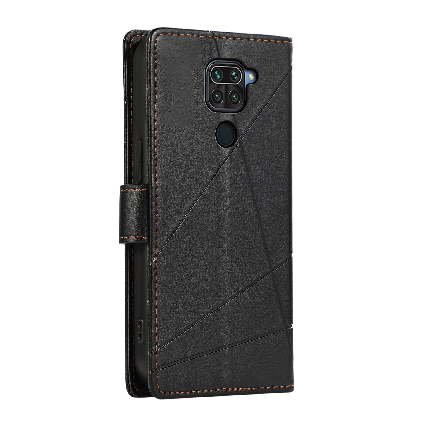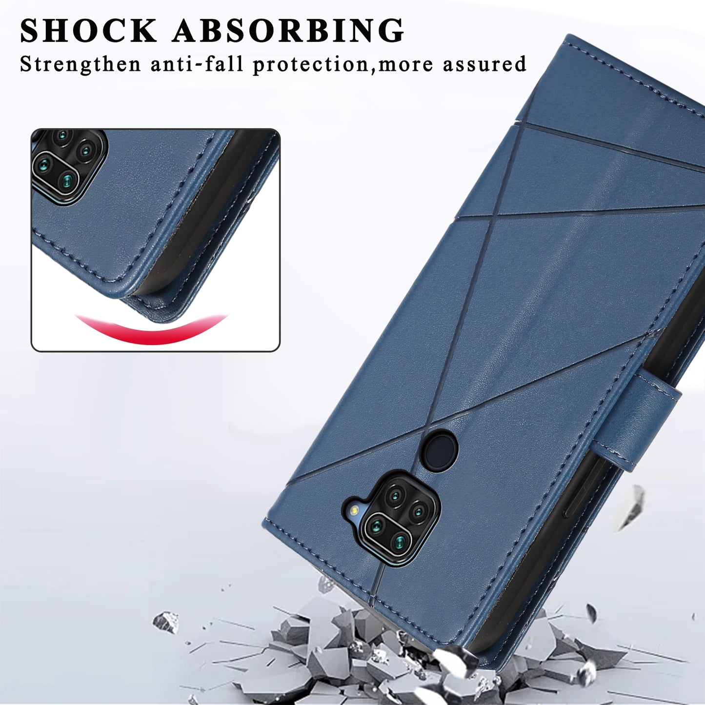 Xiaomi Redmi Note 9 Genuine Leather Texture Embossed Line Phone Case with Card Wallet & Kickstand